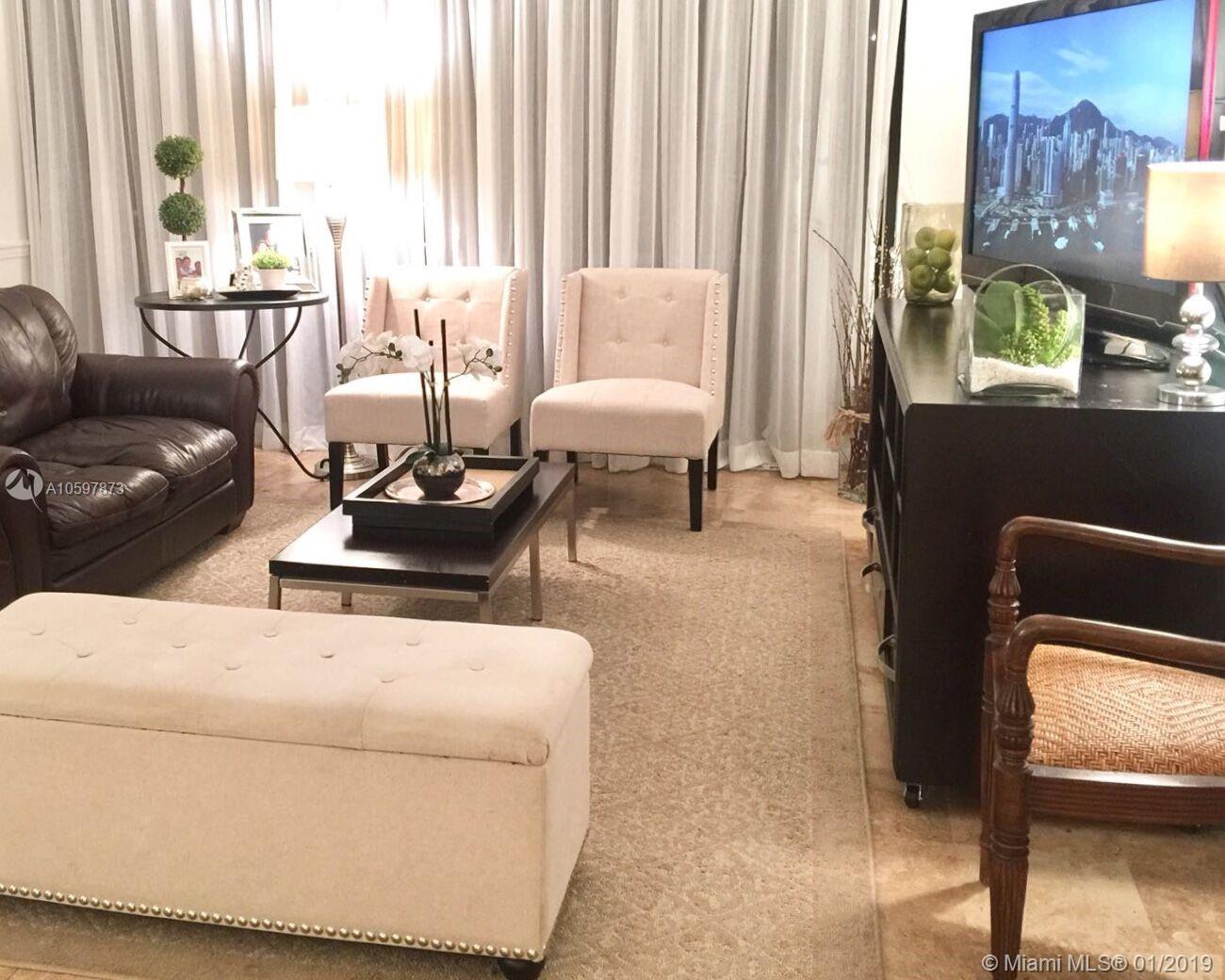 Priced to sell! Unit currently rented to excellent tenants until May 2019 with a 60 day kick out clause. Bright and beautiful 2/2 unit on second floor. Split floor plan boasts marble floors throughout. The extra long balcony allows beautiful views of the garden with its eastern exposure. Kitchen and bathrooms excellently maintained. This unit has 2 parking spots. Key Colony is a resort style complex including amenities such as tennis courts, beach, gym, kids playground, pools, jacuzzi, restaurants, gourmet store and beauty salon & spa. Motivated seller.