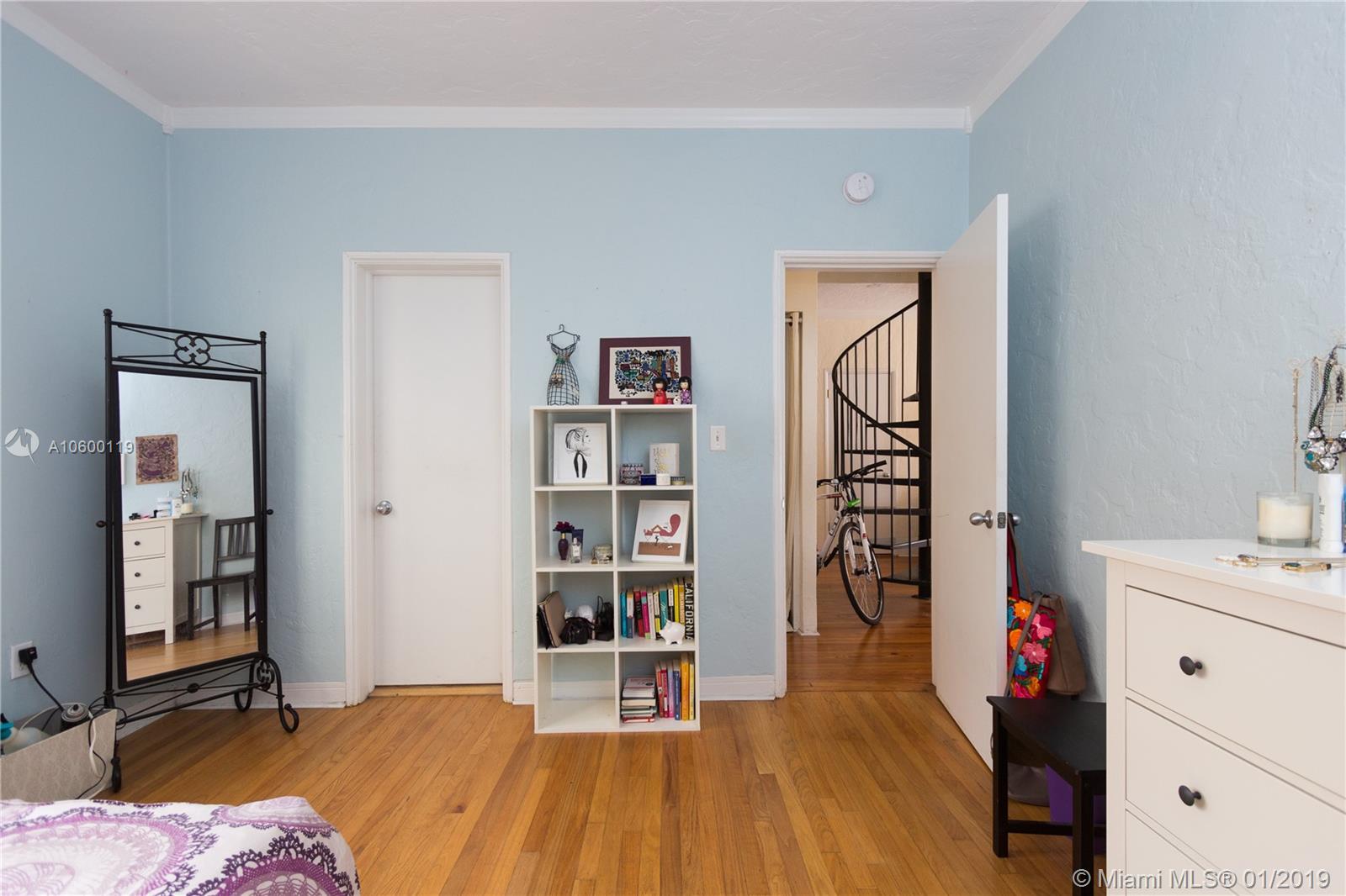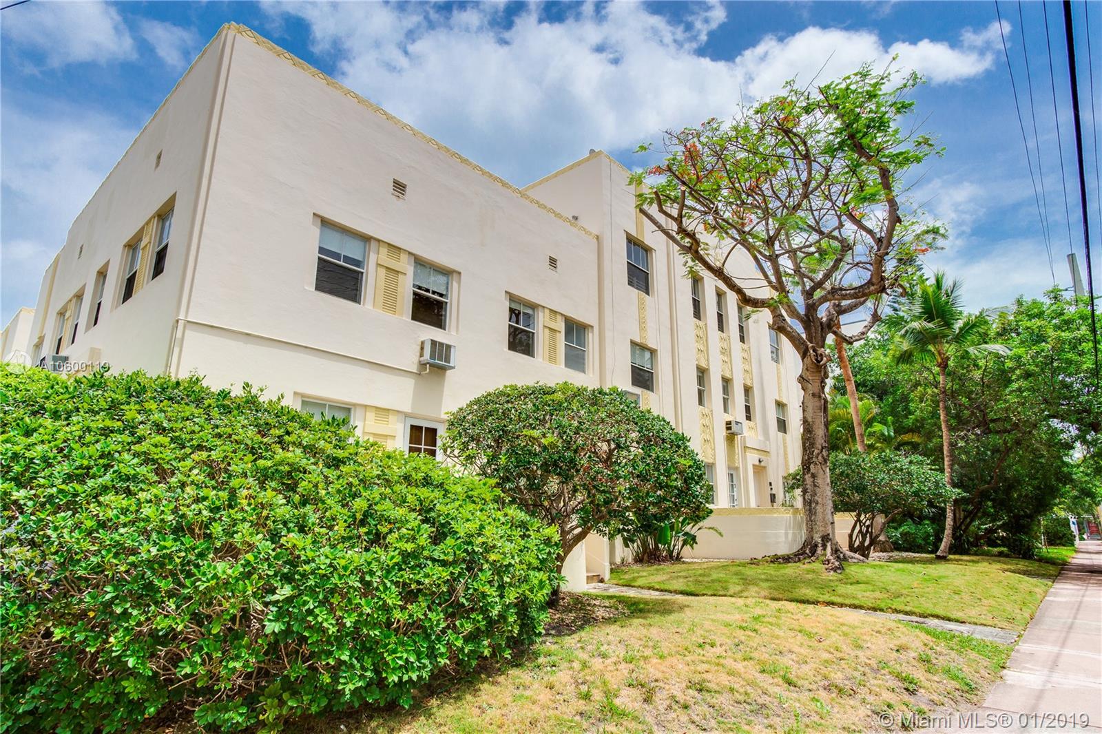 Fantastic updated 2 STORY Art Deco Condo - originally 2 one bedroom units now combined into 1 large 2 bed 2 bathroom with laundry room. Beautiful original Florida Pine floors. Charming Art Deco Building. Updated bathrooms and kitchen. Access to common quaint courtyard and private front court. Lots of closets and storage space. The building sits across from public park land and residents have access to the gym at the community center with membership. The area is quiet and a school zone. Easy parking in the area-often available right in front of the door. Beach is a 5 minute walk away and all the entertainment and shopping that South Beach has to offer is right nearby. This is a must see for Art Deco building lovers who want a quiet spot to live with tons of space and access to everything.