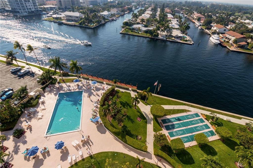 This is the most coveted view in the Coral Ridge Towers complex! Direct unobstructed 180 degree Intracoastal views with daily boat parades and sunsets. This lovely 1 bedroom 1 bathroom apartment has been substantially remodeled from top to bottom. Open kitchen with quartz countertops, chic tile back splash, high quality stainless steel appliances, induction cooktop & custom cabinetry. Remodeled bathroom w/ new tile, vanity & shower. Central AC & hurricane impact windows & door installed. Large private balcony w/ breathtaking views. Resort style pool & garden area situated directly on the Intracoastal Waterway. Located in a beautiful walking neighborhood on a barrier island between the ocean and Intracoastal waterway. Association states one Buyer must be 55, no rentals/pets.