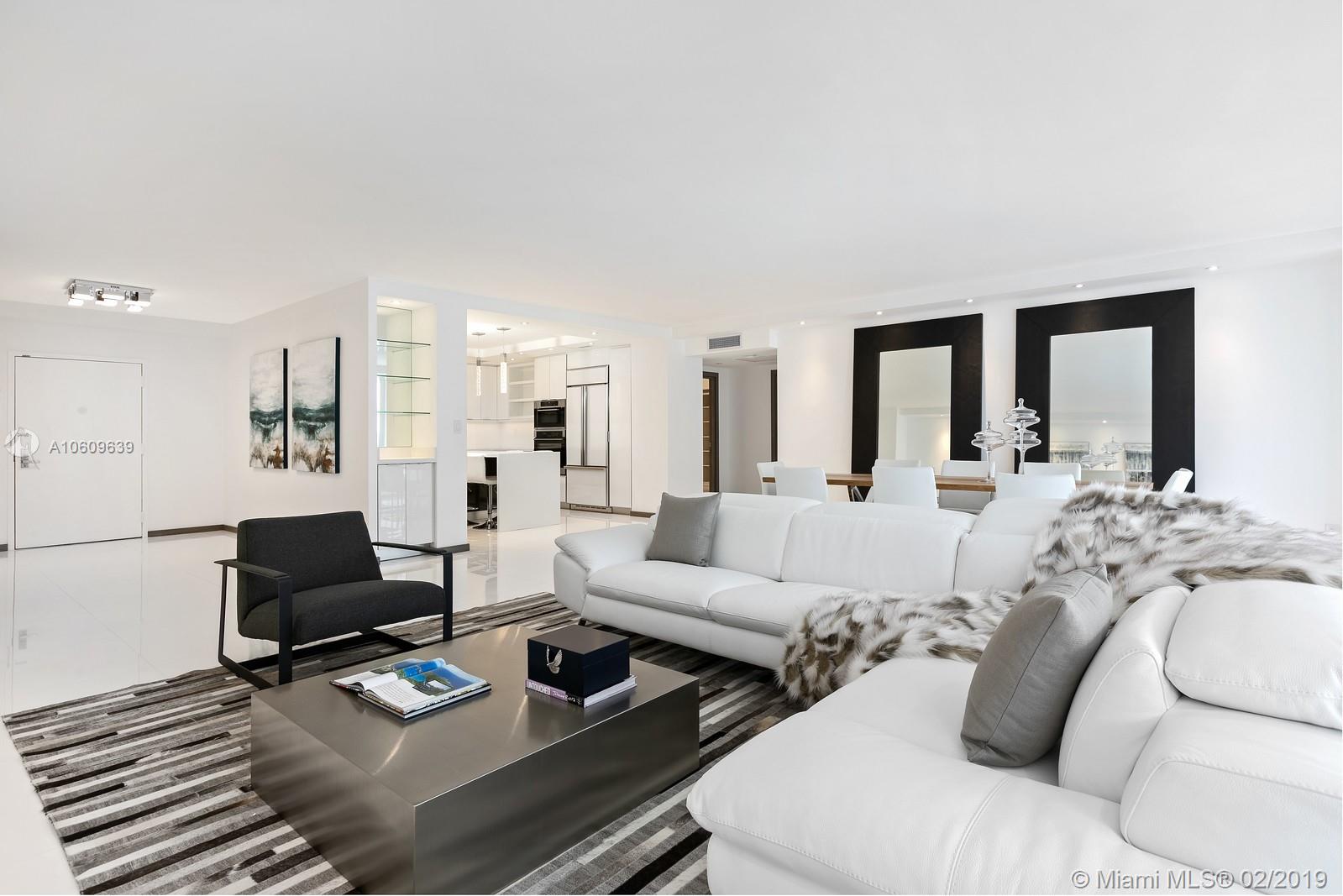 The absolute best unit in Bal Harbour! Stunning 3 bedroom with all the bells & whistles. This open, light, and airy floor plan just underwent a major renovation and features the best quality and design around. Almost 2,600 SQ ft with an oversized terrace and spectacular views to the intracoastal and ocean. The condo features a large kitchen with all top of the line appliances, Italian cabinetry, white quartz countertops, wine refrigerator, and built in island with seating. Pure white glass 32X36 floors throughout with custom doors, recessed lighting and electric blinds to name a few features. The master is appointed with your own spa-like bathroom with a free standing tub, Rain shower with LED lighting, shiny Italian porcelain walls, double sinks, and handmade wood his & hers closets.