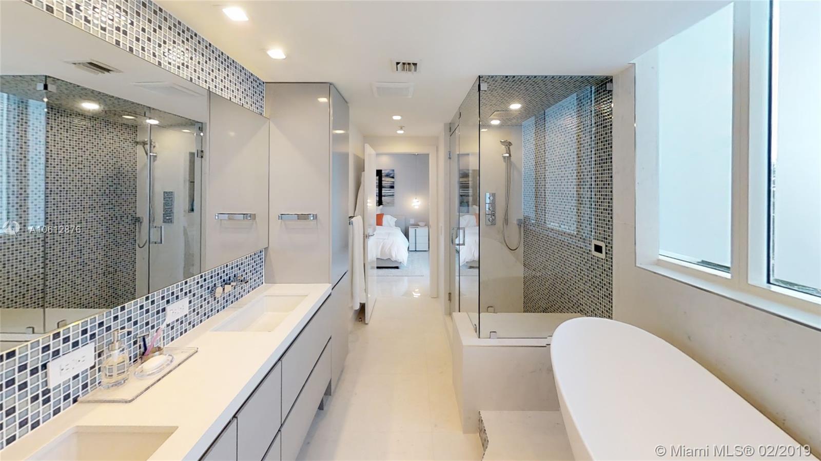Ocean front flow-through unit, elegantly remodeled with top of the line finishes. Private elevator, entry foyer, Italian white porcelain floors throughout. LED lighting. European kitchen with Miele and Subzero appliances. Motorized blackout / solar shades all around . Enjoy the view and the sound of the ocean from living room and the spacious terrace. Master bathroom with freestanding tub and shower with steam bath. Split floor plan with views of both the ocean and the city. Full Service building, includes beach club service, heated pool with BBQ area, fitness center with sauna, movie theater, 24-hr concierge & valet. Walking distance from Faena, Edition, Soho House and Fountainebleau and close to airports and main highways. Enjoy the virtual tour.