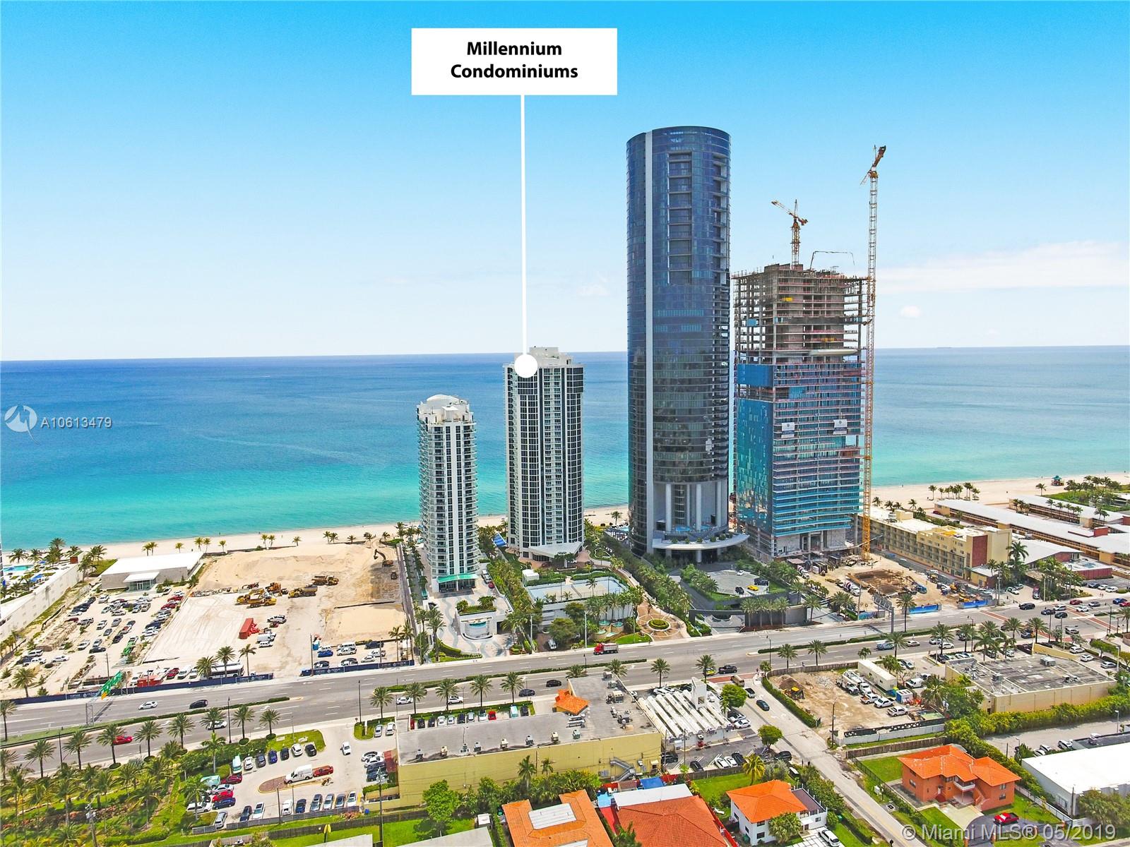 Best-Priced Condo in the boutique luxury waterfront Millennium, spectacular Florida Riviera! Very bright Freshly painted 2 bedroom + den, 2.5 baths, bidet, separate shower and tub; spacious wrap-around balcony overlooking the ocean; washer and dryer inside the unit, recently installed tankless water heater, newer air conditioning unit, garage parking spot, marble-floor glass elevator opening directly into your own unit; high-end resort-style amenities including a spa / sauna, two-story gym, bbq, tennis, pool area , party room , concierge valet service and more! Only 4 apartments per floor!