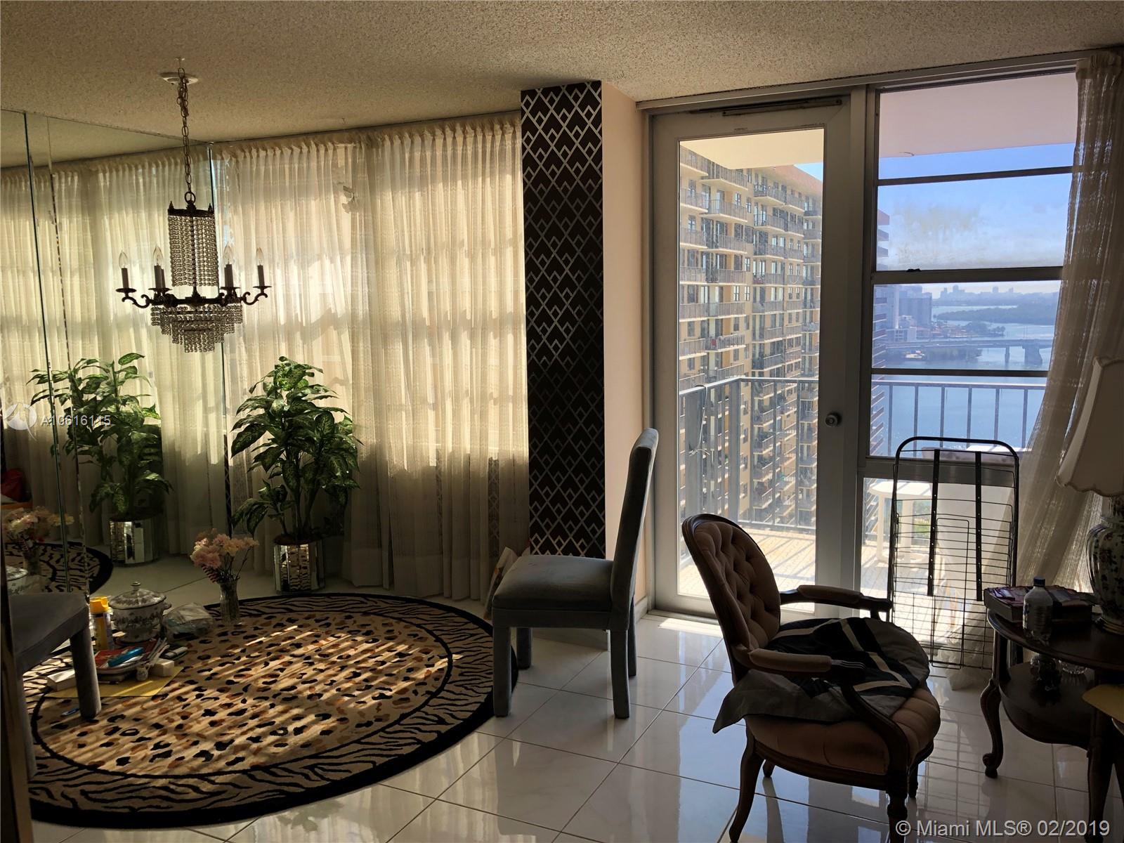 Great deal on this 1bd/1.5bth condo on the 20th floor of Winston Towers 500 Building in Sunny Isles Beach! Beautiful balcony views of the intercoastal waterway and ocean! Low maintenance payment that includes cable, internet, 24 hour security, pool, tennis courts, billiard room and library. Located close to Aventura mall and walking distance to the beach, restaurants, parks, and shopping centers. A+ Elementary-Middle school in district. Free shuttle service provided by city. Priced to sell! Easy to show!