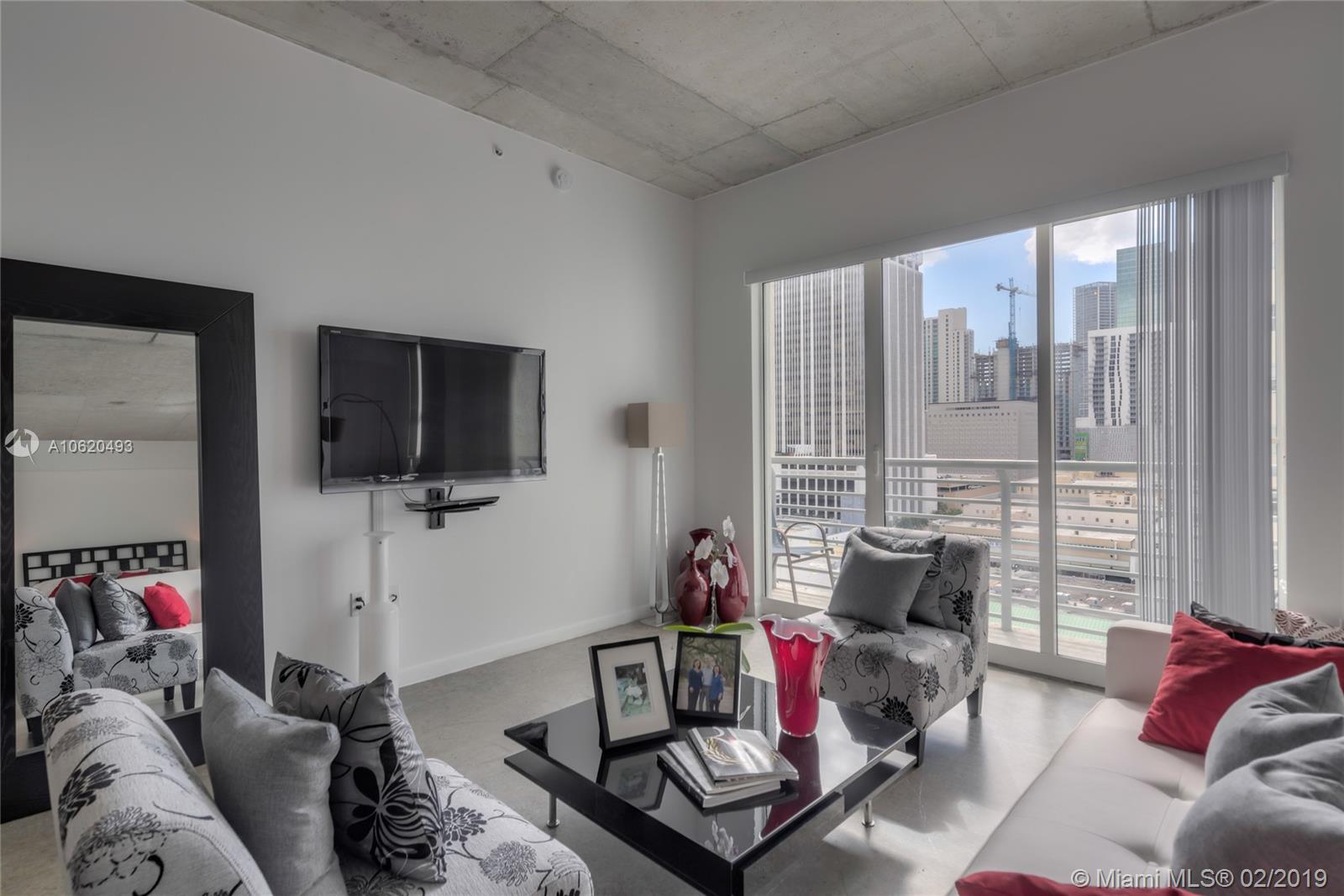 Great Value! Magnificent & spacious, largest one bedroom in the building! Walk into this loft residence which expands into a vast open concept featuring concrete floors, 10 foot ceiling, open kitchen, in-unit washer/dryer, and large walk-in closet. Lots of natural light, this floor plan is unique, only one available per floor. Building features 24-hr front desk attendant, secured entry, parking, roof top pool and gym, lap pool, rec room and more. Be part of the Urban movement, make Downtown Miami your home. Lots of growth in the area. Call now to view this great buy!