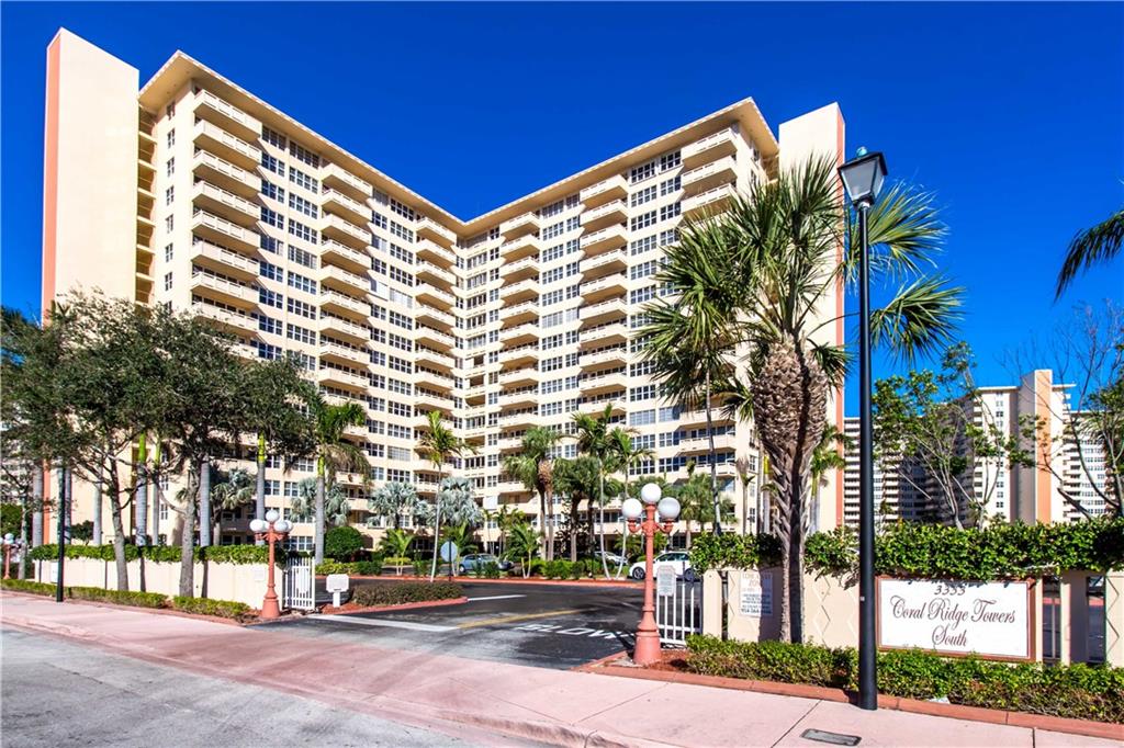 Artistically decorated and fully renovated one bedroom one bathroom apartment. Open updated kitchen with wood cabinets, stainless steel appliances and granite countertops. Tile floors throughout all of the living spaces. Hurricane impact windows and door installed. Fully renovated bathroom. Ample storage and closet space including two walk ins. Central air conditioning. Large private balcony with fantastic views and a South East exposure. Great amenities including a tropical garden area with a 30 x 60 heated pool. Association states one Buyer must be 55 plus. No pets or rentals. Coral Ridge Towers South is a fantastic community located on the barrier island between the Ocean and Intracoastal Waterway. You will love living here!