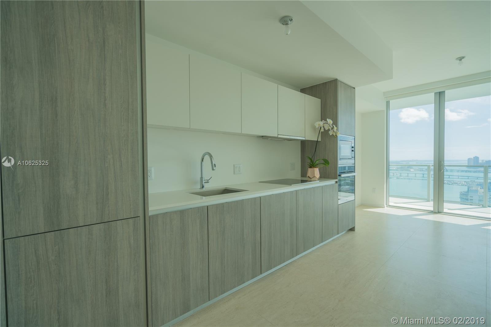 Completely finished 1 bedroom/2 full bathroom unit with porcelain tile floors, walk in closet, blackout and sheer shades in both living room and master bedroom, upgraded vanity in second bathroom. Beautiful VIEW OF BISCAYNE BAY, Edgewater and Downtown Skyline. One of the newest and most luxurious buildings in Edgewater. Private Elevator that opens to a private foyer entrance; Snaidero Kitchen, Miele appliances; 10 ft ceilings with floor to ceiling glass windows; spacious balcony. Biscayne Beach has amazing AMENITIES including a Beach Club with elevated sand/beach area, bay front pool, sauna and steam room, 2 massage rooms, tennis and basketball courts, beach volleyball court, state of the art gym, 6th floor with second pool, jacuzzi, bbq area, and 2 party rooms. Full service concierge.