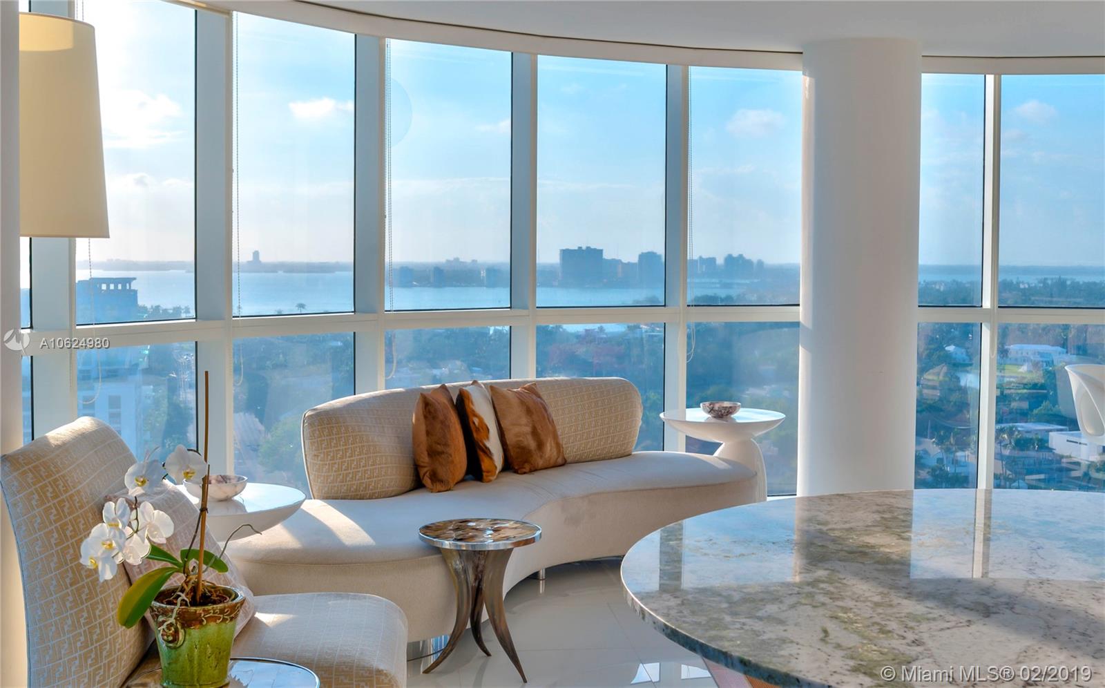 Soaring 20 floors above, this fully remodeled luxury residence within the prestigious La Gorce Palace Condominium is a one of a kind masterpiece. Completely remodeled & ready for immediate occupancy. The impeccably maintained & appointed 2 bedroom, 2 bath residence features awe-inspiring 180 degree views of the Intracoastal & blue ocean from floor to ceiling walls of glass. Elegantly understated, this residence features sophisticated decor, custom built-ins & 1,400 feet of graceful living. Encompassing 2 large balconies, the unit offers ample space for interior and exterior entertaining. Right on the coast line with direct access to the beach, la Gorce Condo is located on ‘Millionaire’s row". Condominium undergoing major renovation work. Seller paid Special Assessment in full.