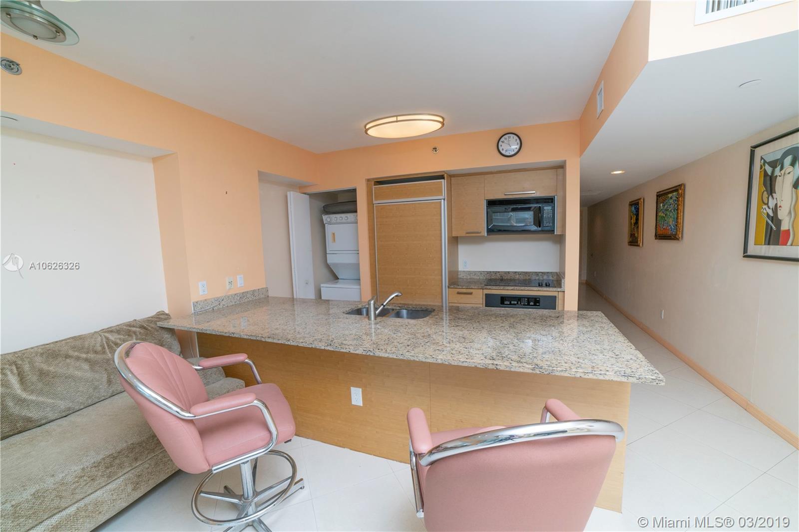 Remodeled studio to 1 Bedroom. 1 Bath. Fully FURNISHED. Amazing ocean and pool view. South view. Very bright unit. Granite counter top. Unique pool deck with 5 pools with great restaurant! Awesome 2 story Fitness club with the ocean view! Beach access with service. Great for Investment. Can be rented with no renovation. Spectacular SPA with cold and hot pools, sauna, steam room.