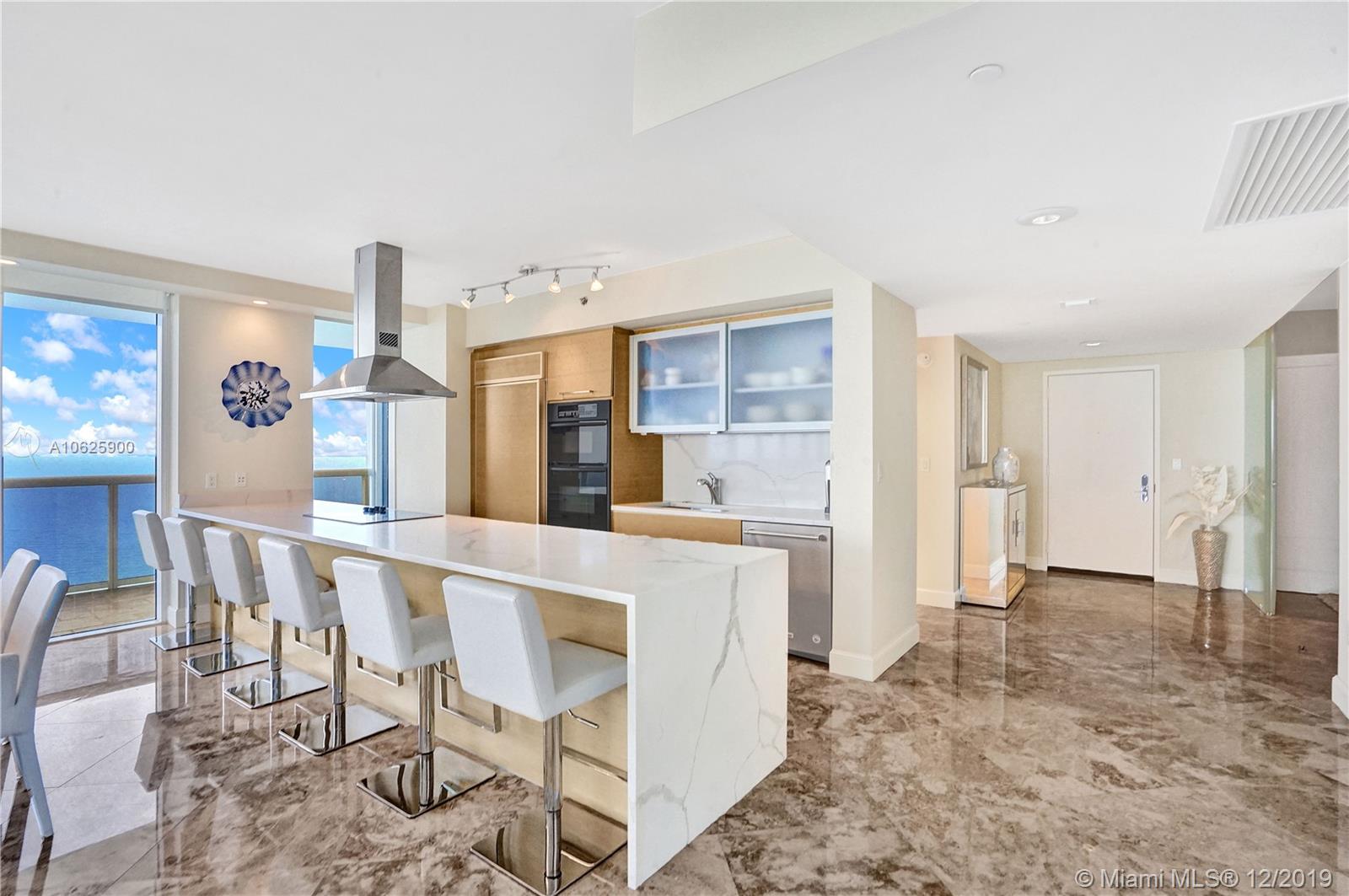 Spectacular corner unit on high floor offering views to South Beach looking south and to Fort Lauderdale looking north. Watch cruise ships sailing by as you relax on your 586 sq. ft. balcony! The apartment has been substantially renovated & meticulously maintained. Gorgeous kitchen with stone quartz Calacatta waterfall countertop. Eurostyle cabinetry & Kitchenaid appliances. Marble floors throughout. Surround Sound System. Master bath also has stone quartz Calacatta counters and new dual sinks. Soffits have been installed throughout the apartment with LED lighting. Custom made folddown Murphy bed system in the den will stay. Custom sliding glass doors on den for added privacy. Comes with one of the best assigned parking space. A/C 18 months old. Can be offered turnkey. Easy to show.