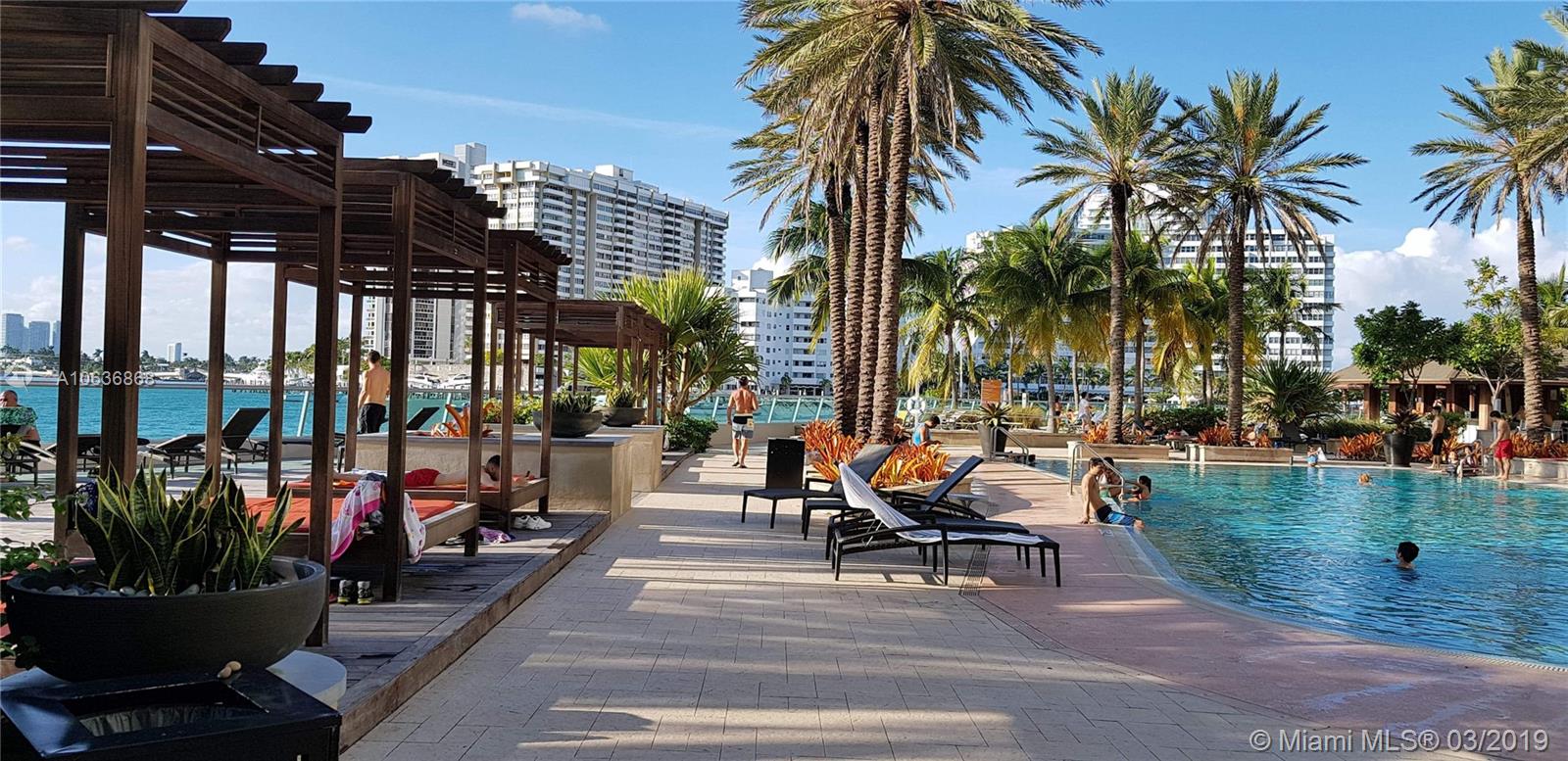 Enjoy spectacular sunsets over The Bay and Miami skyline from this turnkey upgraded 1BR. Fully furnished. Features two large Infinity Pools. Walking distance to Lincoln Road and minutes to the beach. Walking distance to Lincoln Road shops, restaurants, movie theater, the beach and more. Can be rented immediately, 30 day minimum. Income producing - Rents for 2,000 - 4,500 a month depending on season. Incredible amenities include Spa, Jacuzzi, World Class Fitness Center with yoga, spinning, boot camp classes, beach volleyball, basketball, day spa/salon, restaurant with full bar providing pool lounge service, doggy day care, on-site dry cleaners and market/liquor store. Pet Friendly. Garage in building. The unit can be sold with custom booking site.