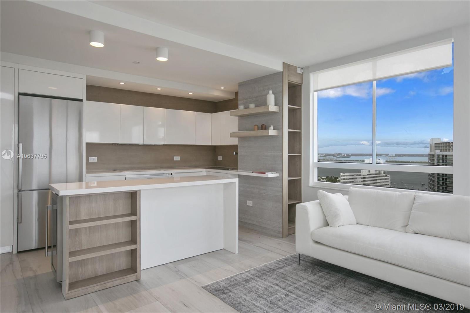 Soaring 34 floors above Miami Beach, designer finished 2/2 NE corner residence offers endless views of the Atlantic,lights of South Beach, and aquamarine waters of Biscayne Bay. Customized stone and woodwork throughout melds a modern top-to-bottom renovation with a calming beach vibe. Redesigned by renowned architecture firm,Lineaire Designs and F&S Developers, this unit features white quartz counters and lacquer cabinetry in kitchen, motorized window shades, and oversized porcelain plank floors. A deep terrace ideal for outdoor entertaining is an extension of your living area offering complete privacy. Ideally located in the heart of South Beach, The Waverly features a beautiful bayfront pool, fitness center, tennis, beach volleyball, business center, valet parking, and 24hr security.