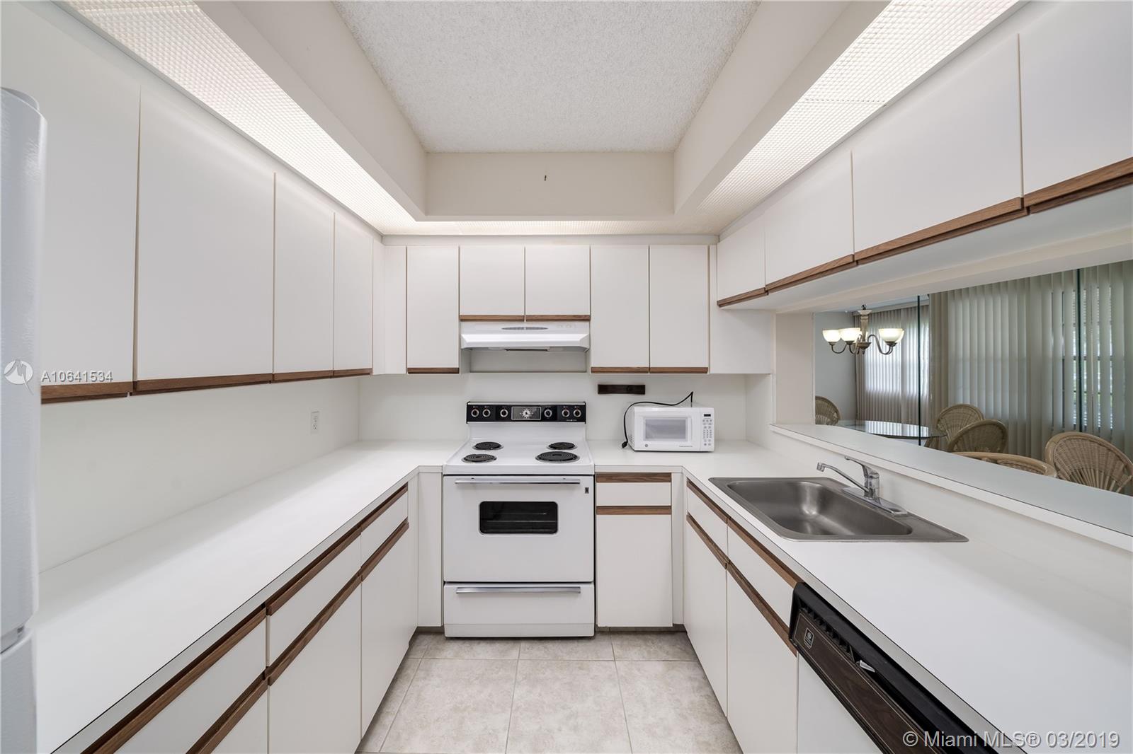 Spacious 1 bedroom 1.5 bathrooms with a serene garden view. Move in Ready. Very cozy and well kept in pristine condition. Tiled floors thought out the in entire condo. Neutral colors throughout as well. Well kept kitchen with all appliances included. 1st floor level convenient location with screened balcony with roll down shutters. The unit is equipped with a washer and dryer inside. This condo is in the most exclusive 55 plus community in Pembroke Pines. Resort style living with a million dollar clubhouse, movies,fitness center,transportation,free golf,pharmacy,cafe,24 hour security patrol and more.