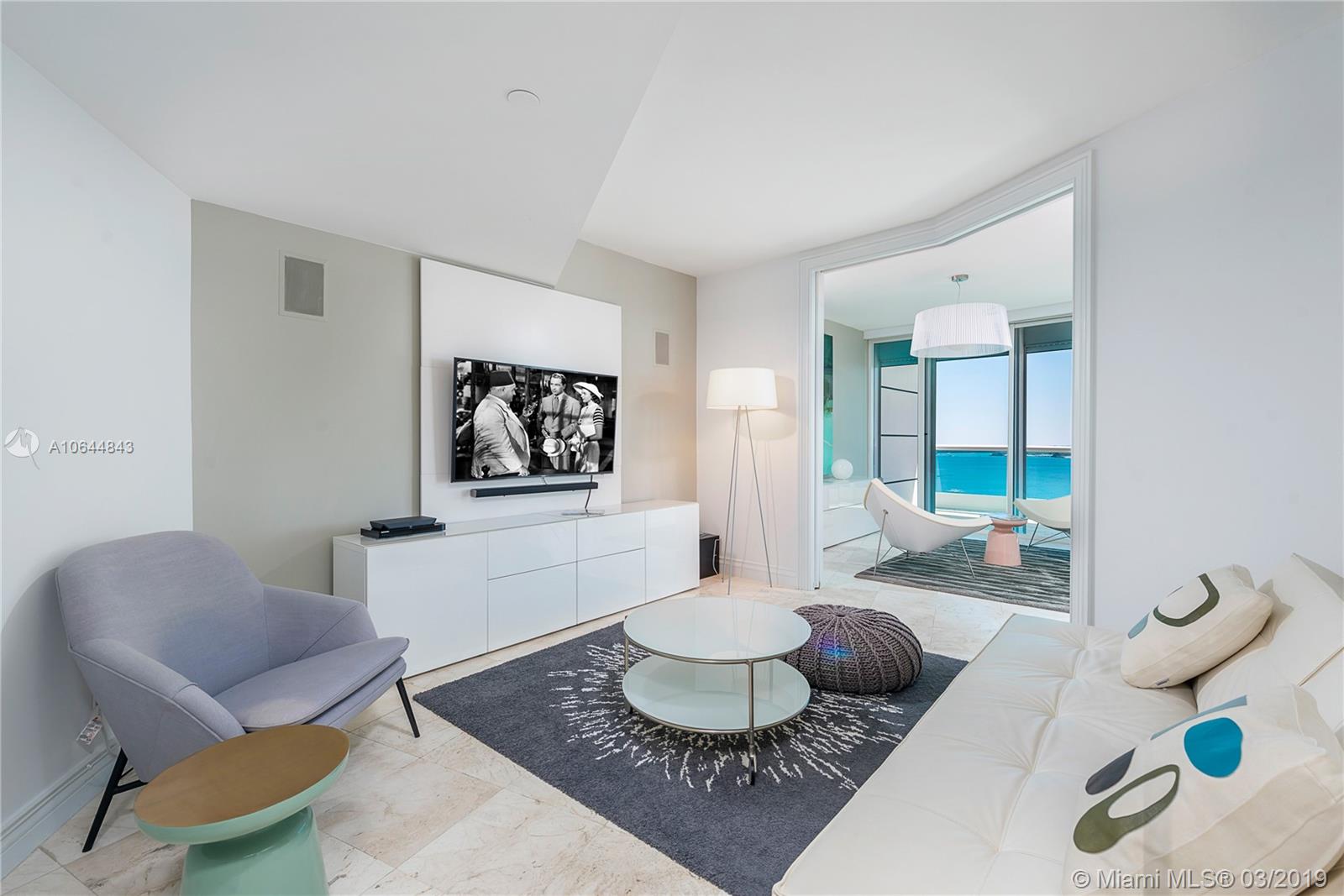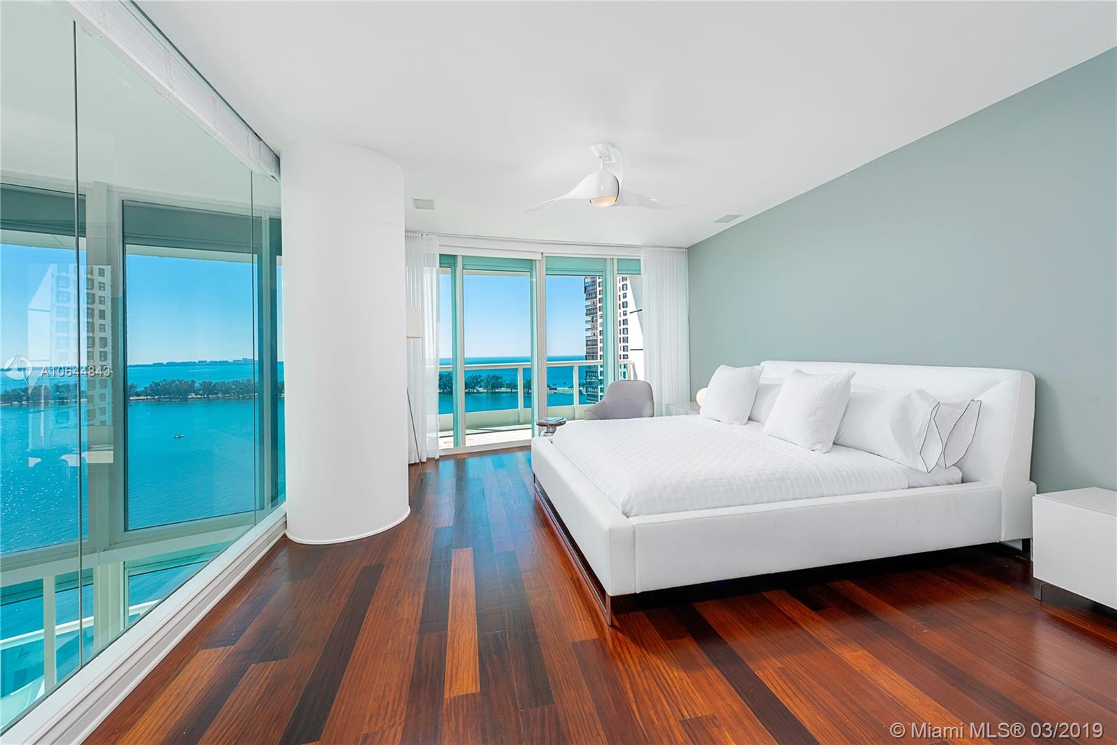 Distinguished Full Service Ugo Columbo building. Highest floor all waterfront Townhome (floors 18/19th ) double height 50 ft wide great room w/floor to ceiling windows (approx. 18' Ht), & panoramic views of Biscayne Bay /Ocean from all rooms. approx 2700 sf interior plus approx 700 sf waterfront wrapped terraces from all principle rooms. 2 Bedroom Suites & Office & Den. 3Ba & Powder room. Stone main floor w/ gracious foyer & wide stone stair to upstairs. Master w/ own terrace, two WIC, two baths & linen. Guest with Bth, own terrace, WIC and 2 linens. Ample storage throughout. 3 parking spaces, Concierge, Tennis, fitness, coffee shop. Kitchen w/ New stainless appliances. Laundry room. Millionaires mile location close to upscale shops & dining, I-95 & KB.