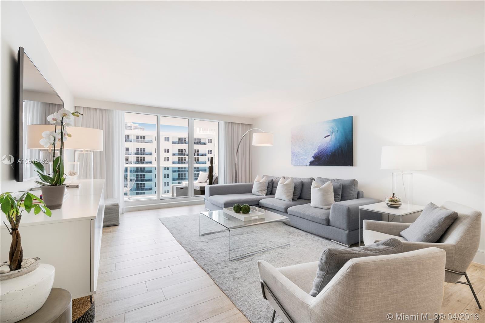 Stunning Ocean views from your 1 bedroom, 1 full bath "Turn-Key" residence at 1 Hotel & Homes, South Beach. Top of the line finishes; Italkraft kitchen,Bosch/Subzero appliances & porcelain wood planks throughout. LEED Certified Hotel living; rooftop pool, bars & sand filled lounges.Private residential lobby, concierge & chauffeured Tesla.600 linear ft of beachfront, 4 pools,14,000SF fitness center, Bamford Spa, full beach & pool service, valet & more.