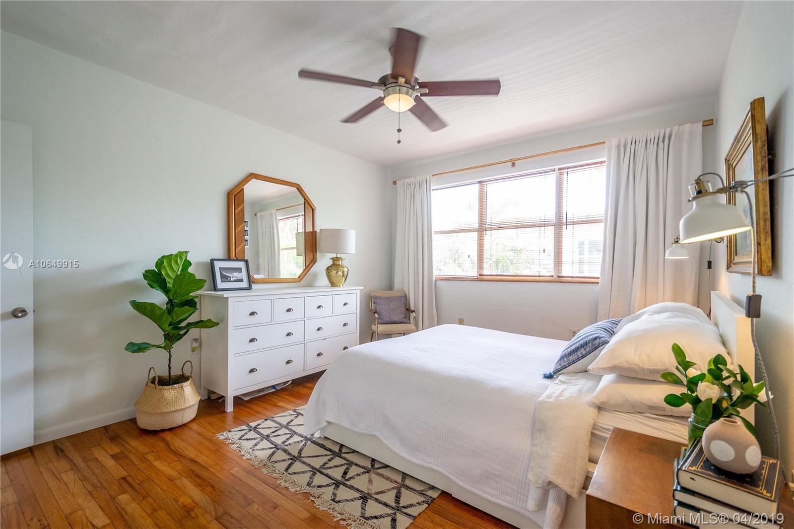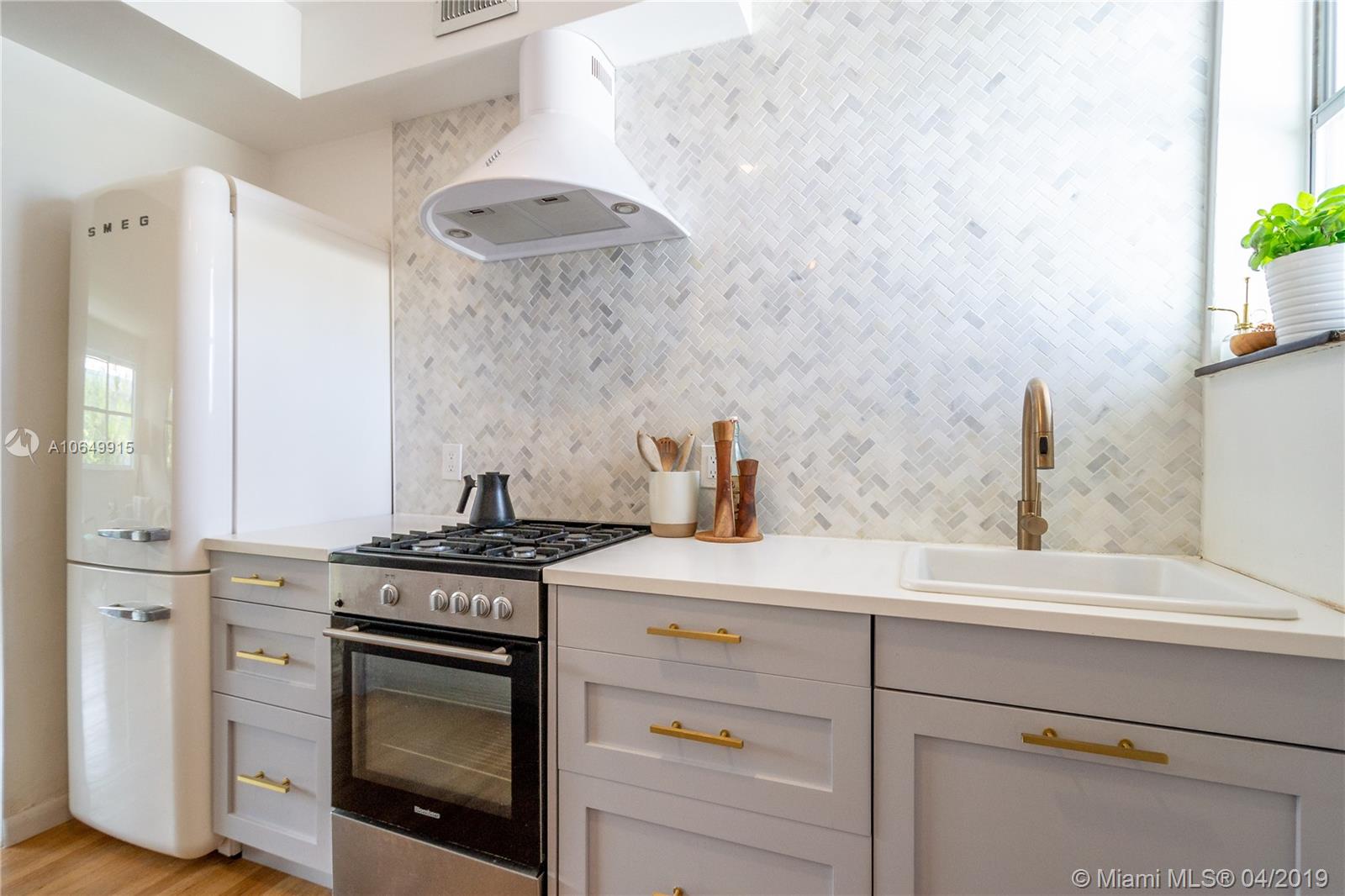 Charming Waterfront MiMo building with large pool offers a truly amazing 2/1. This one-of-a-kind residence features completely renovated kitchen with exquisite design that was featured in The New York Times! And with updated bath & beautiful wood floors, this clean & cared for home is absolutely a gem. With waterfront pool, barbecue grills & lush green landscaping this property embraces the North Beach lifestyle. Located on one of Miami Beach's waterways you can easily launch a kayak or SUP & navigate the NoBe waters from here. The building is gated & has already passed its 40-year recertification. With new roof, there is no assessment in the forecast either! The location is second to none with markets, restaurants, & more walking distance! Call us for your tour of the property today!