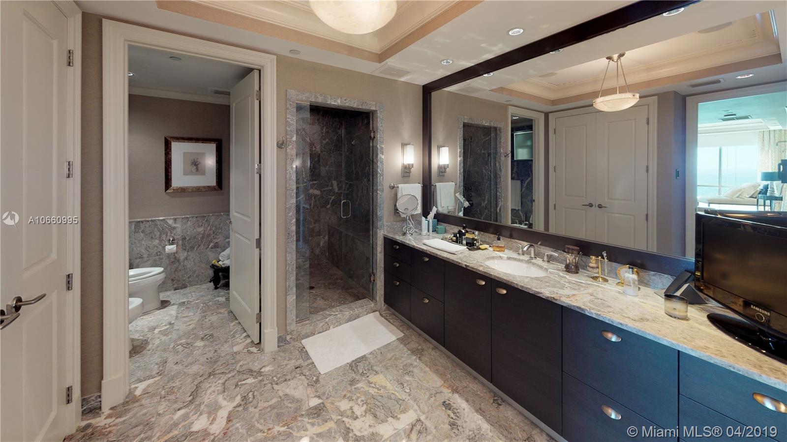 MOTIVATED SELLER! Located on the 18th floor with direct ocean views to the east and Intracoastal & park views to the west. This spectacular Eleuthera model unit features 3740 sq ft of customized interior space incl. 3bd/4.5ba + a home office, separate formal dinning room with built in wine storage, large master suite with ample closets and a large master bath with steam shower. Electronics by Crestron system with fully automated shades, lights, audio and visual. Brazilian walnut floors. Balconies total 2,400 sq ft of outdoor space with a summer bar and breathtaking views. Recently renovated and fully furnished with tasteful decor in neutral colors. TOC features luxurious 5-star amenities including beach and pool service, a private spa, fitness center, restaurants and much more.