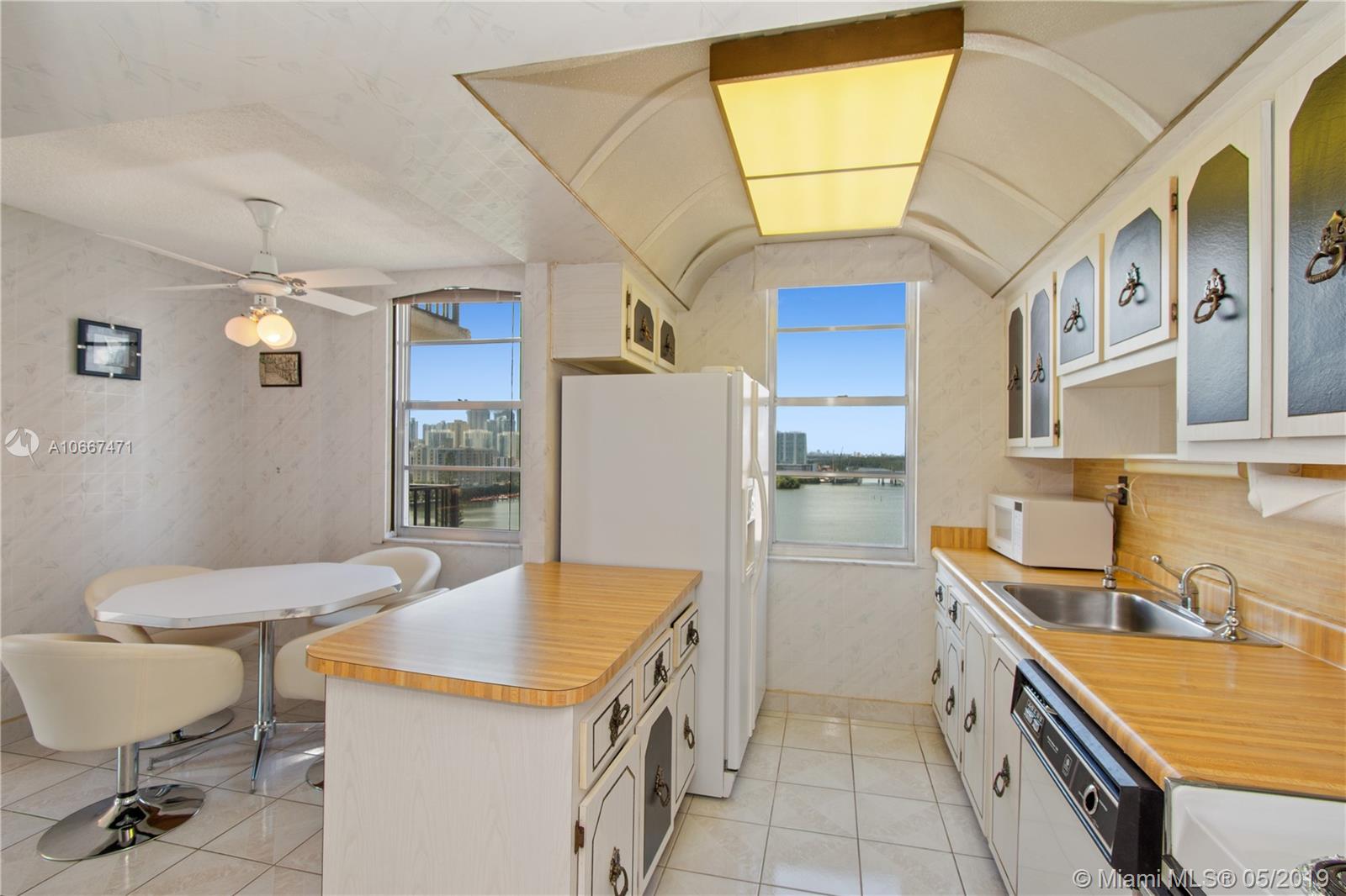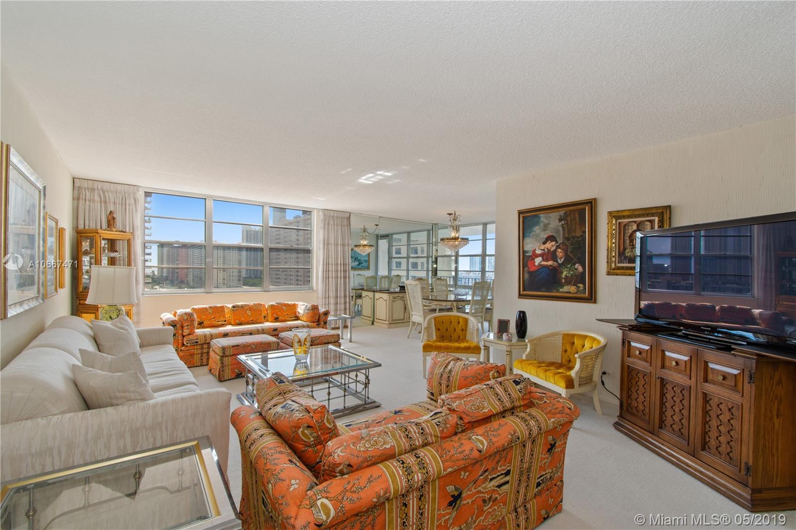 Live in Sunny Isles Beach. This SE corner condo is ready for your imagination. Large rooms, water views from all rooms with the preferred views looking East and South. The kitchen is fashioned with a sizable eating area and lots of storage overlooking the water. The dining room/living room ("L") shaped overlooks the water and has access to an oversized and long corner balcony. The bedrooms are also oversized with lots of closets. Sellers are motivated to sell and looking for a serious buyer.