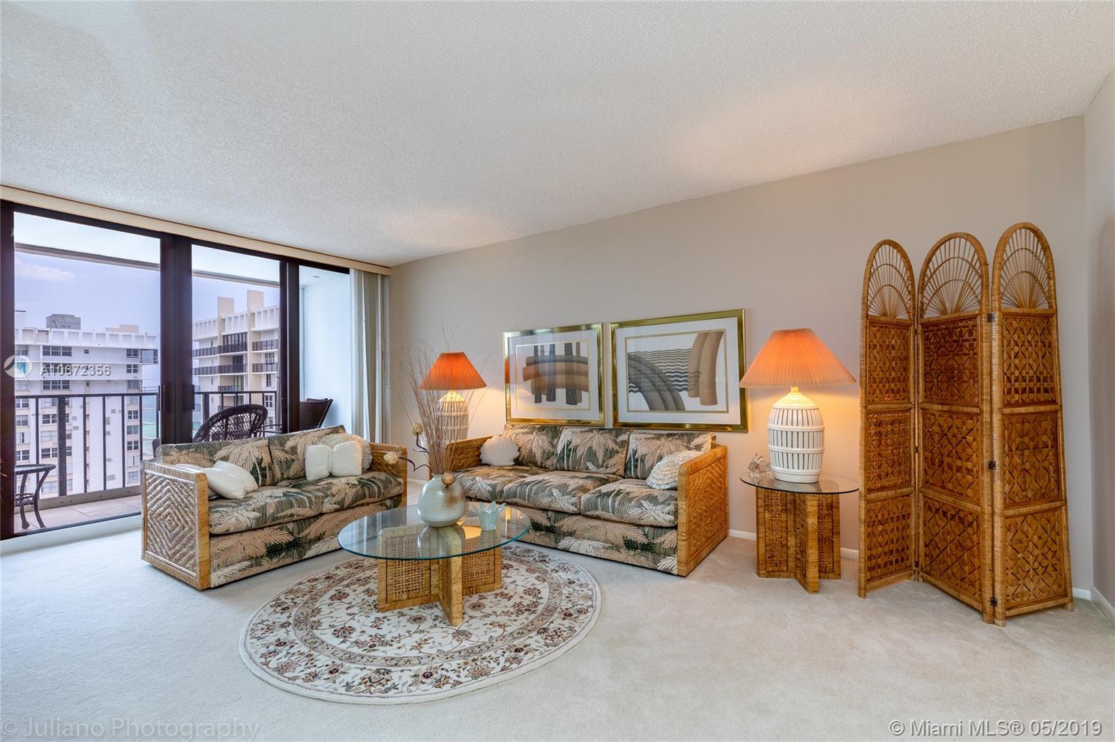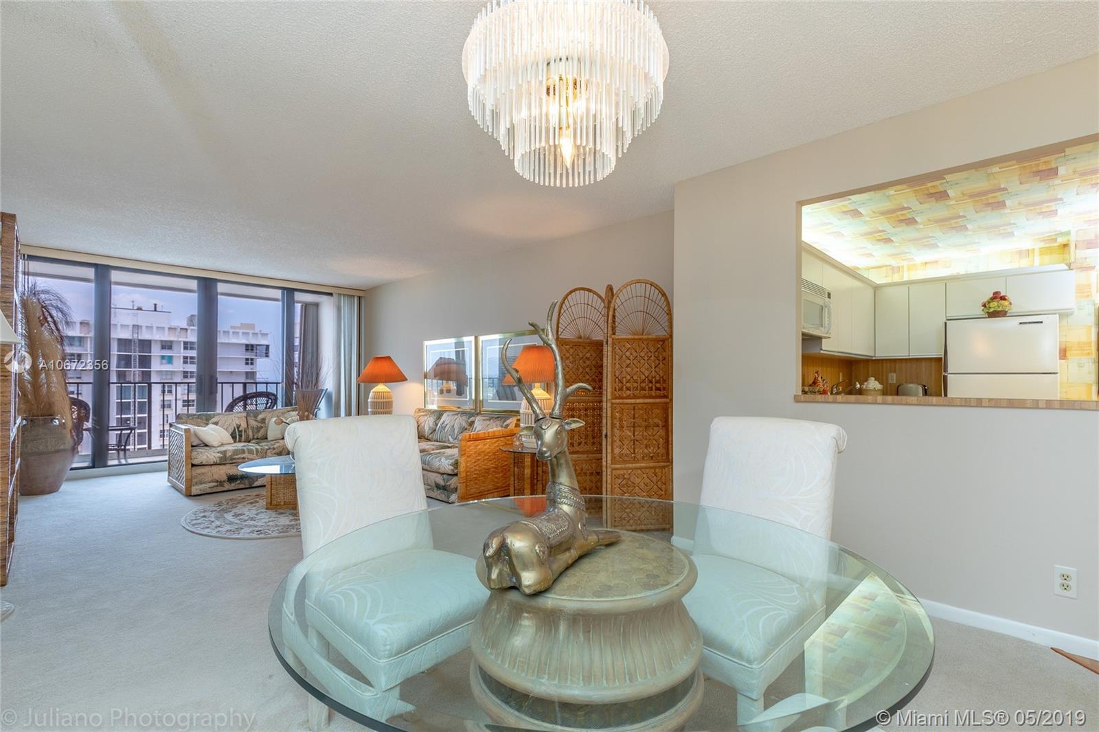 High floor, lovely 2br/2ba with great ocean and Intracoastal views. Hurricane proof windows throughout. Enjoy the resort style amenities featuring 2 swimming pools, 2 gyms, 2 saunas, a restaurant, kids room, billiards and ping pong, brand new salon, business center, free zumba, yoga, aqua aerobics, 24 hr. security, and much more. Walk to the famous Hollywood Broadwalk. Sold AS IS with furniture. Covered parking #421. Priced for a quick sale!