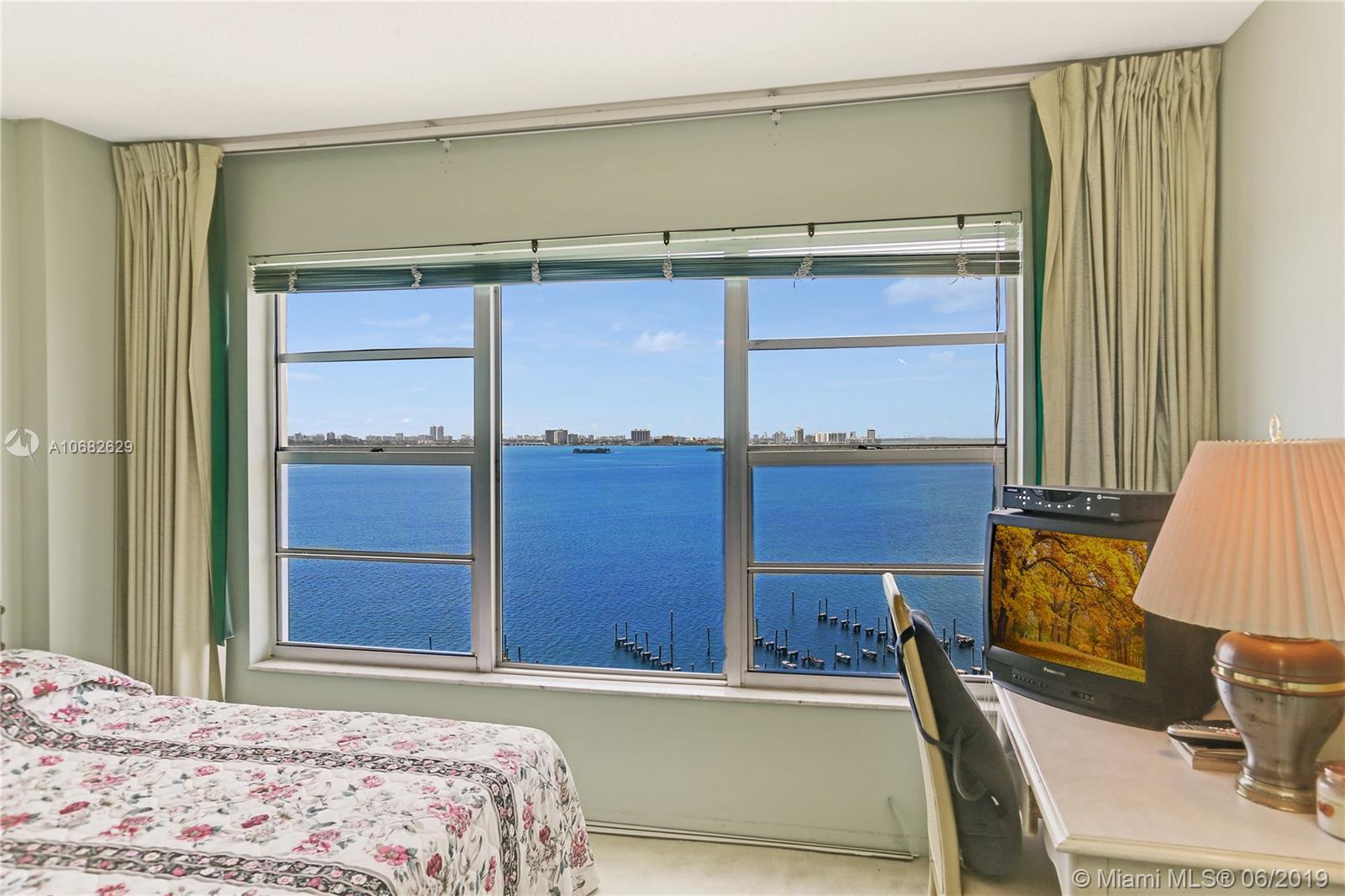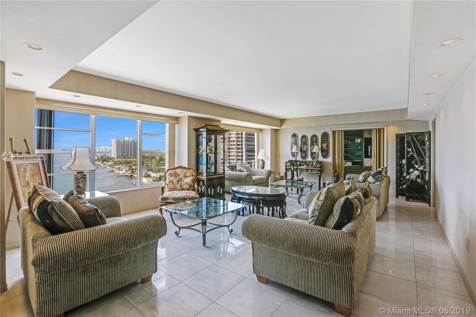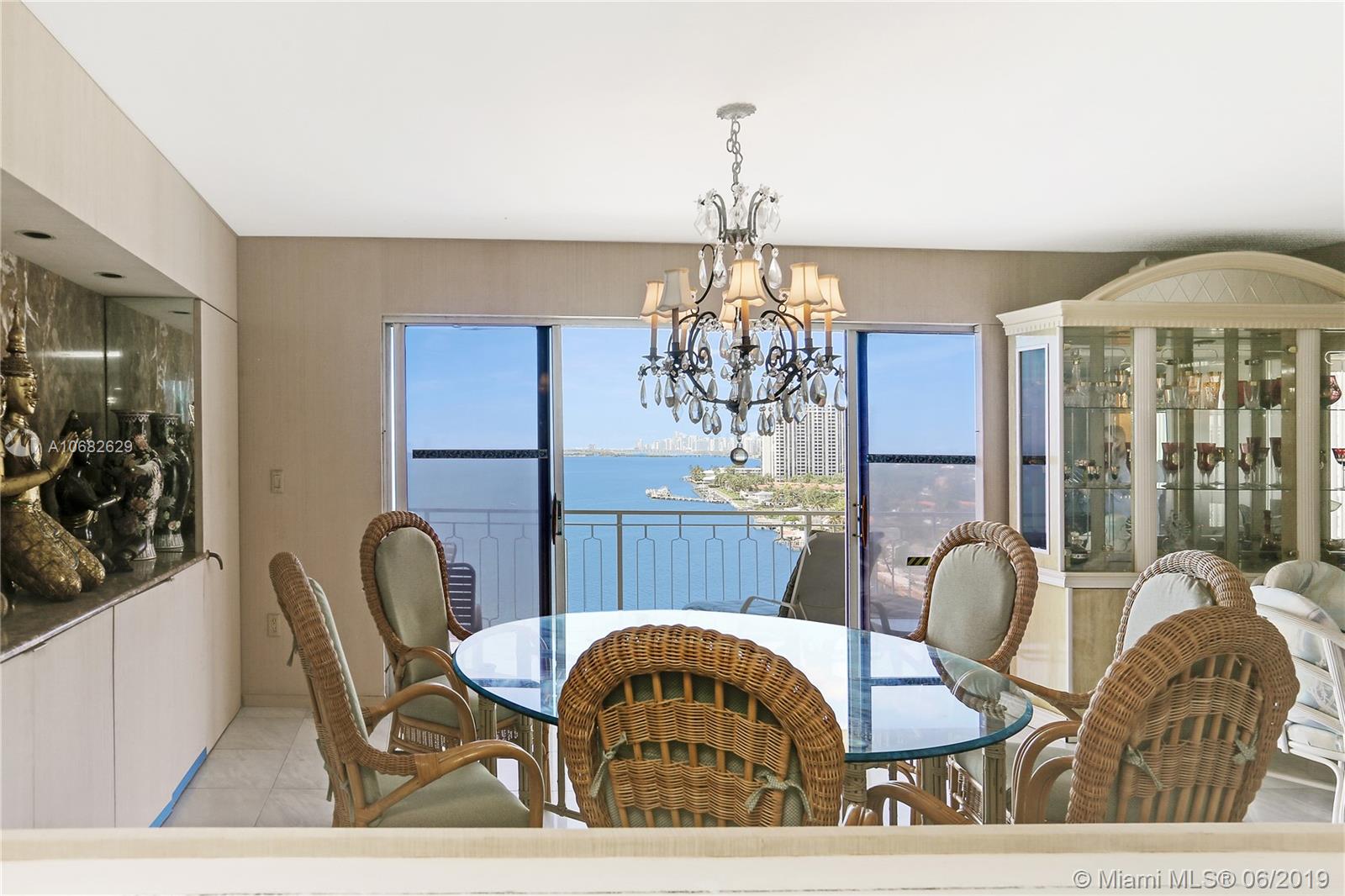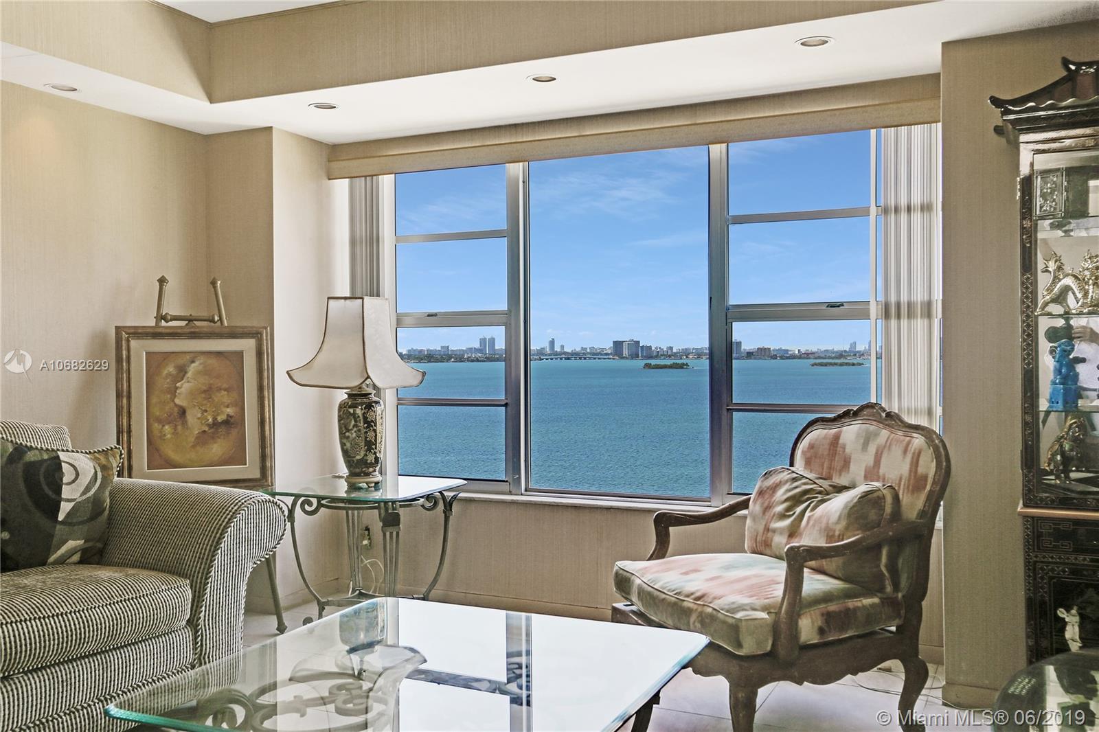 Rarely available! Two unit condo composed of 2,921sqft total! Make this into your dream 4 bedroom 4 bath home! Walk in thru an elegant double door entry and large foyer and enjoy breathtaking views of Biscayne Bay and the Miami Beach and Miami Skyline from floor to ceiling windows in every room. Full service building with 24 hr. security, pool, hot tub, children's play area, ample guest parking, complimentary valet, membership to Miami Shores Country Club and US1 Fitness. Situated in a 23 acre, 24hr gated waterfront community minutes to beaches, airports, Aventura Mall and Bal Harbour Shops.