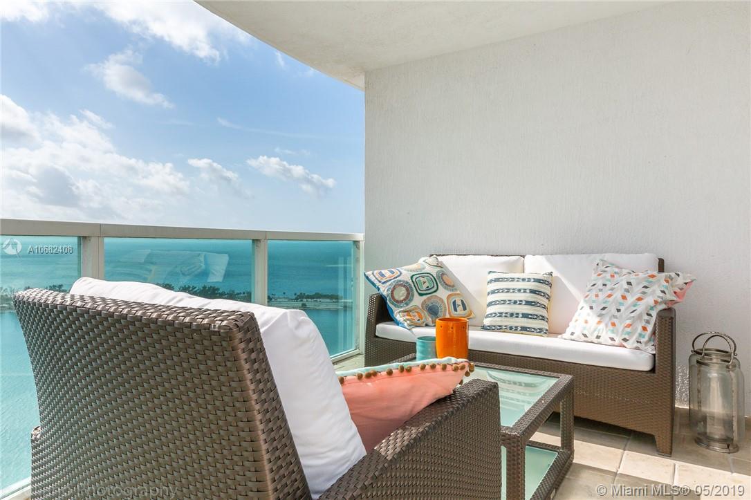Wake up every morning with the Florida Sunrise from your bed. Bayfront unit with the most amazing view in South Florida. The most stunting 2/2 unit in the building. A massive renovation turned this unit into the most beautiful unit in the building. FULLY FURNISHED BY ARTEFACTO(negociable) ,Custom made Kitchen and closets by ORNARE MIAMI! Gorgeous white glass porcelain floors throughout. Luxurious amenities and much more complements this fantastic unit.An extra storage are included with the purchase.Don't miss it.