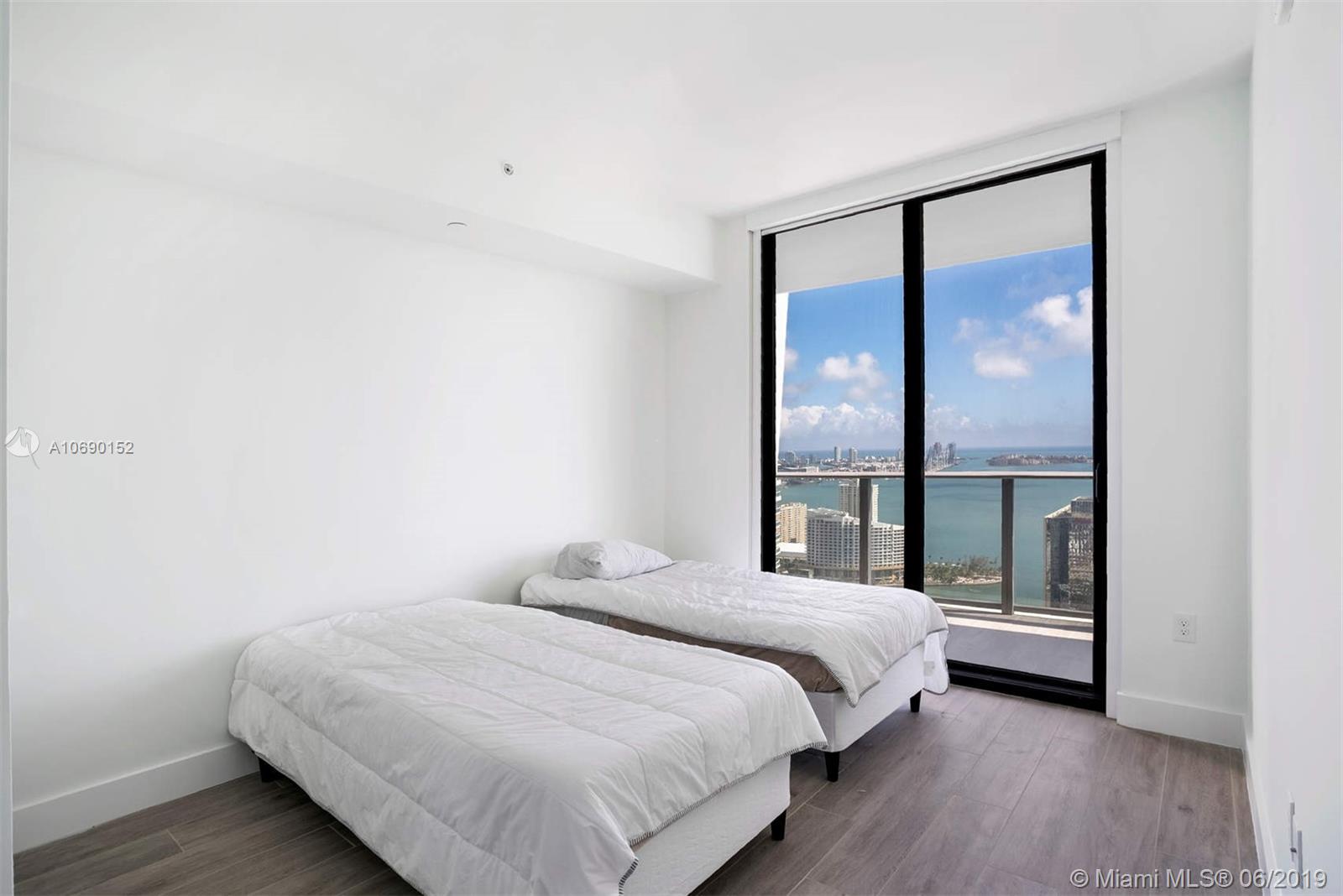 Best unit in 1010 Brickell! Designer Furnished. BRAND NEW, professionally designed 2 Bed + Den at 1010 Brickell. Step into 4504 through your private elevator and prepare to be WOW-ed by this move-in ready home in the sky. Direct views of the Biscayne Bay, Port of Miami, and South Beach. Wood-simulated porcelain flooring gives this expansive floor plan a true Miami modern feel. Designer touches throughout leave the task of further imagination at ease, as lighting, mirror, and wallpaper upgrades have already been completed. Murphy Bed storage system doubling as a home office. Residents' only rooftop pool, restaurant, Jacuzzi. Indoor pool, basketball & squash courts, bowling, hammam spa, & outdoor track. SoBe's infamous Lucali coming soon to building's ground floor. Steps from City Centre.