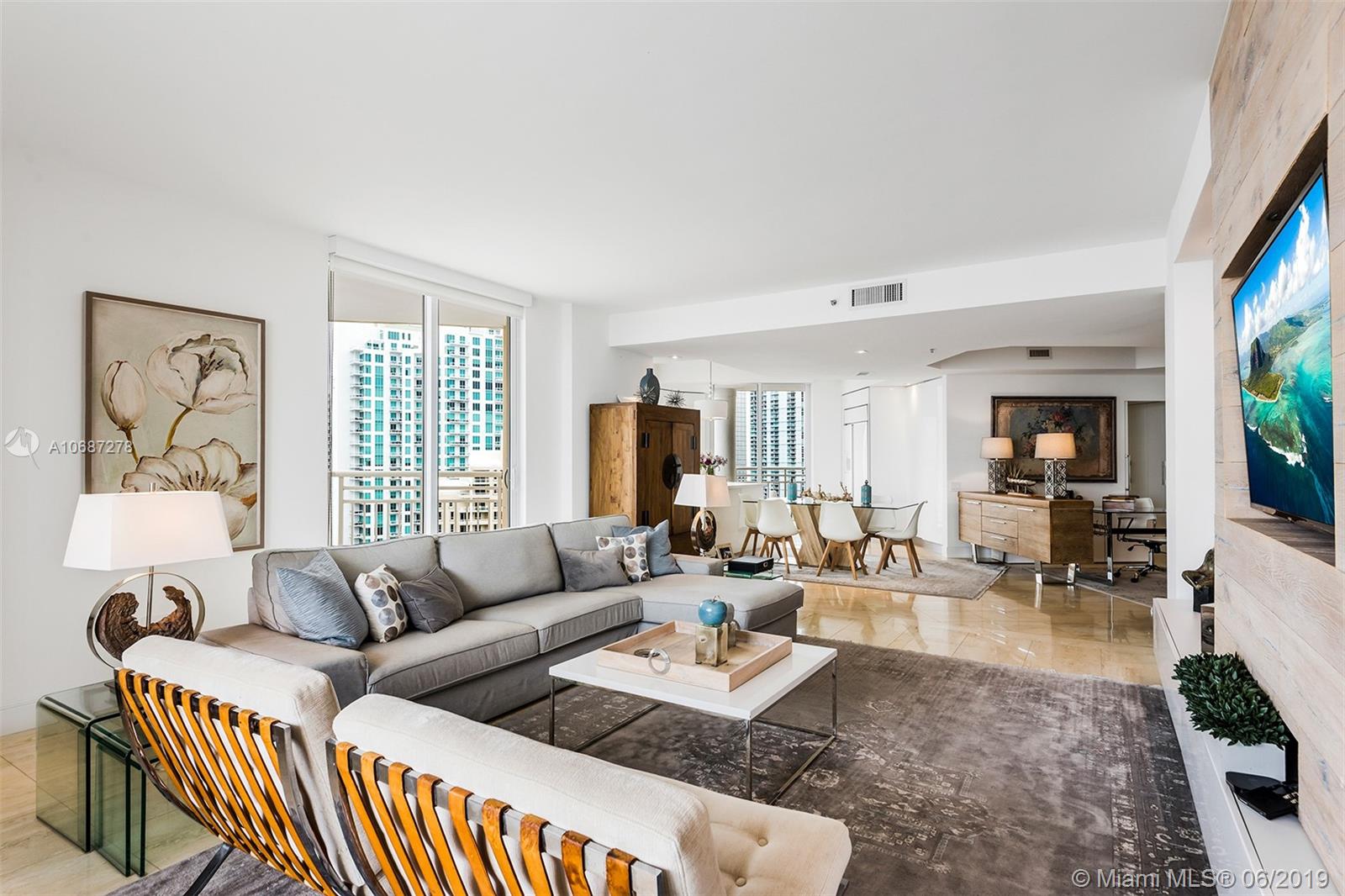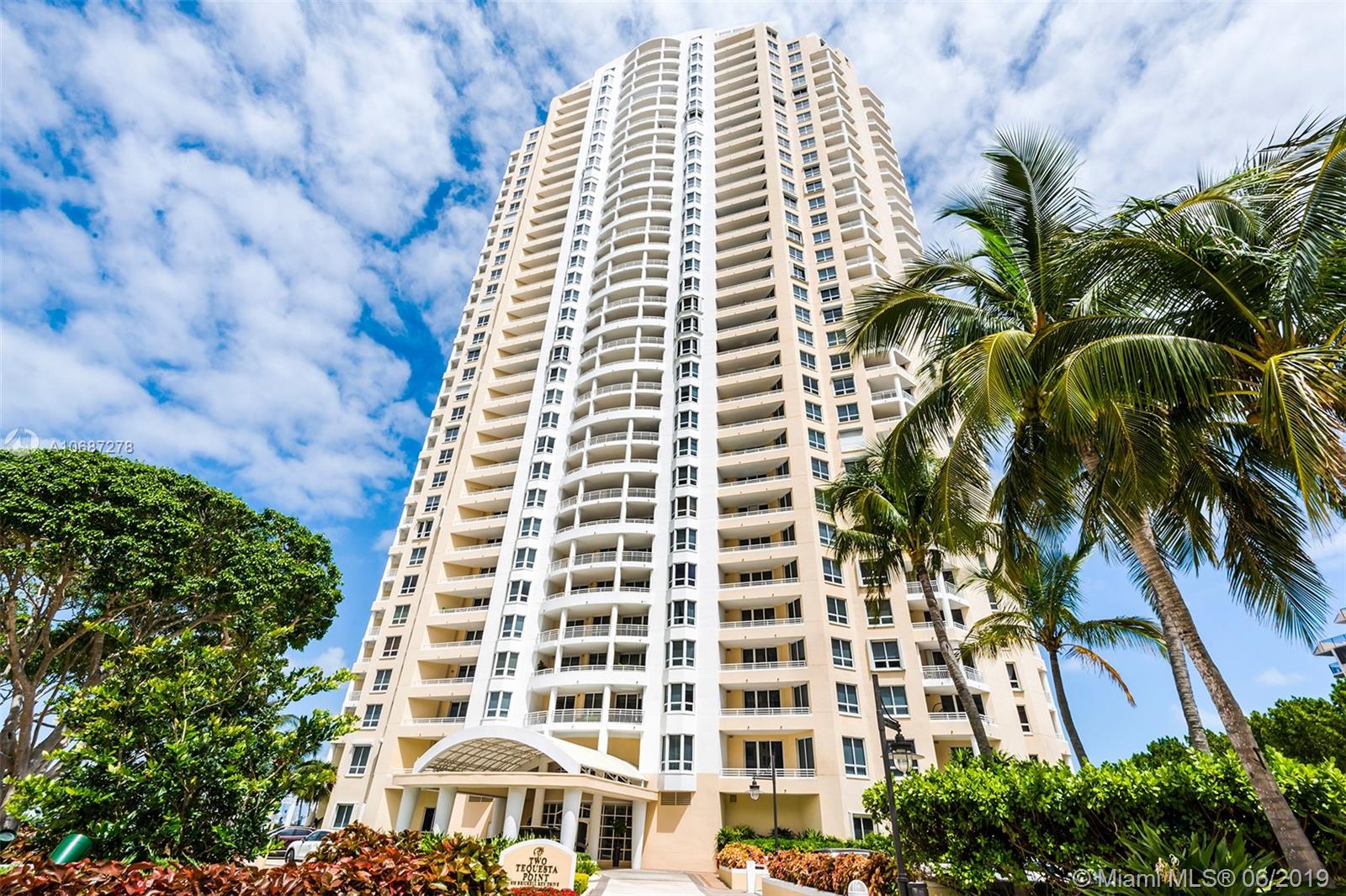Renovated 2 bed / 2 bath corner unit with spacious living room and dining room are. Enjoy beautiful Biscayne Bay views. Building offers Concierge, 24-hour security, Sauna, tennis and racquetball courts Fully-equipped fitness center, social room, BBQ area, whirlpool, clubhouse, billiard room, and heated swimming pool, jacuzzi. Two Tequesta Point condo has direct access to a walk/jog track around Brickell Key. Minutes away from the Financial District, Brickell Citi Center, Restaurants, Nightlife, American Airlines Arena, Bayside Marketplace, Miami International Airport.