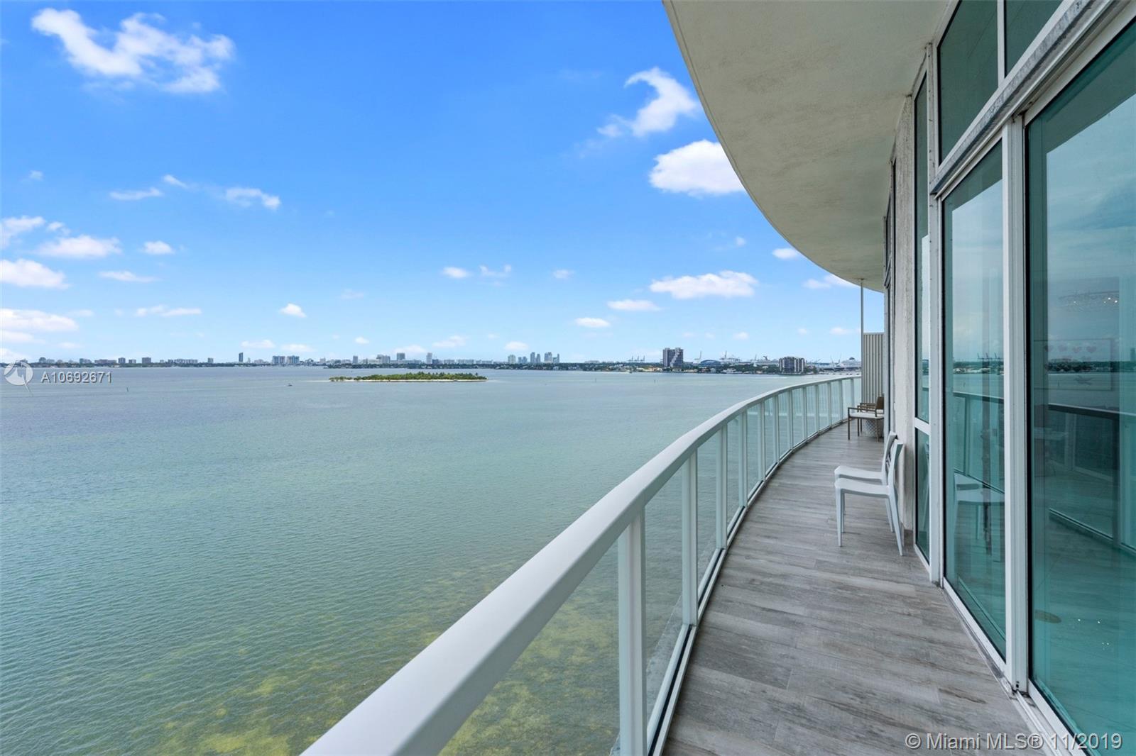 Water views everywhere in this incredibly unique property @ Onyx on the Bay! Only 2br floor plan of its kind with 12' high ceilings, floor to ceiling windows, and bay views and balconies from every room. Spacious open floor plan with lots of upgrades, white ceramic tile floors, upgraded open kitchen with high-end appliances, 2.5 baths, extra long balcony extending the entire unit and much more. Onyx is ideally located in Edgewater on the bay close to everything. Minutes to Midtown, Wynwood, the Design District, Miami Beach, Downtown and the MIA airport. The building offers full amenities with 24hr security and front desk staff, complete gym and cardio areas with sauna, pool area overlooking the bay and a sunrise/sunset deck with BBQ area.