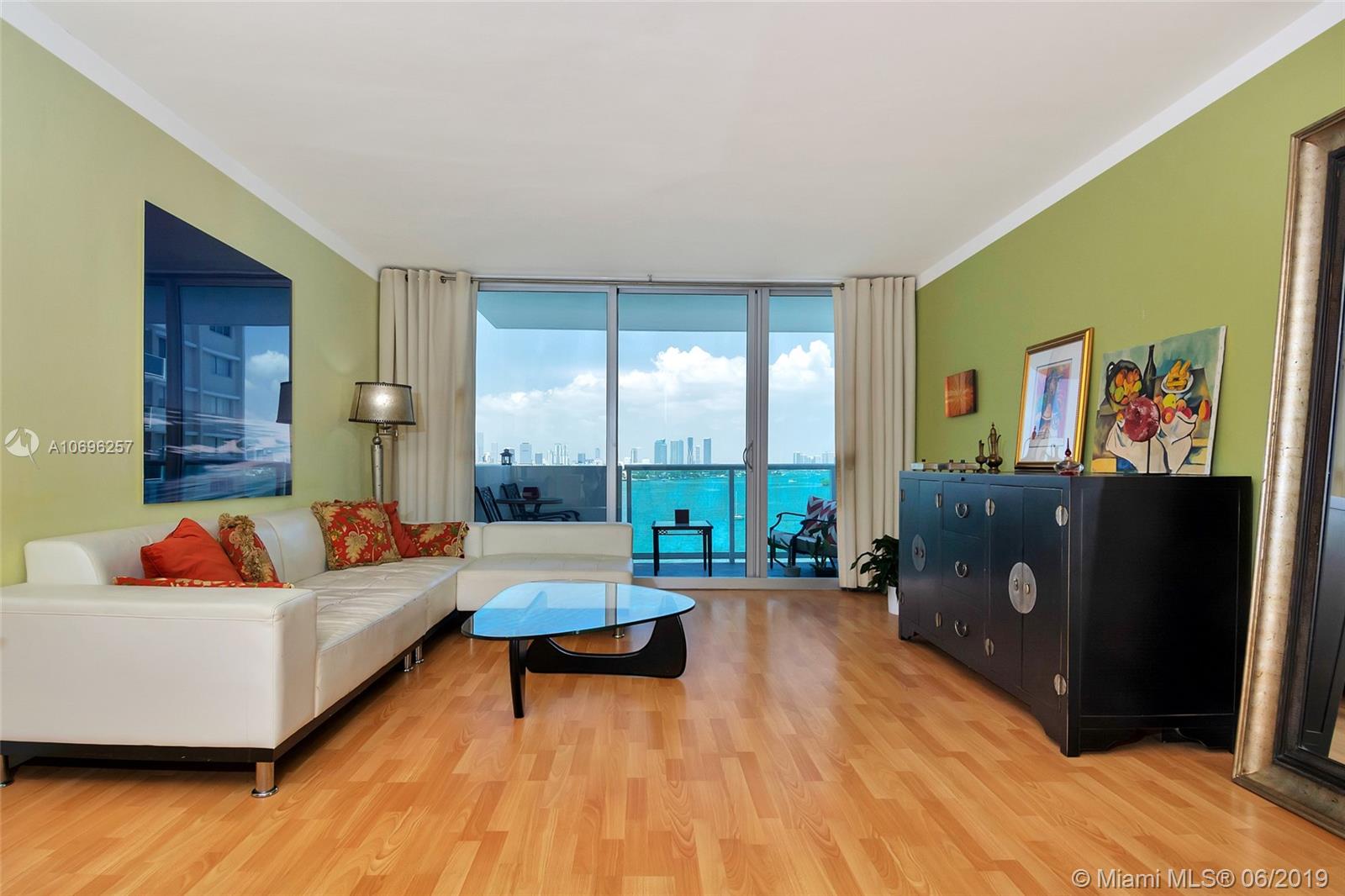 JUST REDUCED....LOWEST PRICED,..This is a Direct Unobstructed Bay View!! Upon opening your door you are welcomed home by the pristine waters of Biscayne Bay, the stunning Miami skyline as a backdrop with views of Yachts, Boats and Jet Skis as they sail thru the open bay! This will be every day in this amazing unit in the heart of South Beach. This 1 bed 1 bath condo is the epitome of easy Florida living. Enjoy exploring a neighborhood full of restaurants, cafes, shopping and retail all at your doorstep. The Mirador is a full service building including: valet, security, in house management, state of the art fitness center, gorgeous bay side pool, convenience store and more. The condo has wood floors throughout and hurricane impact windows. Easy to show.