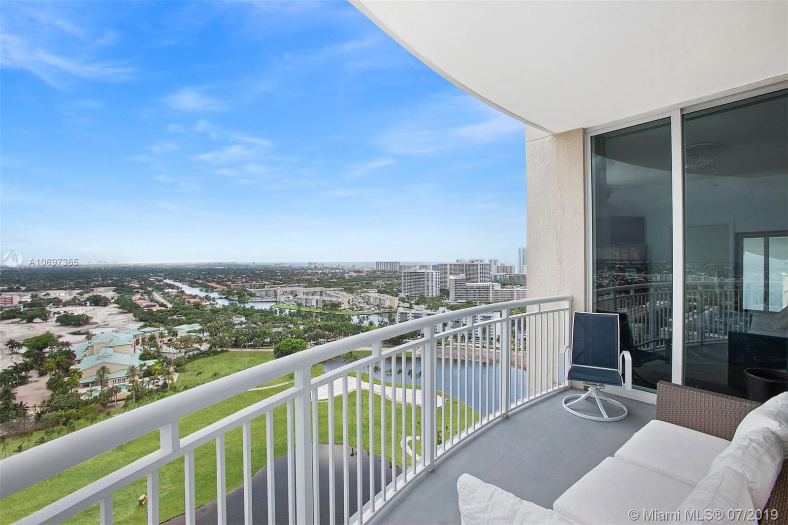 Luxurious Duo!! Stunning panoramic views. Large corner sub-penthouse. Views for miles of country club, the Intracoastal, Gulfstream Park, & the ocean. Extra high ceilings, large wrap-around balconies. Gorgeous new kitchen with white quartz & stainless. Washer/Dryer. 2 small pets up to 25lbs each. Unit can be rented immediately. High end full service bldg. with doorman, valet, pool, tennis, jogging track, fitness center, onsite manager, and much more. Can be rented immediately. Walk to shopping, dining, the beach, and Gulfstream Park.