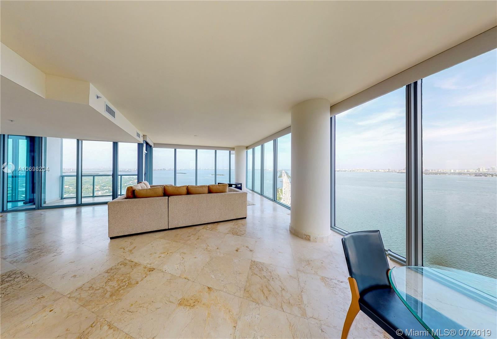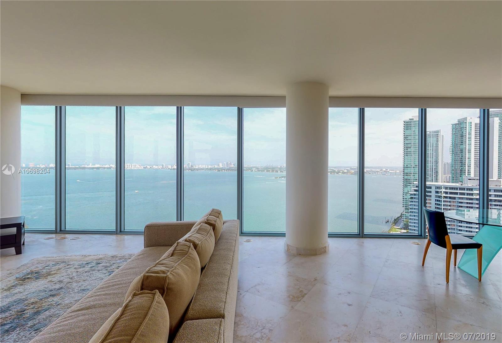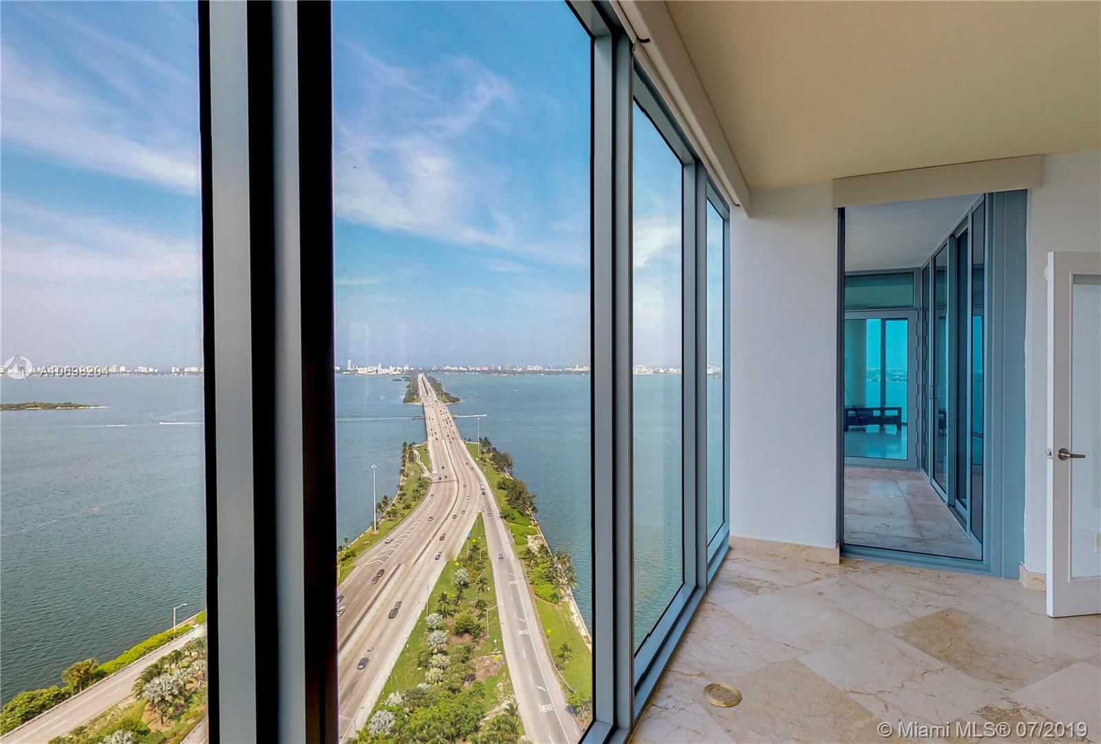 Spectacular 2 bed 2.5 bath 2,000 sq. ft. as per owner. Least expensive ocean view 12 line with 270 degree views thru floor to ceiling windows overlooking Biscayne Bay and Miami Beach. 'Movie set' views sweep from Hard Rock Stadium, to Ft. Lauderdale, across the skyline of So. Beach to the cruise ship terminals! Marble floors, a stunning open kitchen, and high ceilings add to the beauty. Listed less than $399 per sq ft, half the price of nearby new construction! Master bedroom with large walk-in closet has been redesigned to accentuate water views. 2 Parking Spaces, Pet Friendly, Semi-Private Elevators. Centrally located Minutes to Wynwood, Design District, South Beach, and the Highways! Easy to Show!