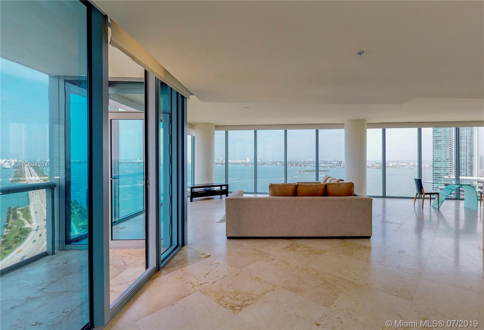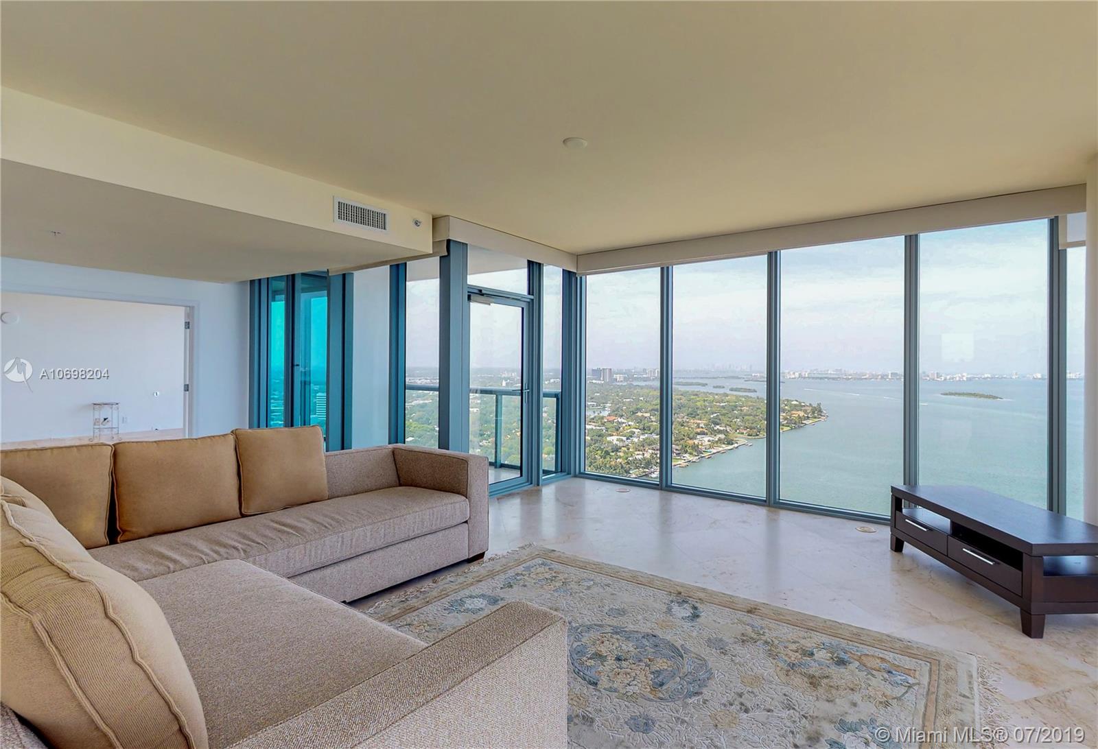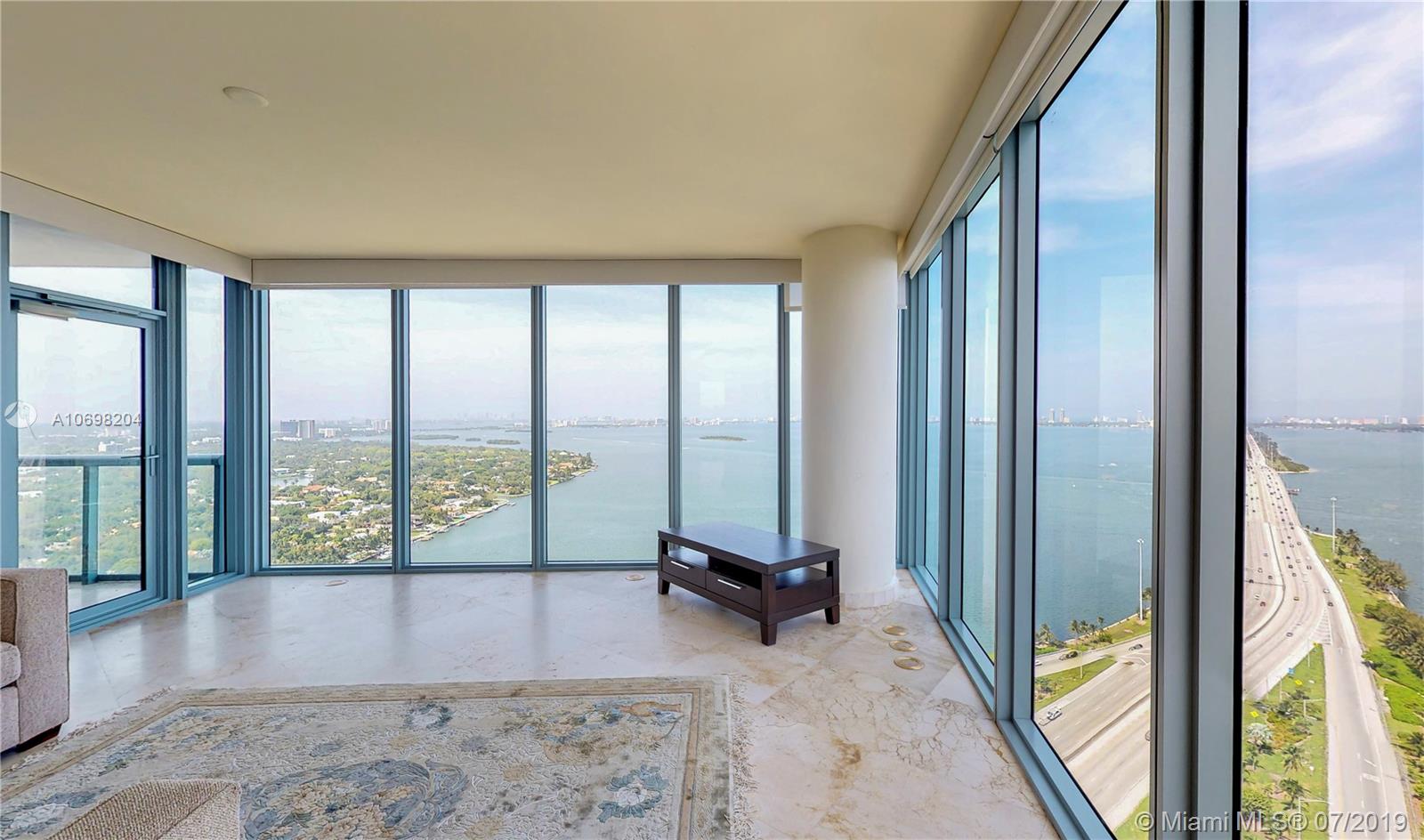 Spectacular 2 bed 2.5 bath 2,000 sq. ft. as per owner. Least expensive ocean view 12 line with 270 degree views thru floor to ceiling windows overlooking Biscayne Bay and Miami Beach. 'Movie set' views sweep from Hard Rock Stadium, to Ft. Lauderdale, across the skyline of So. Beach to the cruise ship terminals! Marble floors, a stunning open kitchen, and high ceilings add to the beauty. Listed less than $399 per sq ft, half the price of nearby new construction! Master bedroom with large walk-in closet has been redesigned to accentuate water views. 2 Parking Spaces, Pet Friendly, Semi-Private Elevators. Centrally located Minutes to Wynwood, Design District, South Beach, and the Highways! Easy to Show!