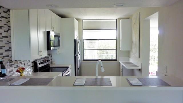Gorgeous 4th-floor condo with great views of the golf course. This completely remodeled 2/2 unit features: washer/dryer, kitchen with white Italian Quartz counters, Stainless Steel appliances, wood-like laminate floors that are insulated for soundproofing & cold/warm air retention, open-concept floor plan and small office/den. All ages community with Clubhouse, pool/hot tub, golf, tennis & tot lot. Basic cable, water/trash, common areas, building exterior included in Assn fee. Close to the highways, shopping, dining and FLL airport. One assigned parking. No renting 1st 2 years/No pets.