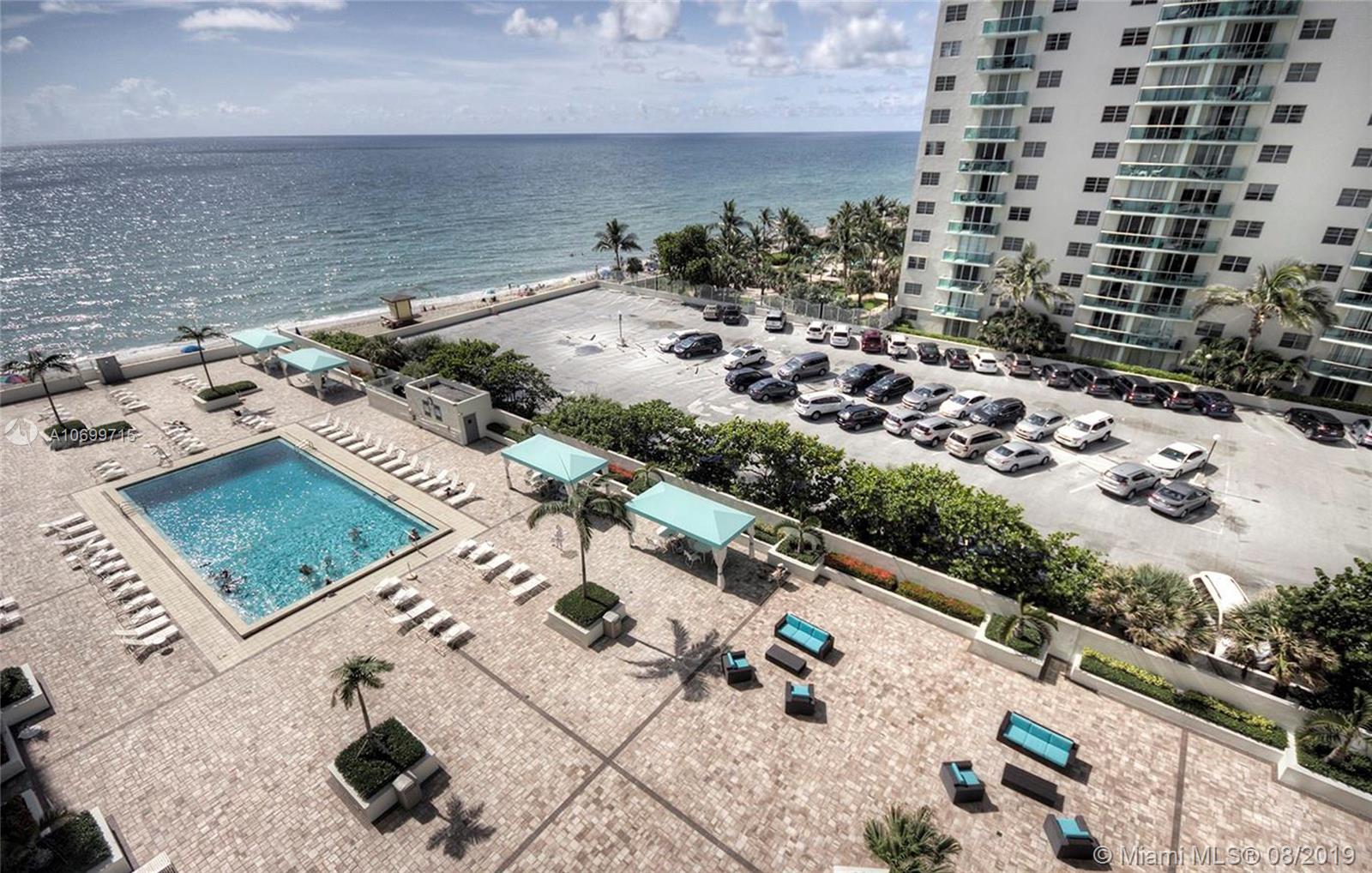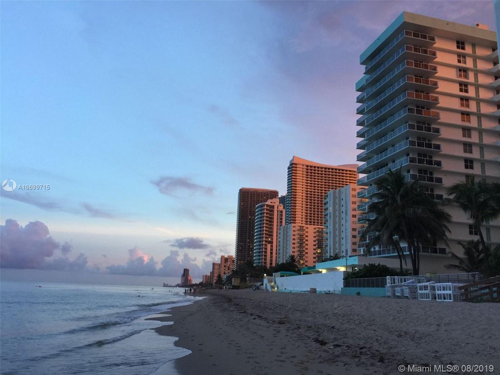 Great Ocean/Intracoastal views, right on the beach in a beautiful well maintained building, seller financing available, walk to shopping, the Hollywood Broadwalk next to Diplomat Resort!! Live like you're on vacation! Enjoy the fine amenities including a restaurant onsite, gym, pool tables, valet & self parking, and a resort-like pool, just to name a few. Lots of closet space. Tiled thru out throughout with a balcony for enjoying the views of the intra-coastal and the beach.