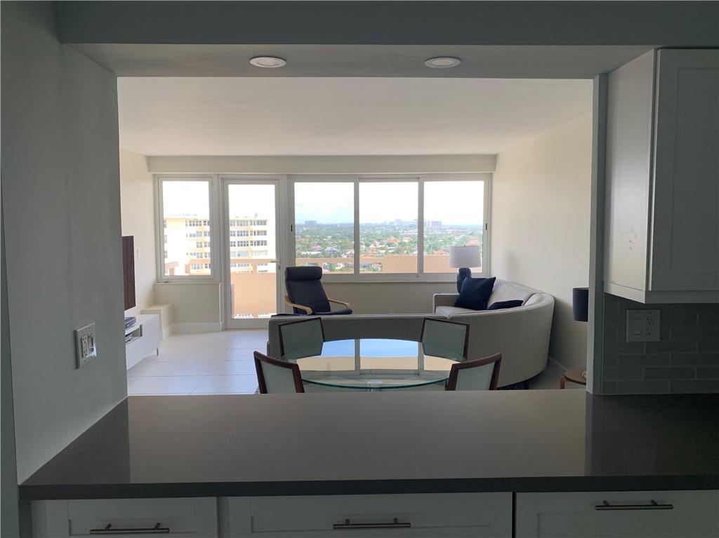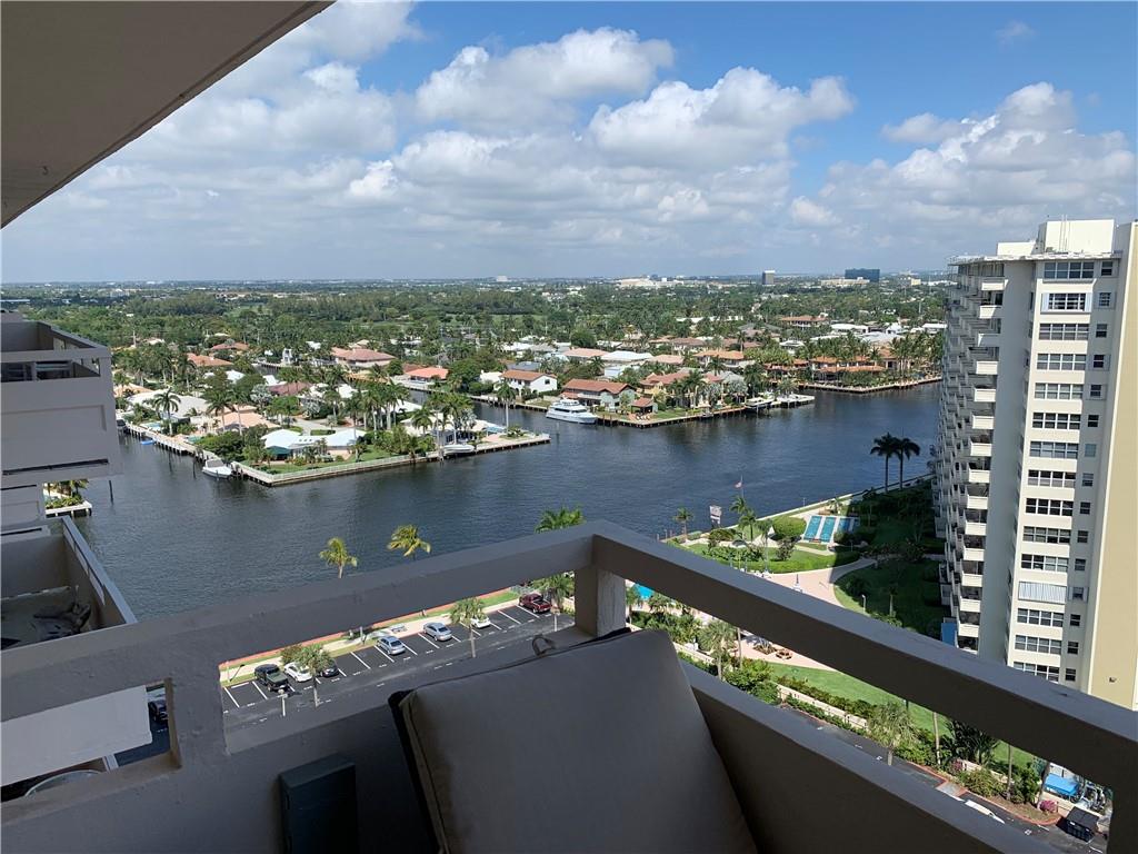 Stunning panoramic view of the ocean, the Intracoastal, and Fort Lauderdale looking North, from this totally remodeled 2 bed/2 bath penthouse unit. Brand new A/C system, kitchen with induction range, washer/dryer, porcelain floors, and master bathroom with walk-in shower. Abundance of closets and storage. Secure building with 24-hour doorman, updated gym, and a beautiful outdoor pool right on the Intracoastal. A 55+ community just 2 blocks from the ocean and an easy walk to restaurants and shopping.