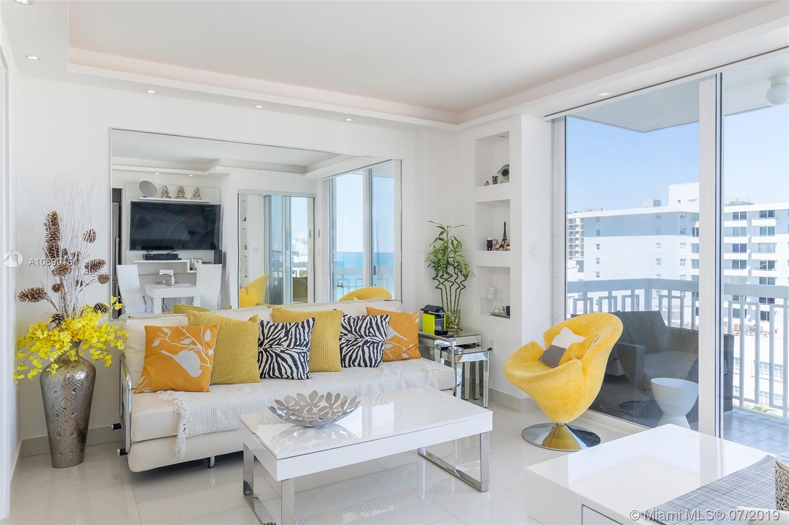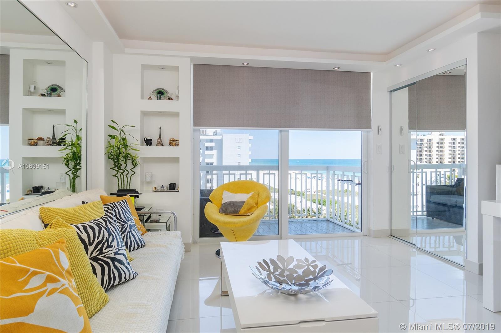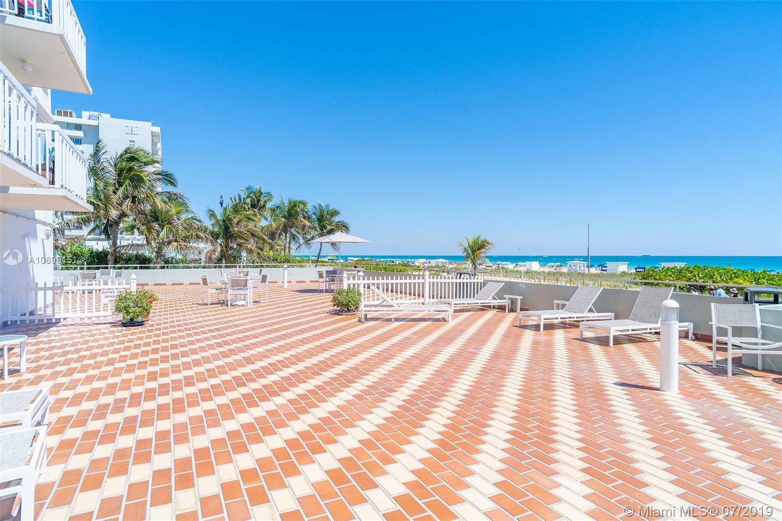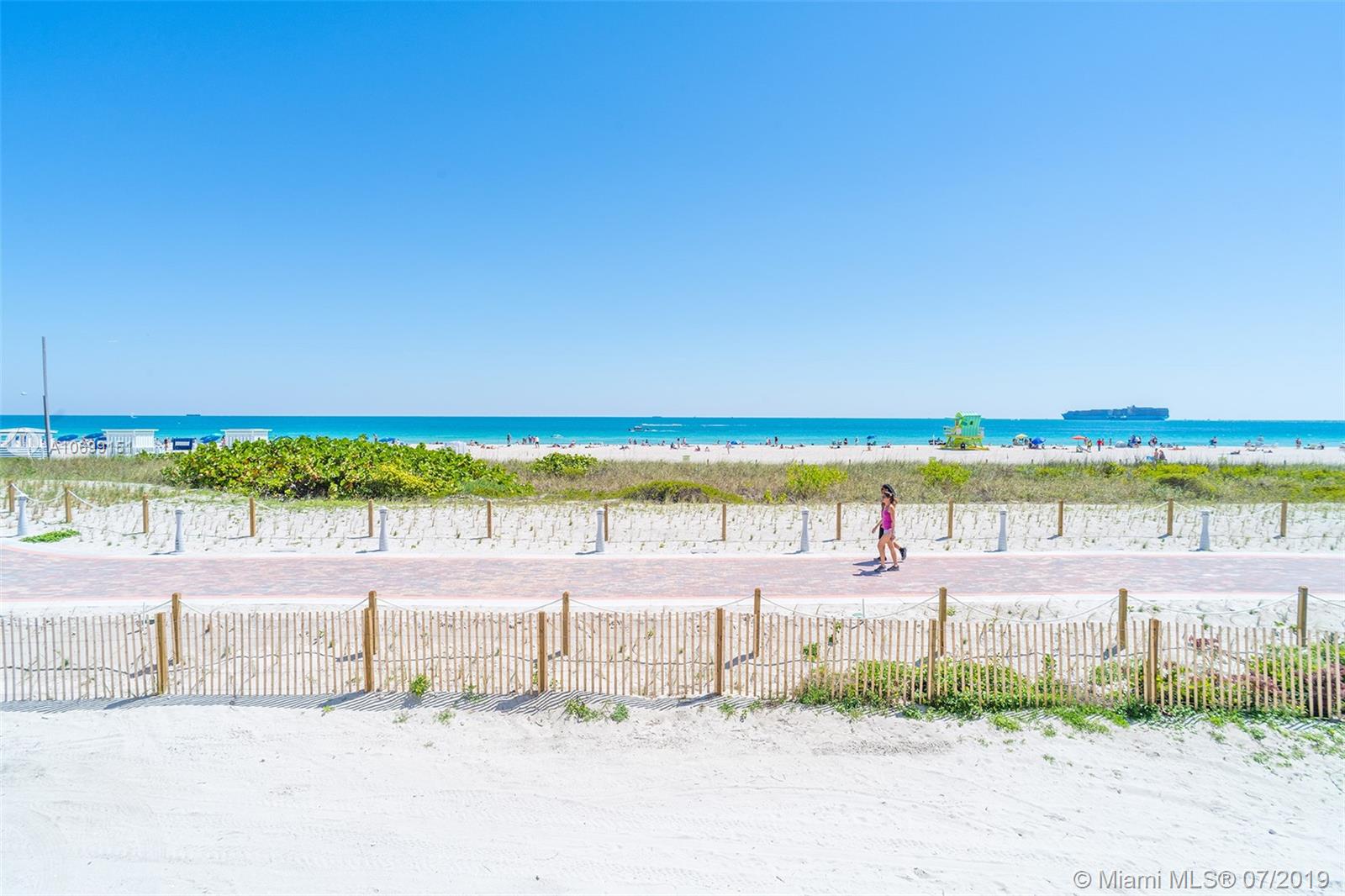 401 Ocean Drive Jr. one bedroom presented in sheer perfection. Northeast corner with panoramic views of the Atlantic Ocean, the beach & Ocean Drive. White tiled floors, custom kitchen with stainless appliances, marble spa-inspired bath and a white modern palate that frames this offering and welcomes all with beautiful natural sunlight, ocean sounds and a balcony that is more of an extended outdoor living space where sunrises greet daily on command.