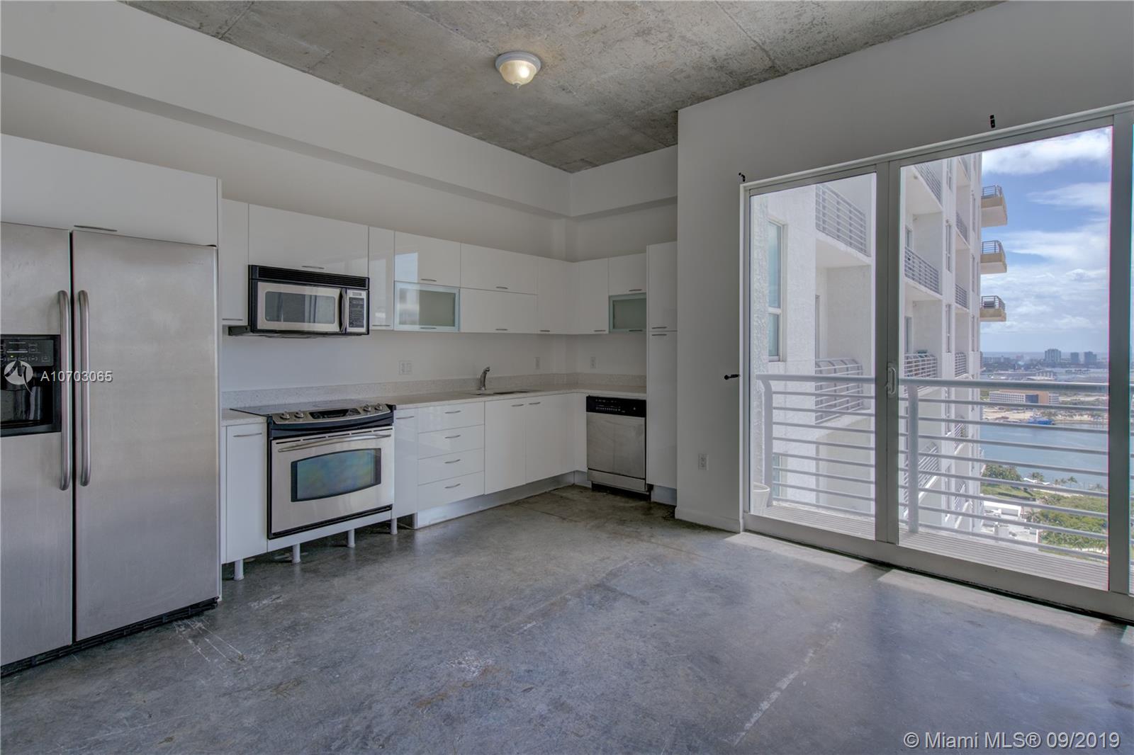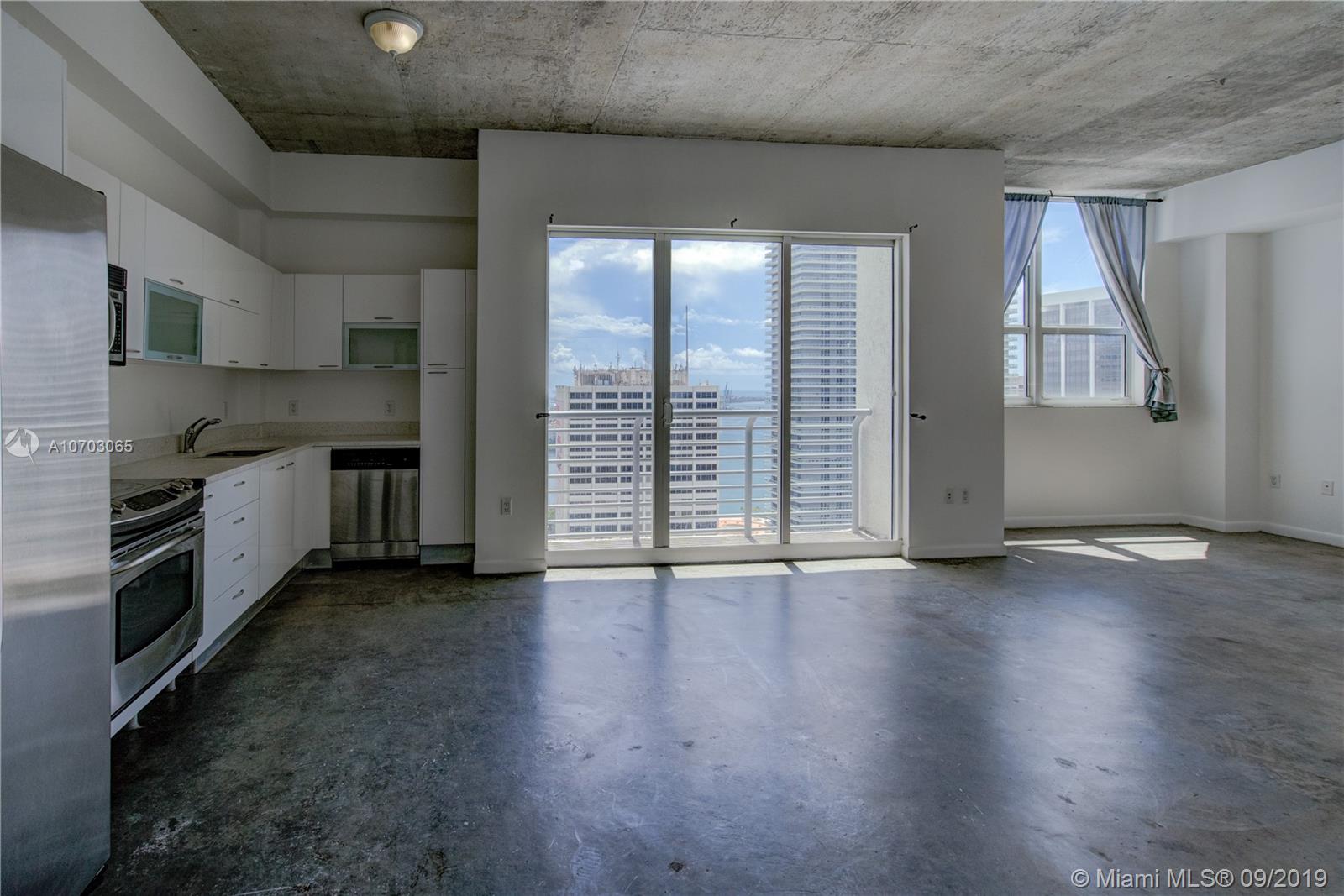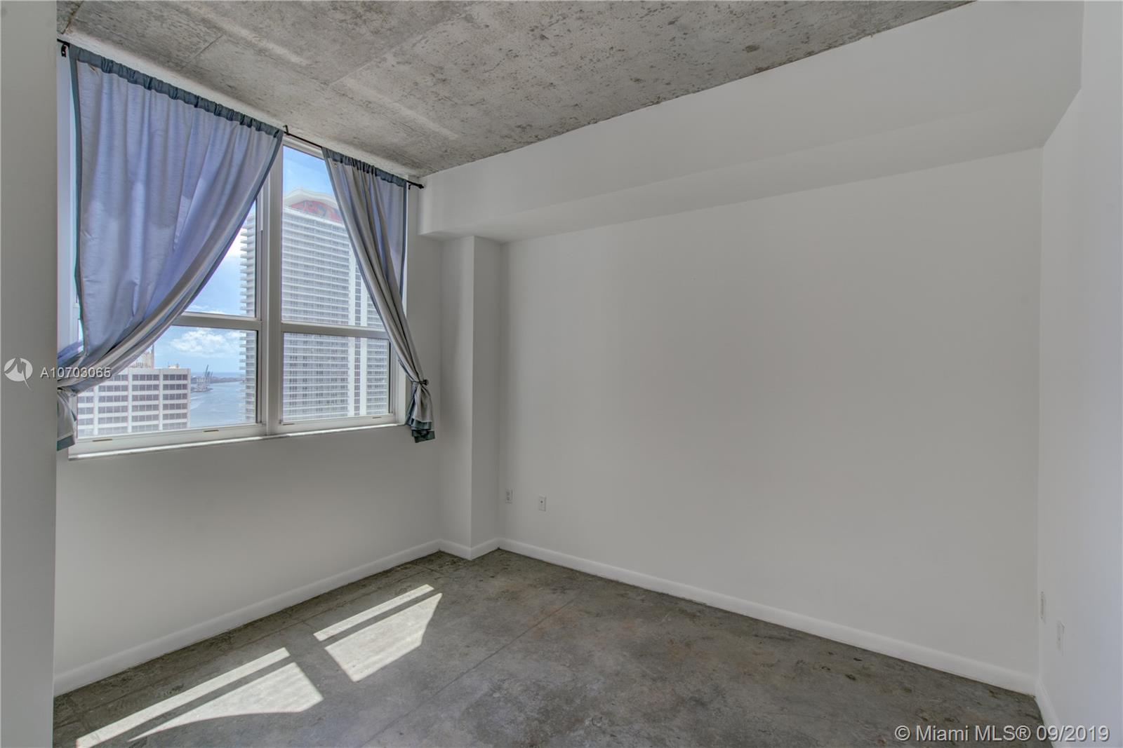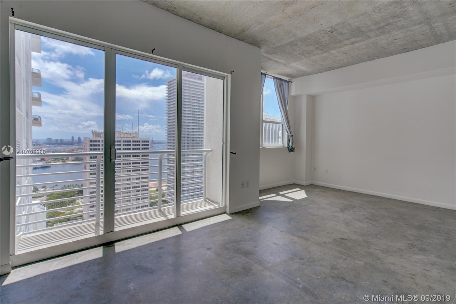 Spacious one bedroom loft style with 10' ceiling in the heart of Downtown.The unit features European style kitchen with stainless steel appliances, washer/dryer, concrete floor,... Bay and city views. Amenities include 2 pools (one being roof top pool with spectacular ocean and city view), gym & lounge. Close to Brickell City Center, Whole Foods, restaurants, lounges, shopping center, Miami Dade College & American Airlines Arena,...Enjoy easy access to metro mover, I95, airport, and the Beach,...