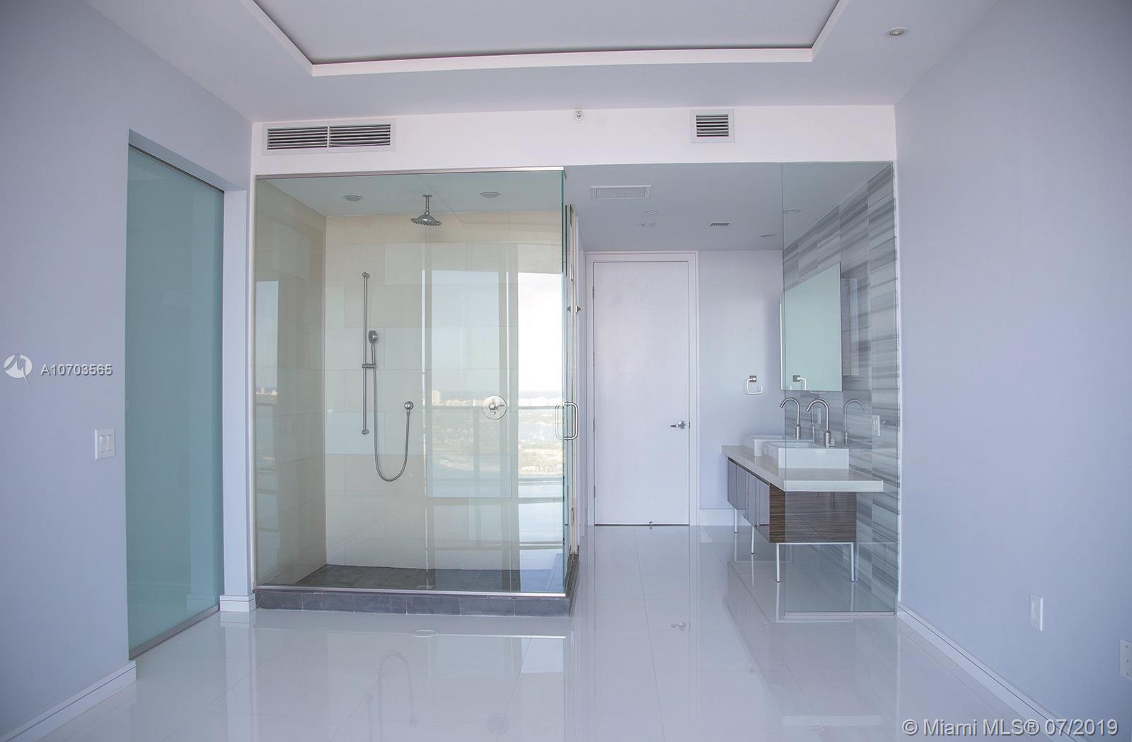 RENOVATED 2 bedroom 2 1/2 bath. Stunning views of Biscayne Bay, Downtown, and Museum Park! White glass porcelanato including all bathrooms and balcony - upgraded bathroom flooring to have the same throughout theENTIRE UNIT. Floating ceiling over entire living room and master bedroom and custom celling in 2nd bedroom. Renovated second bedroom walking to make room BIGGER! Custom closet system w/drawers, storage and hanging space in both bedrooms. Custom frosted glass wall in foyer to bring in NATURAL LIGHT! Custom recessed lighting throughout the unit. Custom elevator casings with lighting and recessed light in foyer. European kitchen with Viking appliances Quartz countertops. Custom vanity in powder room. Black outs and shears in bedrooms.