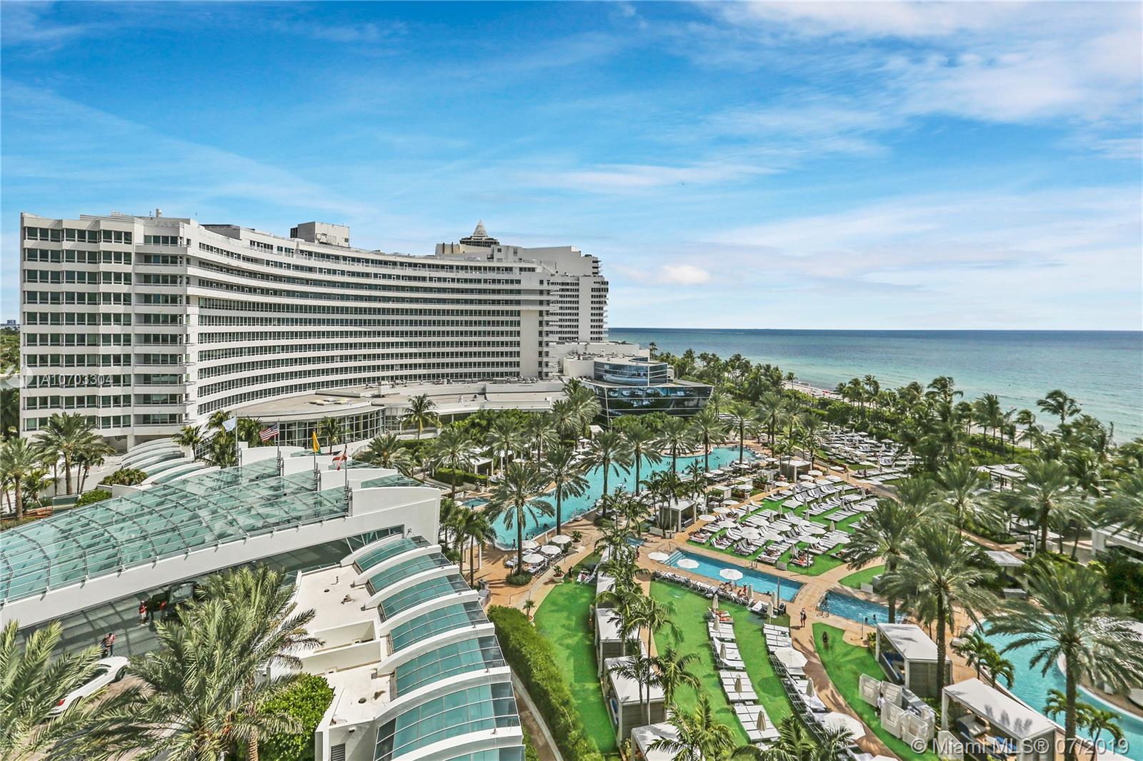 Beautiful North facing Jr Suite w/ Ocean, Bay & Hotel pool views at The Fontainebleau III. Enjoy full service, vacation-style living; furnished turnkey unit with king bed, sleeper sofa & more. Enroll in hotel rental program & receive income while away! The Fontainebleau Resort offers luxury amenities on 22 oceanfront acres including award-winning restaurants, LIV night club, Lapis spa & state-of-the-art fitness center. Maintenance includes: AC, local calls, electricity, valet + daily free breakfast in the owners lounge