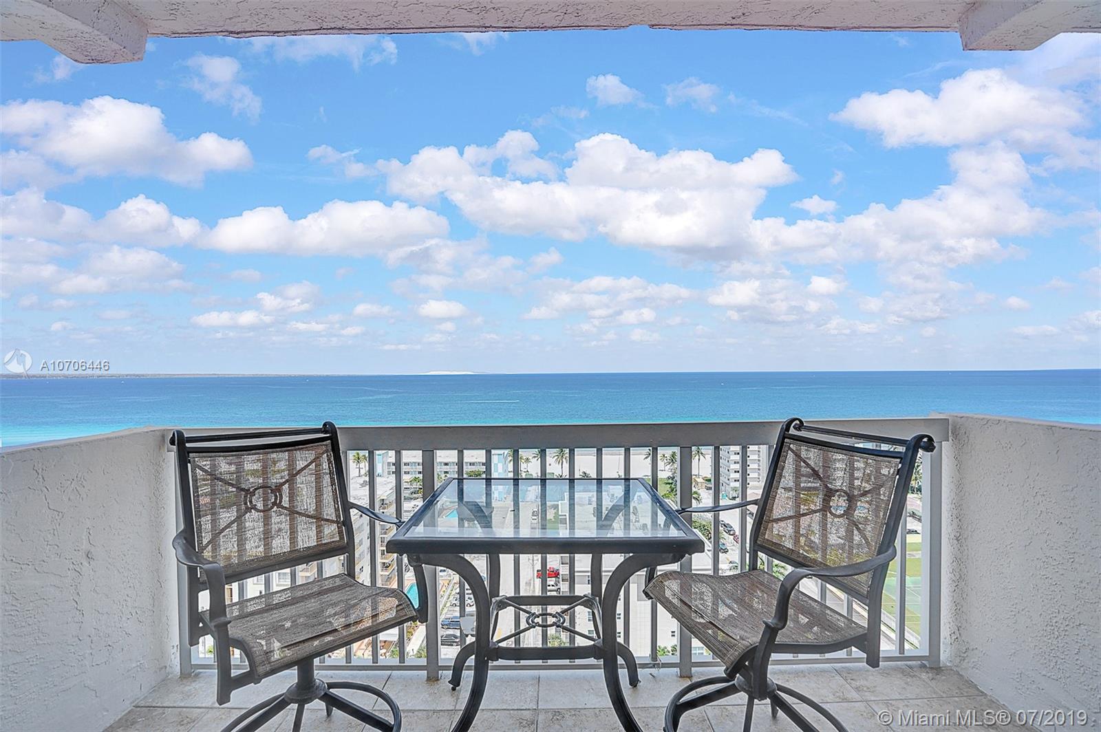 LOCATION !! LOCATION!! BEAUTIFUL VIEW, EAST EXPOSURE ON THE BLUE OCEAN DIRECT FROM BALCONY ! LOVELY PENTHOUSE ! FURNISHED 1BD,2 BA. OPEN KITCHEN. ALL CERAMIC TILE. 9' FT CEILINGS. EXTRA STORAGE. OLYMPIC HEATED POOL SITS ON INTRACOASTAL. LOW MAINTENANCE. 24 HOUR SECURITY DOORMAN. BLDG. JUST COMPLETED THE 40 YEAR RENOVATION: NEW ELEVATORS / NEW ROOF/NEW SEAWALL /NEW DRIVEWAY / NEW POOL DECK / NEW DRAIN PIPES AND BALCONY RESTORATION. ASSESSMENTS ALREADY PAID BY OWNER. ONLY 300 STEPS FROM LARGE AND PRISTINE BEACH!! ACCROSS THE STREET FROM THE OCEAN AND MINUTES AWAY TO MARGARITAVILLE ON THE HOLLYWOOD BEACH. CLOSE TO GULFSTREAM RACE TRACK / CASINO/RESTAURANTS AND AIRPORT. RENTAL ALLOWED AFTER THE FIRST YEAR.