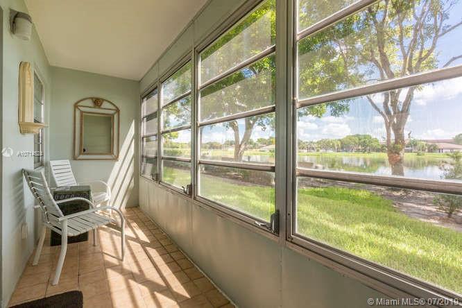 Wonderfully remodeled 2 bed 2 bath unit with wide lake views, first floor with easy parking. This unit was designed with marble floors, extending into the newly remodeled bathrooms for that elegant touch. Renovated kitchen with granite counters & modern lighting! A must see, with new wood floors, ceilings, paint & widow treatments. Great lake views with clubhouse easy walking distance. Parking is steps from unit with guest nearby! Century Village offers numerous pools, professional gym including various classes, movies, shows, clubs, classes, transportation, cable, internet & more included in Maintenance fee! HOPA commmunity 55+