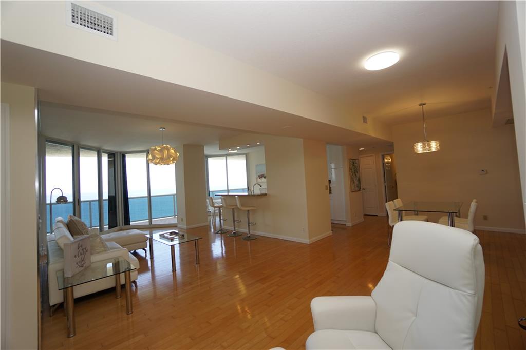 Ocean views, Ocean views from every room. 2 bed & 2 bath. Open floor plan with split bedrooms. Modern finishes. Freshly painted, new refrigerator, dishwasher and oven. RESORT-LIKE Complex with Tennis, pools, cafe,concierge,valet,beach attendant, cabanas,tikis huts,bbq area, private beach pavilion..2 pets , any size, ok.. EASY TO SHOW!