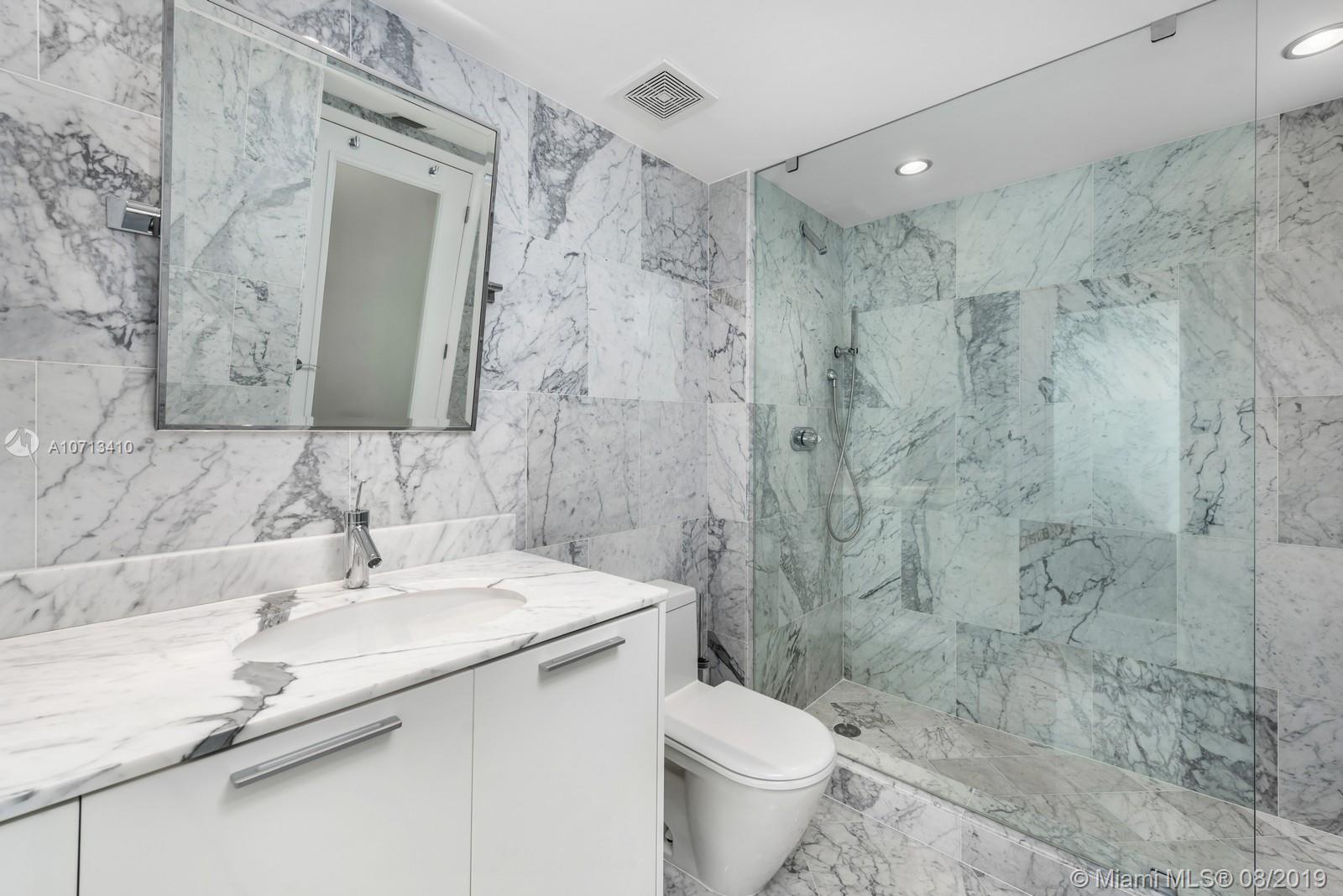Impeccable unit completely renovated with the finest materials.Needs nothing & is presented with the utmost taste.This rarely available and spacious 2BR/2BA unit has the best Murano Grande has to offer!Open kitchen layout contains custom pull out pantry system,Sub Zero refrigerator, Miele oven, Jenn-Air induction cooktop,Double Blanco deep sinks,&touch faucet. Living room has built in entertainment and nest thermostat.Master contains full size stacked LG washer & dryer in custom closet with folding pocket door & is equipped with curtains & remote black out shades. Guest contains blackout & privacy shades.Both master and guest bath have floor to ceiling marble, Duravit appliances, & Stark fixtures. Enjoy amazing day and night views of the ocean & Miami Beach skyline from your vast terrace.