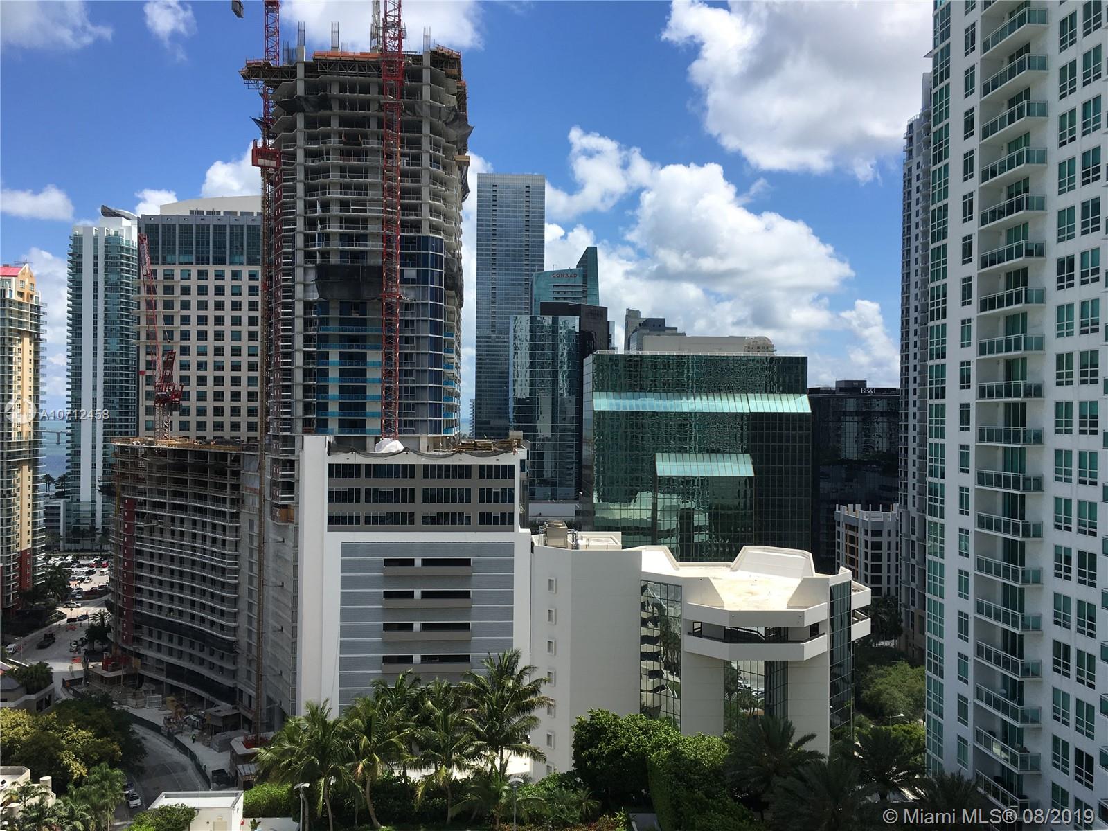 Beautiful view of skyline, bay and pool from this great unit on 21st floor. Compared to other units in this building this one overlooks over swimming pool area belonging to the building, creating an open space that you will never loose, no buildings will be built just in front to block your view!!! A plus in Brickell. You have some ocean view too! and a high rise! 2Bed/2Bath unit, recently installed luxurious vinyl floors (wood look, super water resistant), modern kitchen w/ granite countertop and stainless steel appliances. Washer and dryer inside the unit. Assigned parking space. The building offers world class amenities such as 2 heated pools, Sauna, Theater Room, State-of-the-art gym, Business Center, Party Room, Pool Table, Lounge, 24hr security.