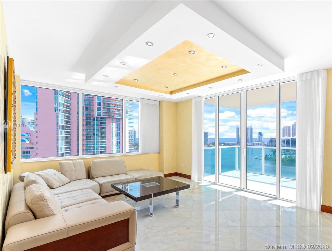 PRIVATE ELEVATOR BRINGS YOU DIRECT TO YOUR PANORAMIC ENDLESS OCEAN, BAY AND CITY VIEW LUXURY RESIDENCE. THIS 3/2/1 UNIT IS PROFESSIONALLY (REMODELED) DESIGNED WITH STATE OF THE ART GOURMET ITALIAN KITCHEN GRANITE COUNTERTOPS, TOP OF THE LINE STAINLESS STEEL APPLIANCES. WHITE ITALIAN MARBLE THROUGHOUT, BUILT IN CLOSETS . MASTER SUITE HAS PRIVATE BALCONY! REALLY STUNNING BRIGHT AND SPACIOUS. BUILDING FEATURES A 2 STORY RESORT STYLE WATERFRONT CLUBHOUSE & SPA, 2 POOLS, TENNIS COURTS, VALET AND MARINA OF 65 SLIPS. WALKING DISTANCE TO FOUNDERS PARK AND MALL!