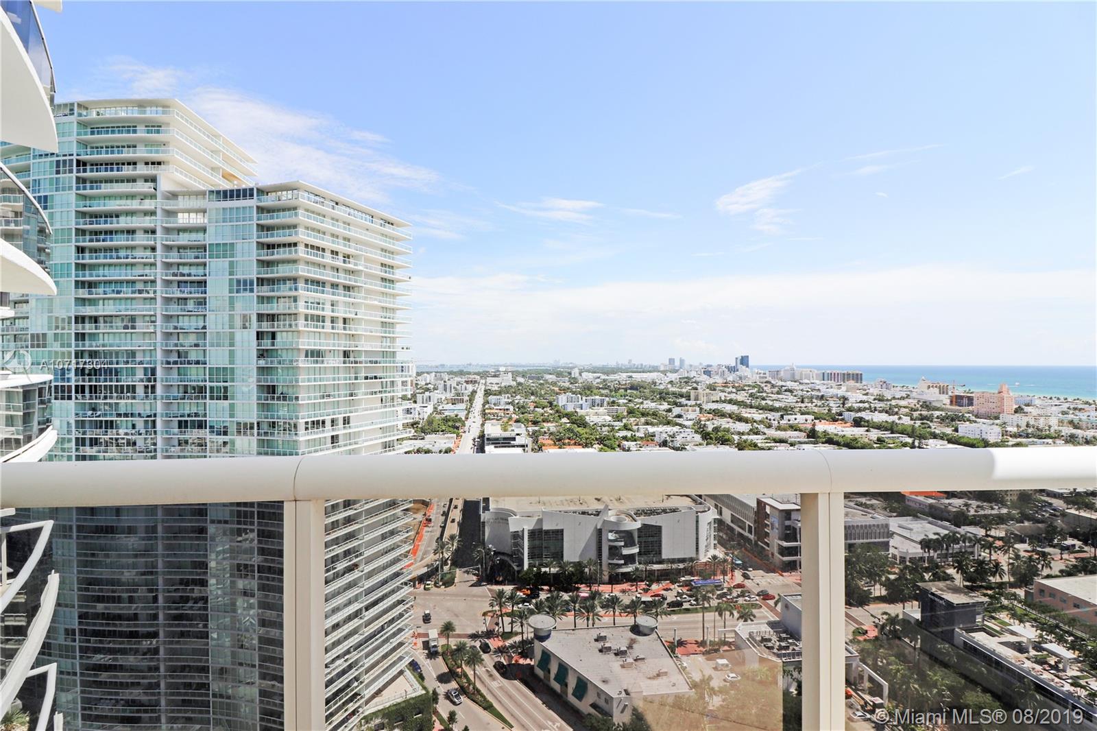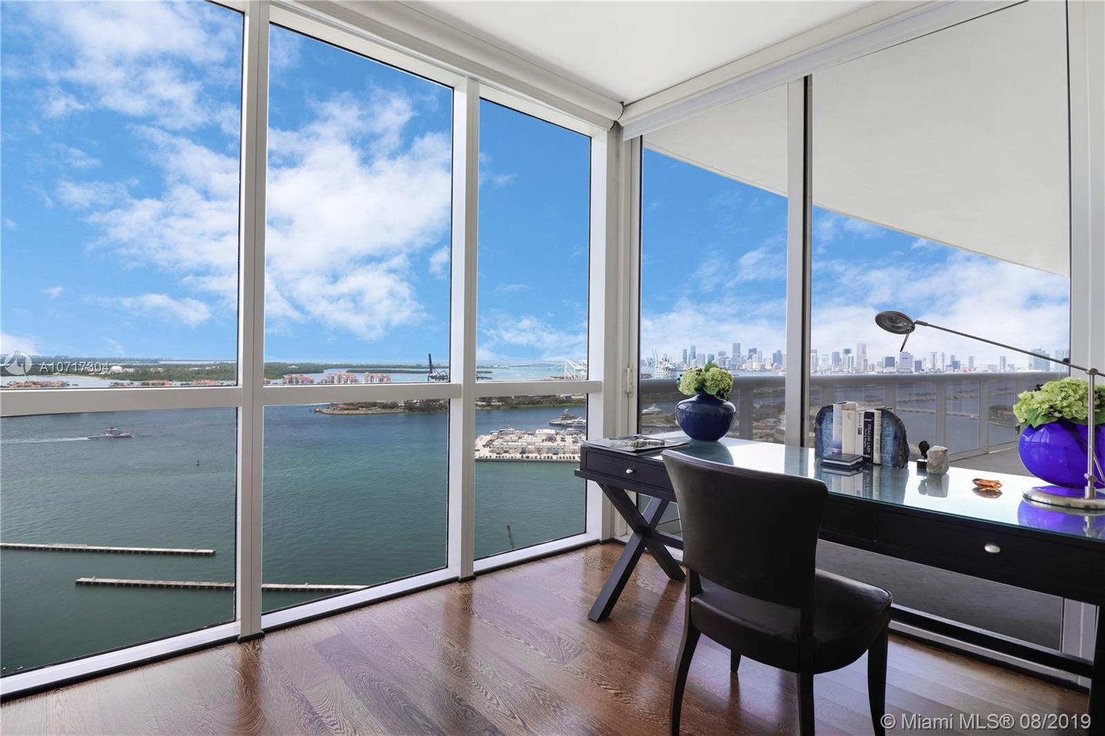 Spectacular flow-through unit at the ultra-chic Murano Grande with breathtaking, unobstructed views of Miami Beach, Fisher Island and the Miami skyline. Residence 2904 consist of 3 BED/3.5 BATHS and offers floor to ceiling windows, 2 large terraces (sunrise/sunset) gorgeous custom finishes including LED lighting system and electronic window treatments, marble and wood flooring, state-of-the-art-kitchen with Miele/Subzero appliances and a private elevator vestibule. Murano Grande is one of SOFI’s most exclusive full-service waterfront buildings directly on Biscayne Bay with Five Star resort-like amenities such as a bayside pool, onsite restaurant, gym, spa and tennis court. Adjacent to the Miami Beach Marina, dock your boat and a day at sea is just minutes away.