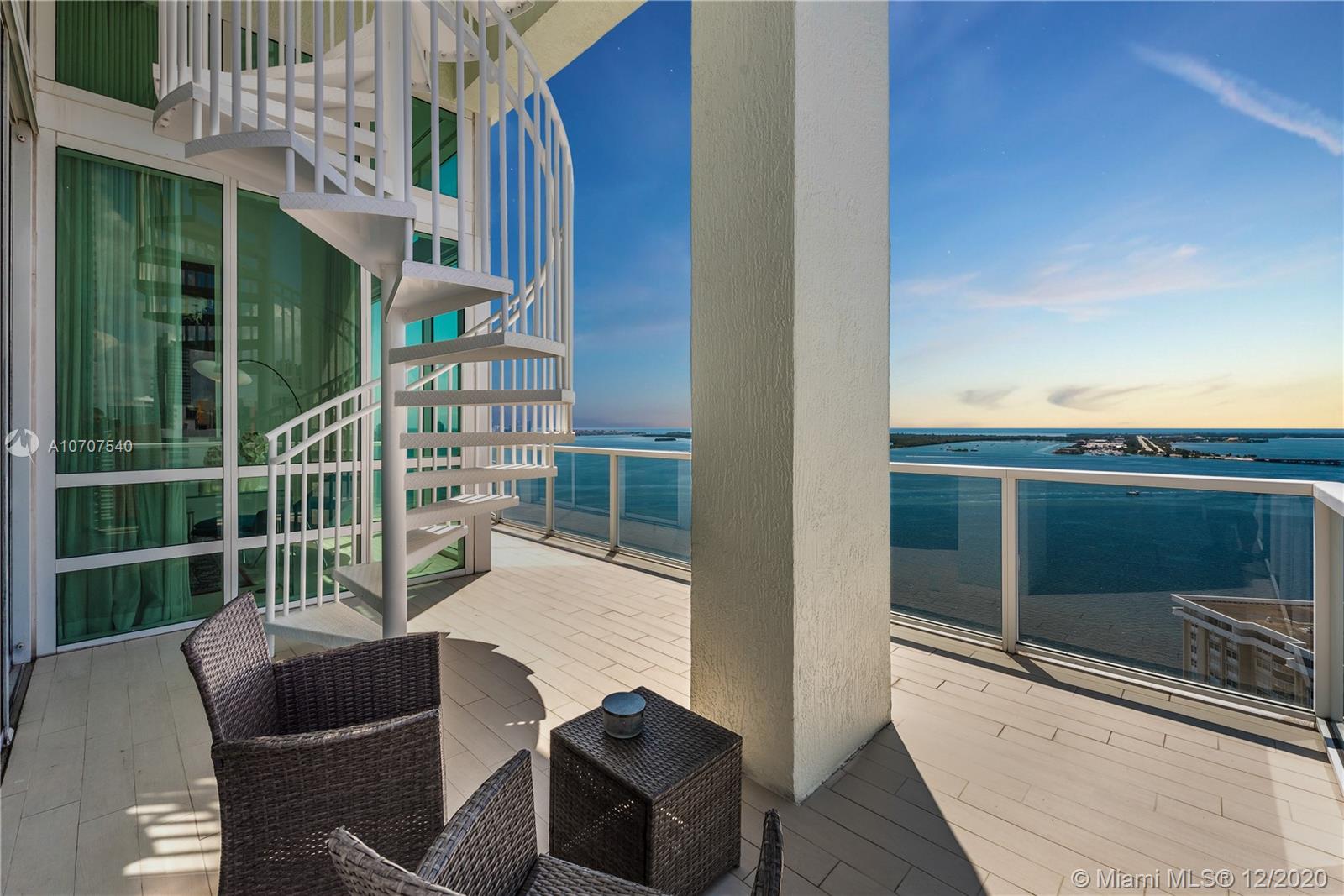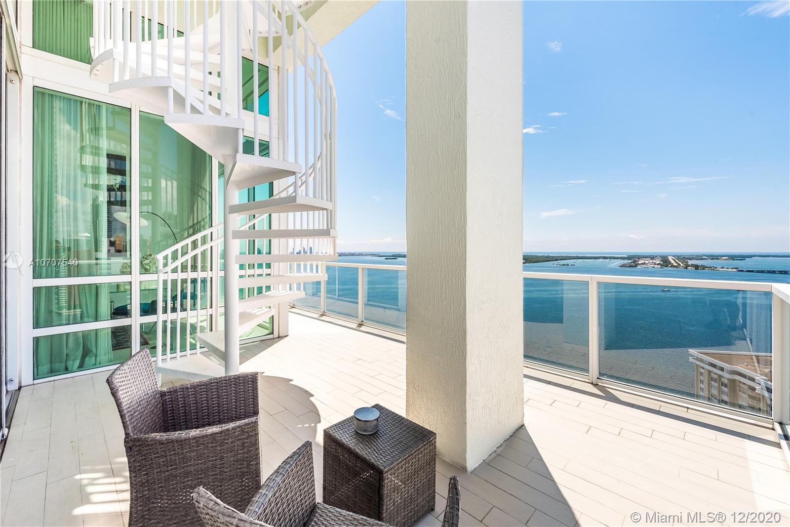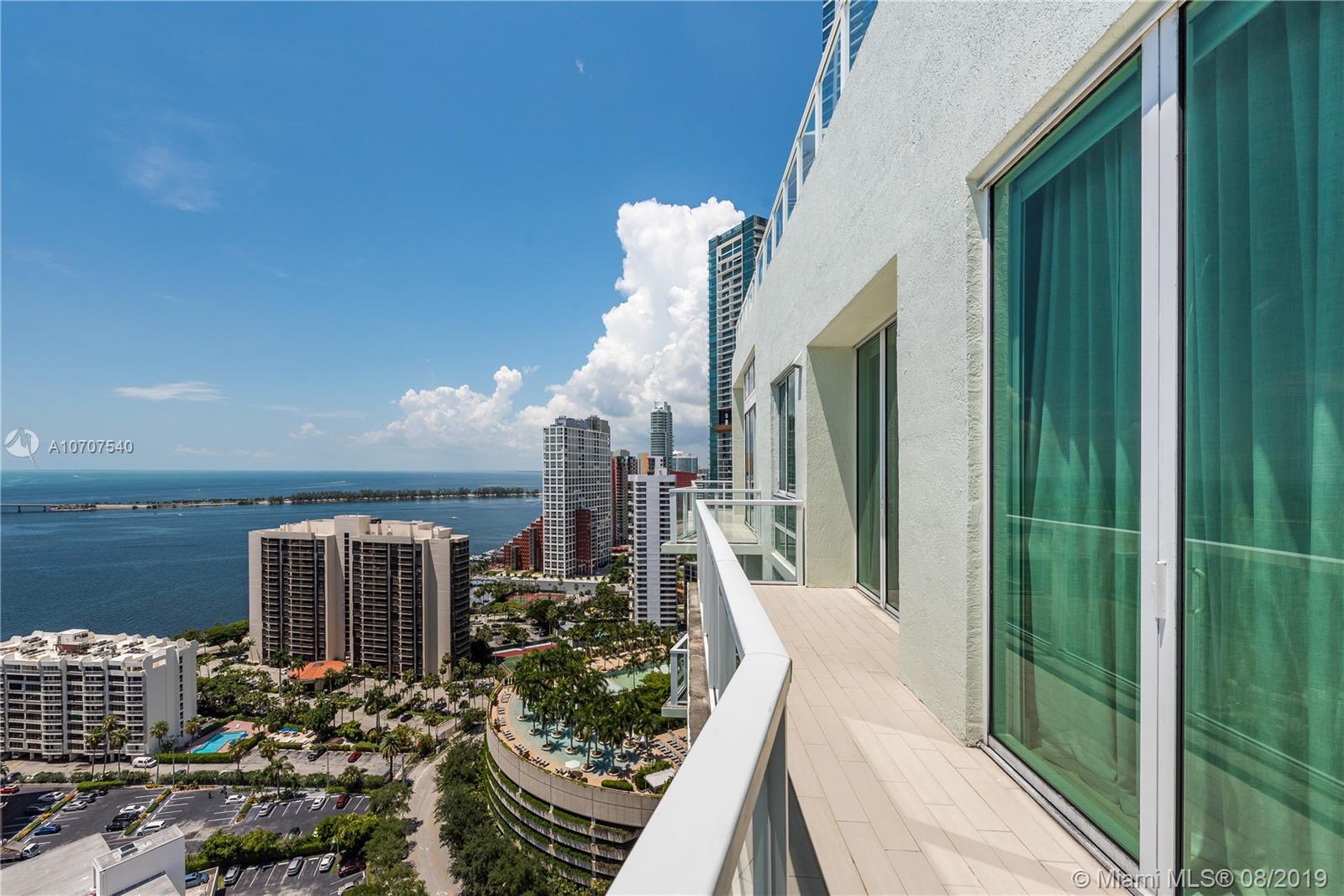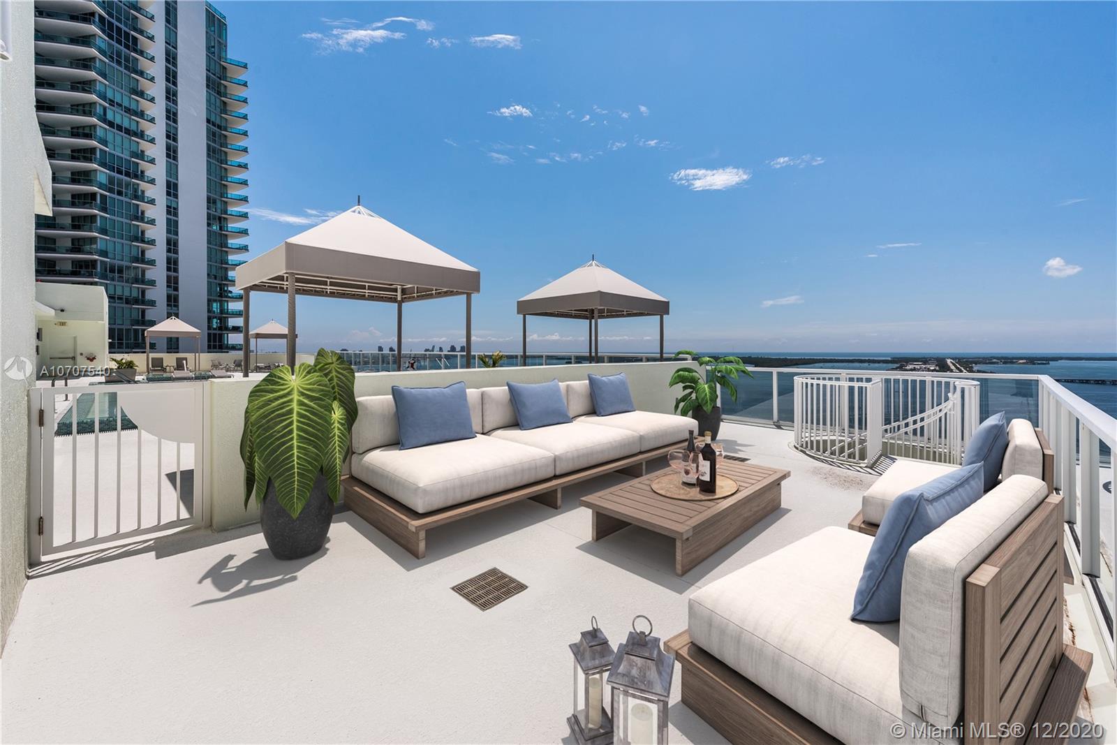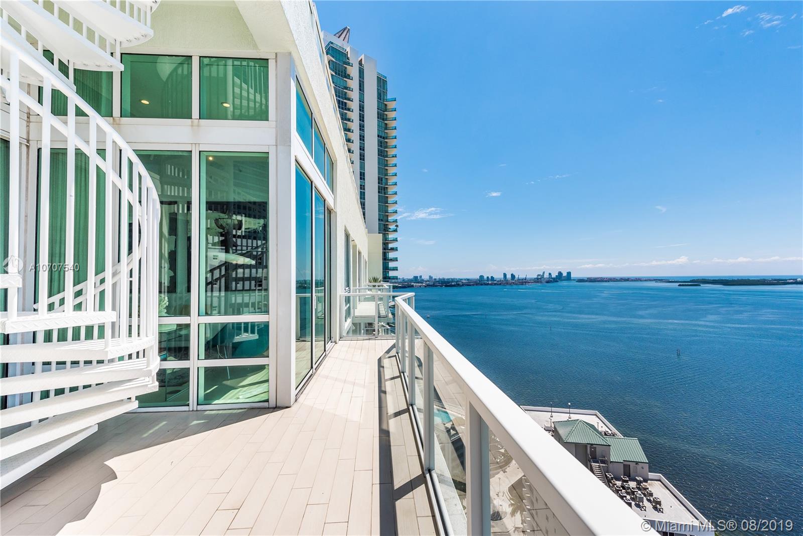 Stunning unobstructed views of Biscayne Bay and Key Biscayne from this custom 3 Bed/3.5 bath penthouse with a private roof top terrace. This property features high ceilings, floor to ceiling sliding glass doors, marble floors throughout, upgraded European kitchen with cooking island and subzero refrigerator, spacious master suite, and walk-in closets. The building offers 24-hour concierge/security service, a rooftop infinity pool, gym and spa with awe-inspiring views of the ocean.