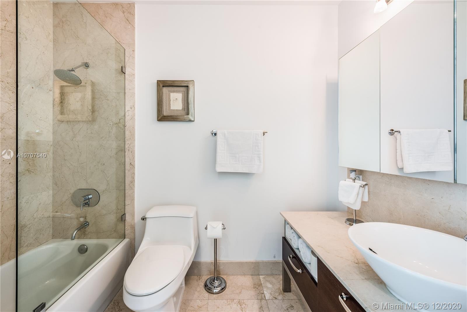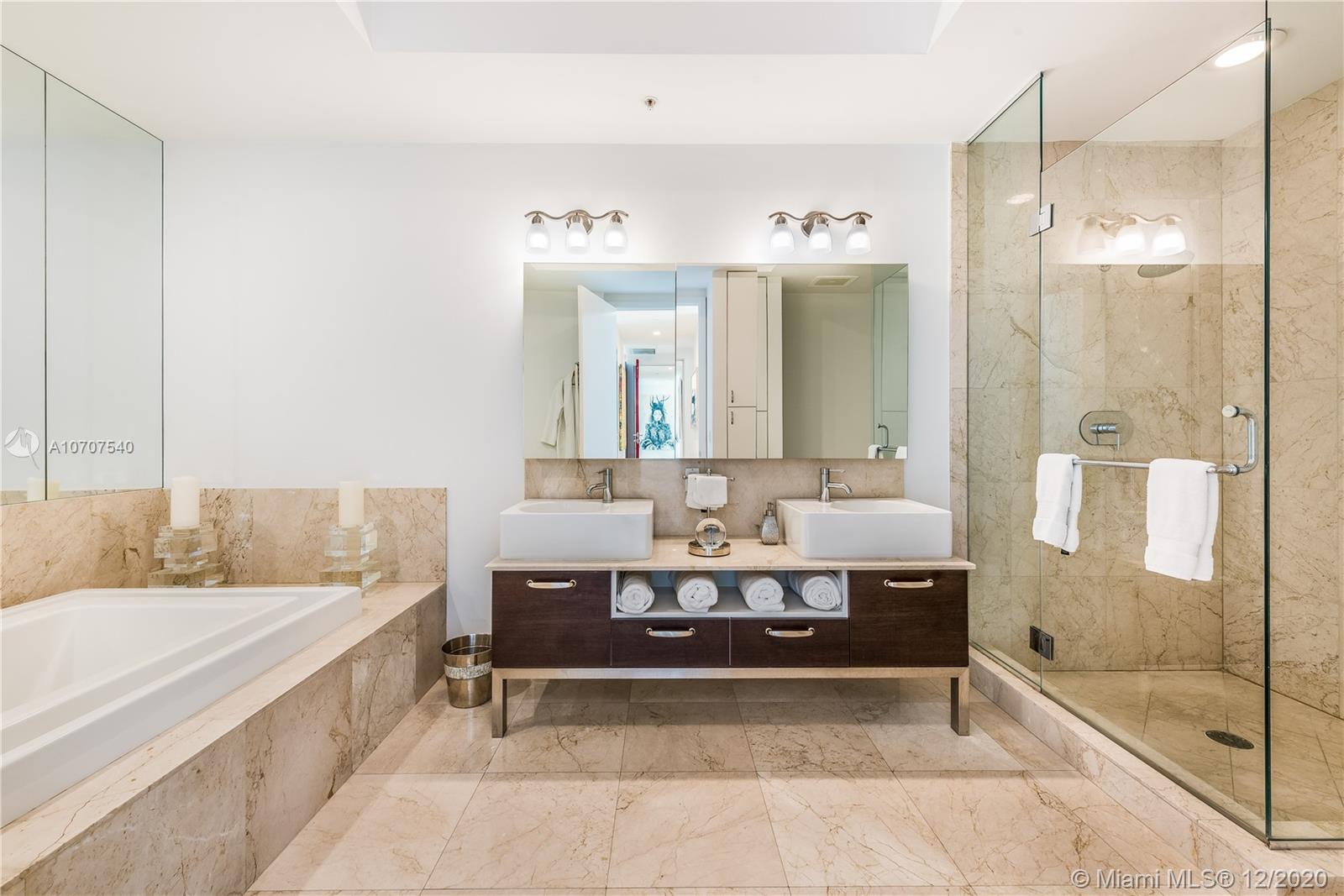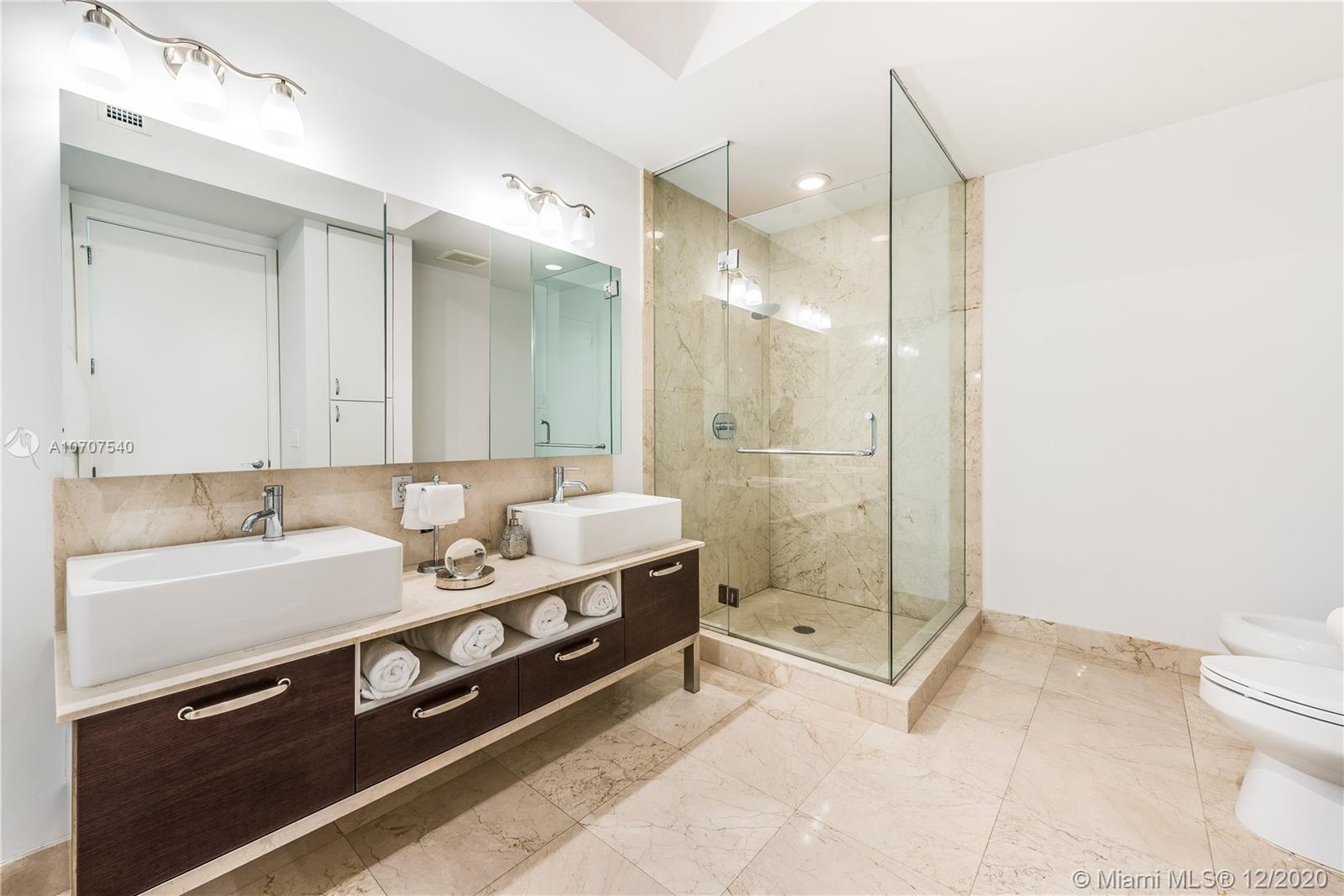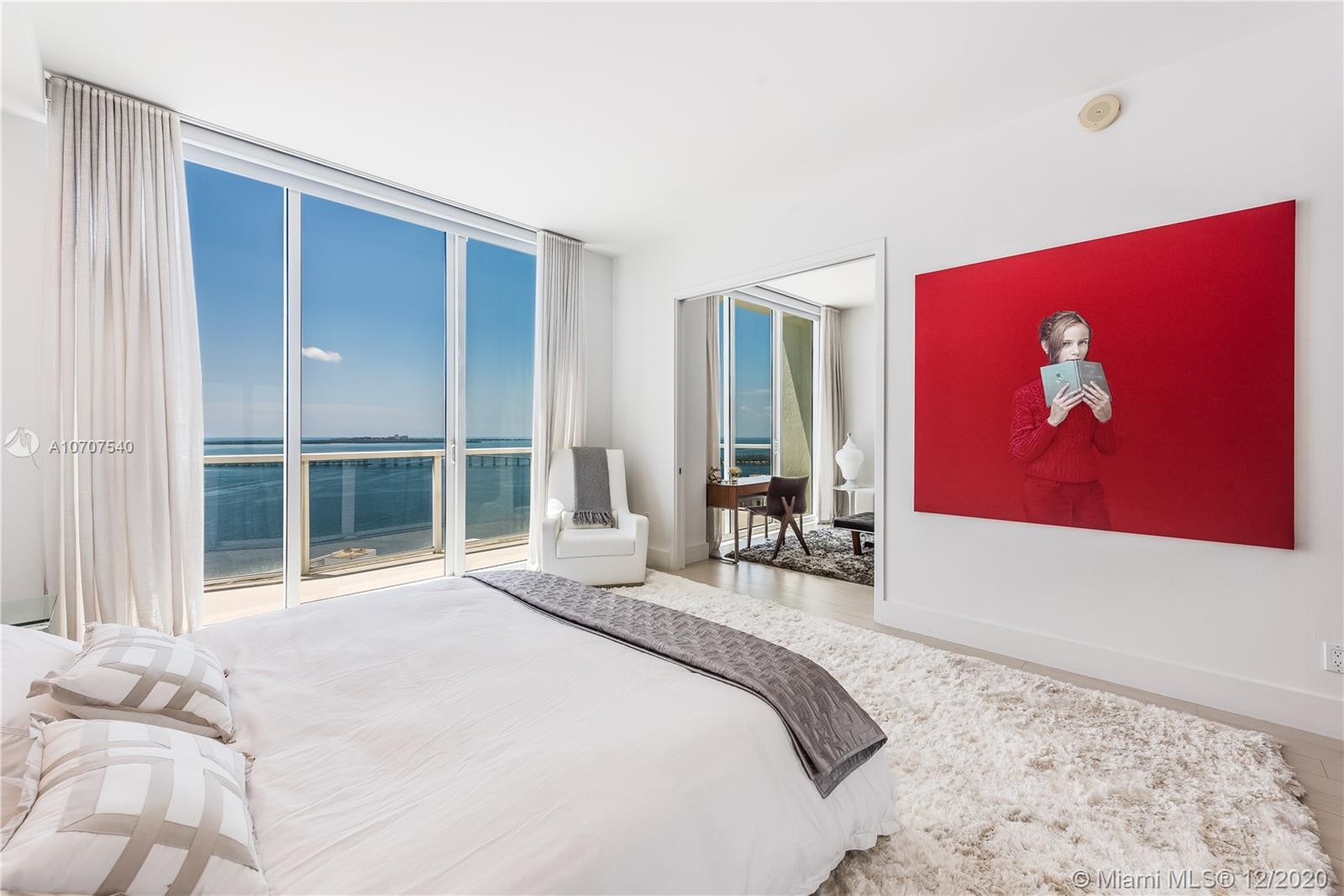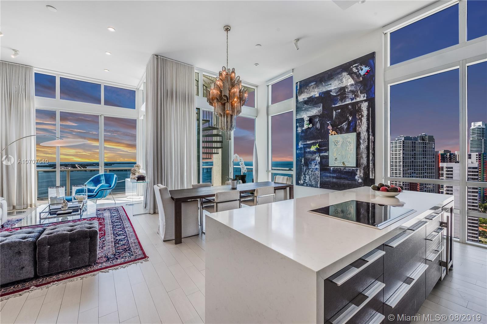 Stunning unobstructed views of Biscayne Bay and Key Biscayne from this custom 3 Bed/3.5 bath penthouse with a private roof top terrace. This property features high ceilings, floor to ceiling sliding glass doors, marble floors throughout, upgraded European kitchen with cooking island and subzero refrigerator, spacious master suite, and walk-in closets. The building offers 24-hour concierge/security service, a rooftop infinity pool, gym and spa with awe-inspiring views of the ocean.