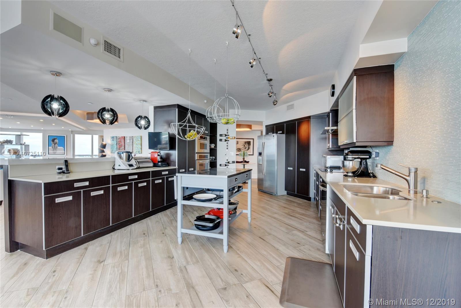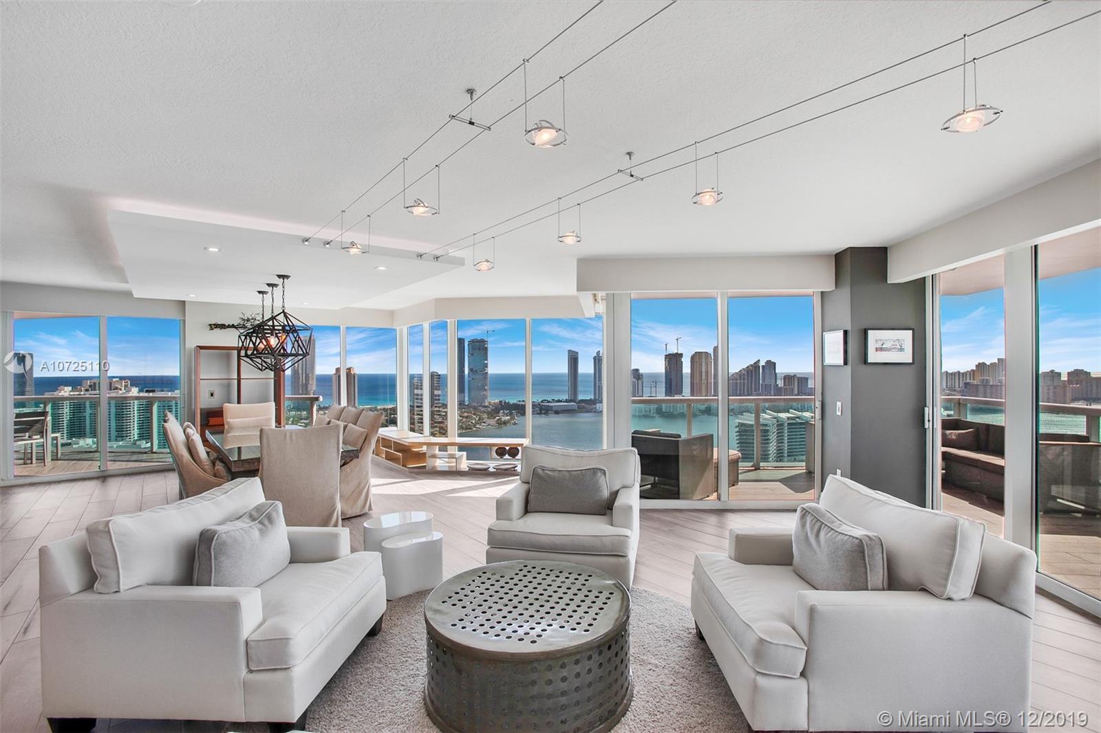 Enter through private elevator foyer to this Breathtaking Palace in the sky spanning the entire 38th floor w/ 4,000SF of living space & an excess of 1,500SF of balcony space. This residence has panoramic views from every room & features Ocean, Beach, Intracoastal waterway and city views as far as you can see. This spectacular newly renovated contemporary interior was designed by StevenG w/ no expense spared it features high end finishes thru-out. You will also find an incredible OPEN new gourmet chef’s kitchen w/ Italian influences & 4 suites w/ all new st of the art baths. 5* amenities include: 2 story spa, pools, tennis courts, gym, private 65' marina, private park, valet-security, 3 covered parking spaces, & much more. This home really is one of a kind & priced to sell.