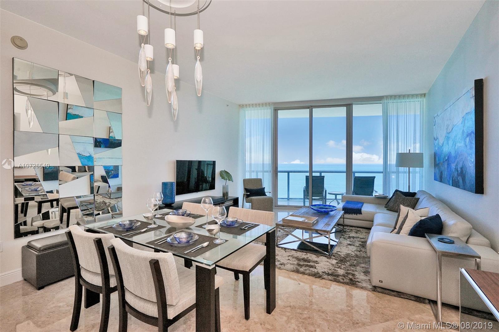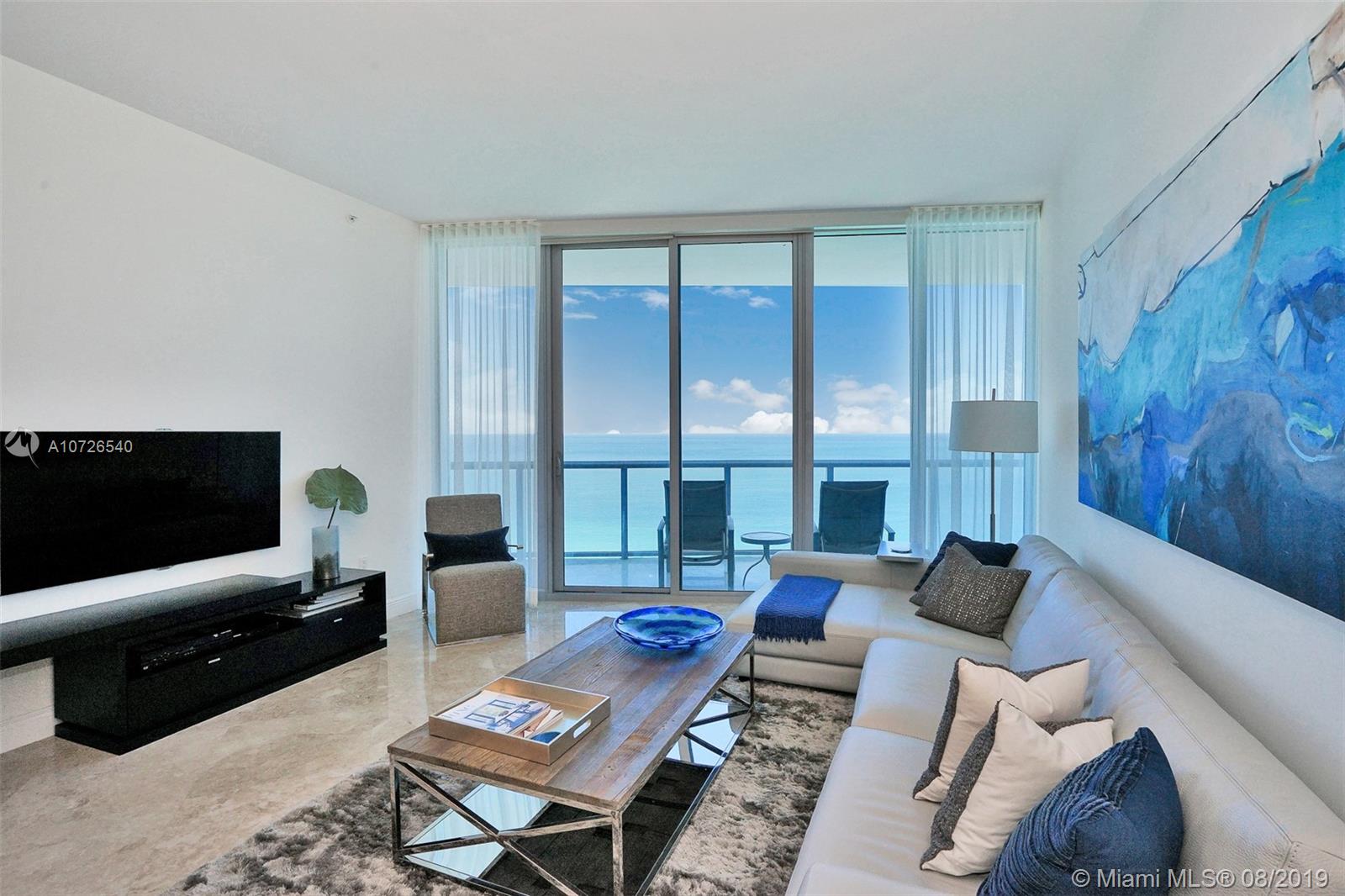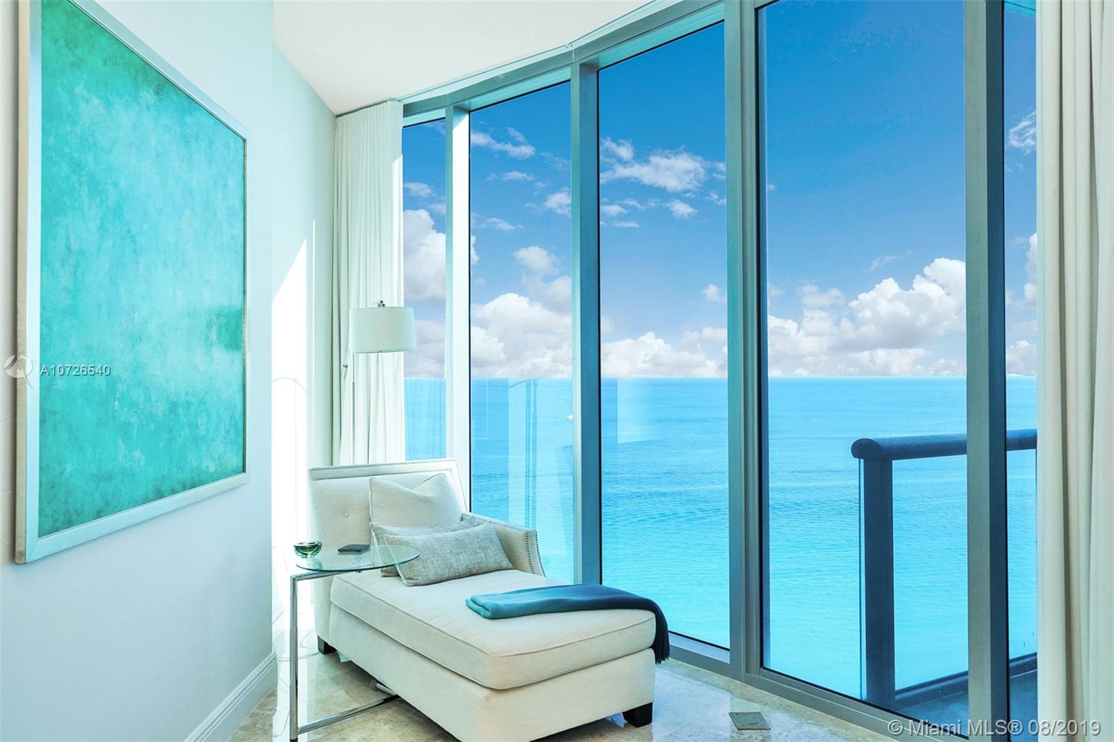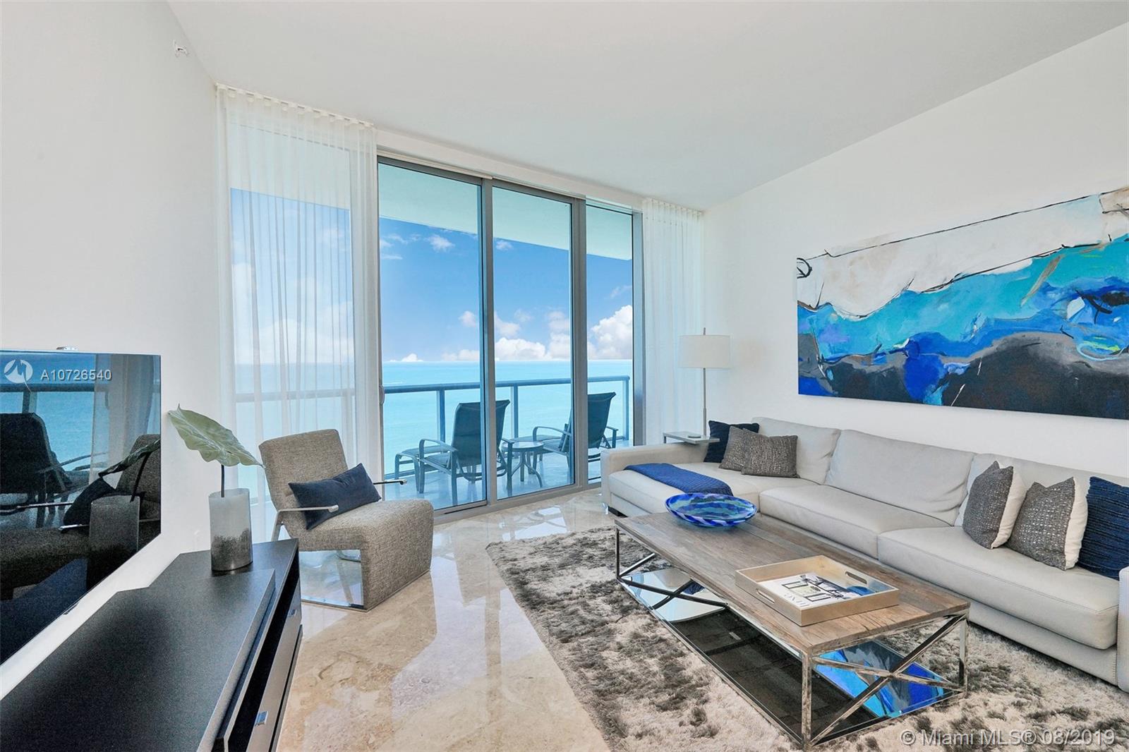 A rare gem in the heart of Sunny Isles Beach, this oceanfront retreat is designer decorated and upgraded to perfection. This flow-thru home offers direct ocean views from your private balcony facing east, and a sunset and city view to the west. From the private elevator entry to the luxurious master bath, you will fall in love with this elegant 3 bedroom, 3.5 bath home with $200,000 in upgrades! Make your way to the beautiful pool deck with a snack bar offering snacks and meals that can be delivered to your door, pool or beach. A fully-equipped fitness center offering scheduled classes and Peleton bikes is just steps away from your door, as well as a full-service spa for relaxation. This property is a Must See!