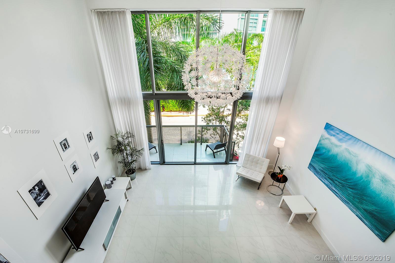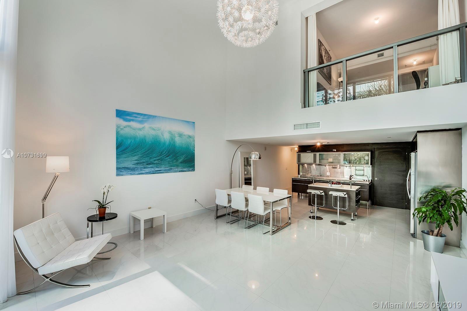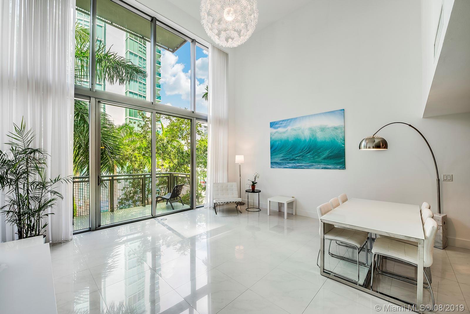 Beautifully designed and flooded with light! This modern and spacious 2-story, 2Bed/2Bath + Den boasts voluminous 18 ft. ceilings, floor to ceiling windows, new blinds, top-of-the-line modern European kitchens w/stainless appliances, and new Miele cooktop. The large master has a spacious walk-in closet and balconies. The master bath has a double shower, double sinks and Phillipe Starck fixtures. Terra Beachside Villas is a wonderful boutique building that sits between the beach and the intracoastal and offers an 80ft.heated swimming pool, fully equipped gym, jacuzzi, residents lounge/billiards room, low monthly fees and on-site management and 24-hr security all nestled in a Zen-inspired atrium.2nd assigned parking spot available for sale. Freshly painted.Can be sold turnkey.Easy to show!